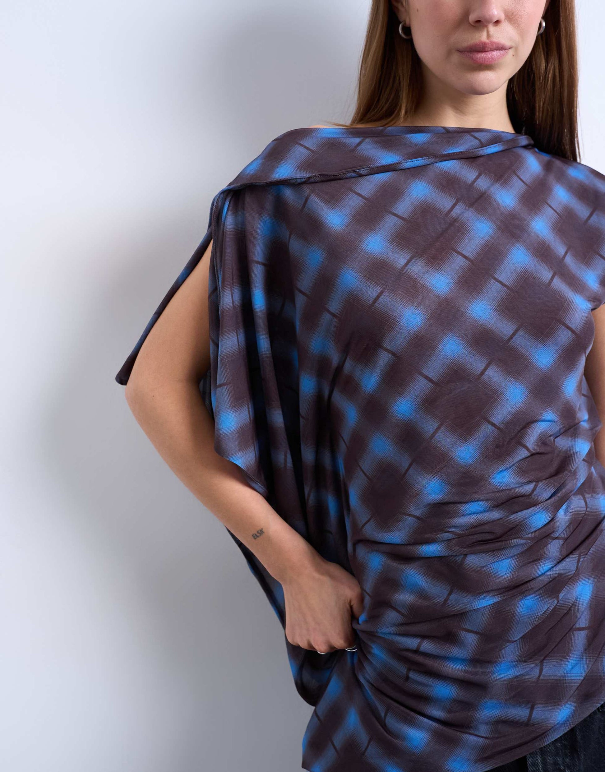 Oberteile von TopshopDieses Top ist aus einem dehnbaren, weichen und transparenten Stoff gefertigt. Das einärmelige Modell besticht durch ein durchgehendes Karomuster, drapierte Details und eine normale Passform.