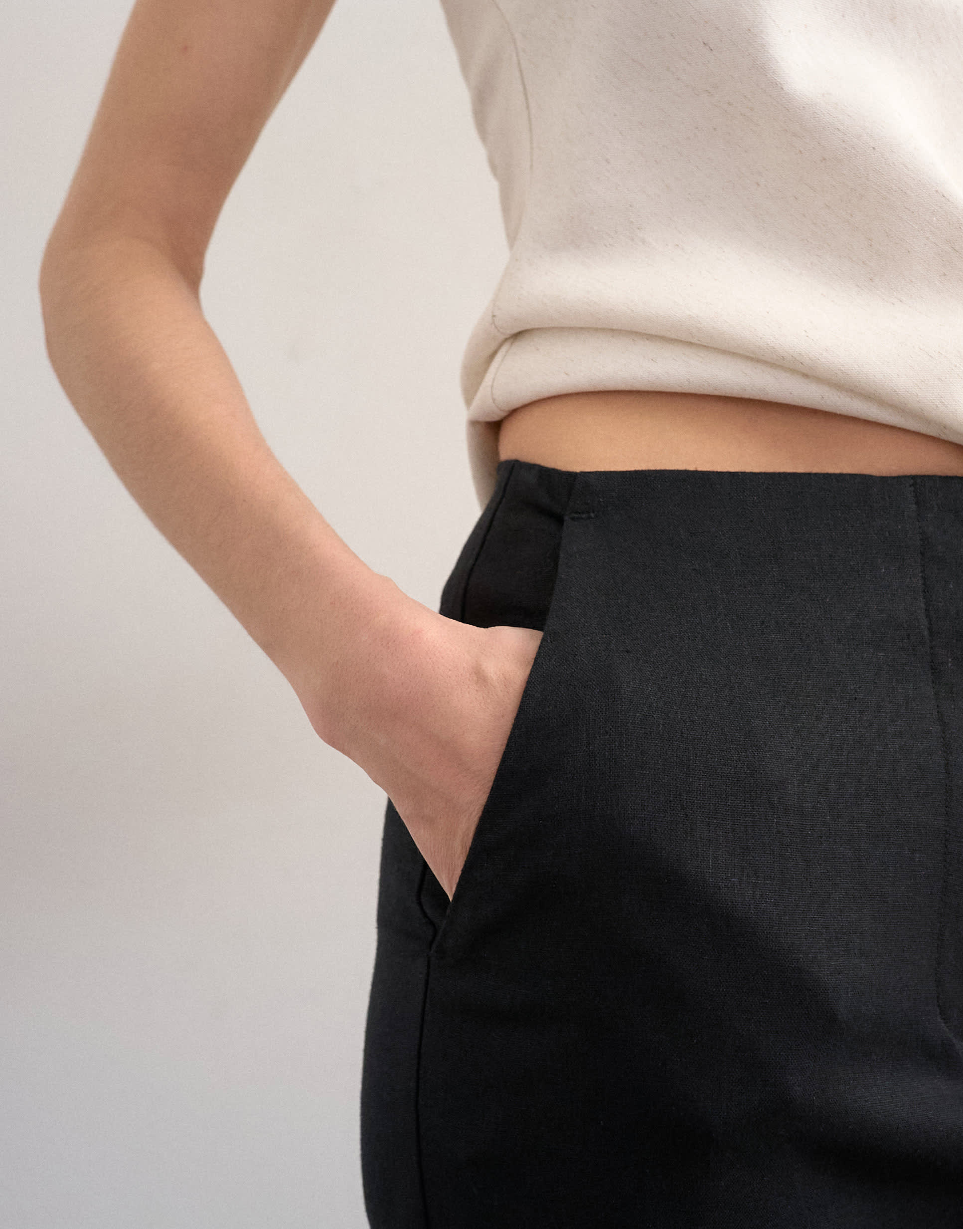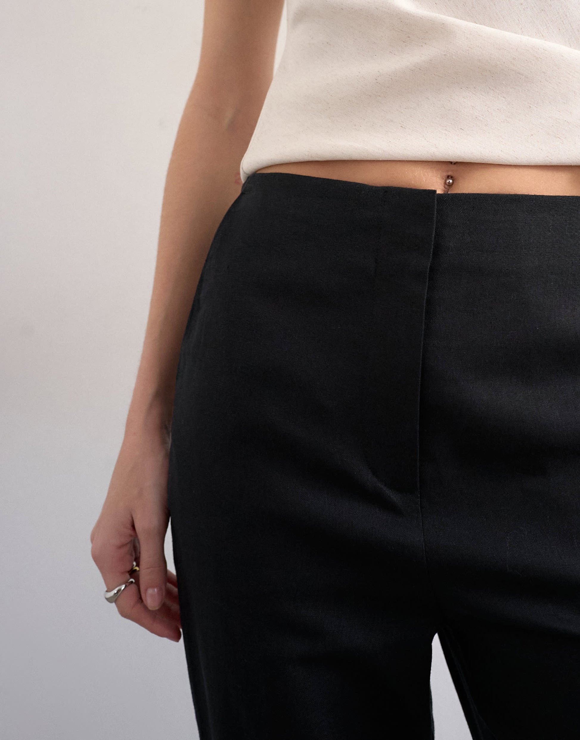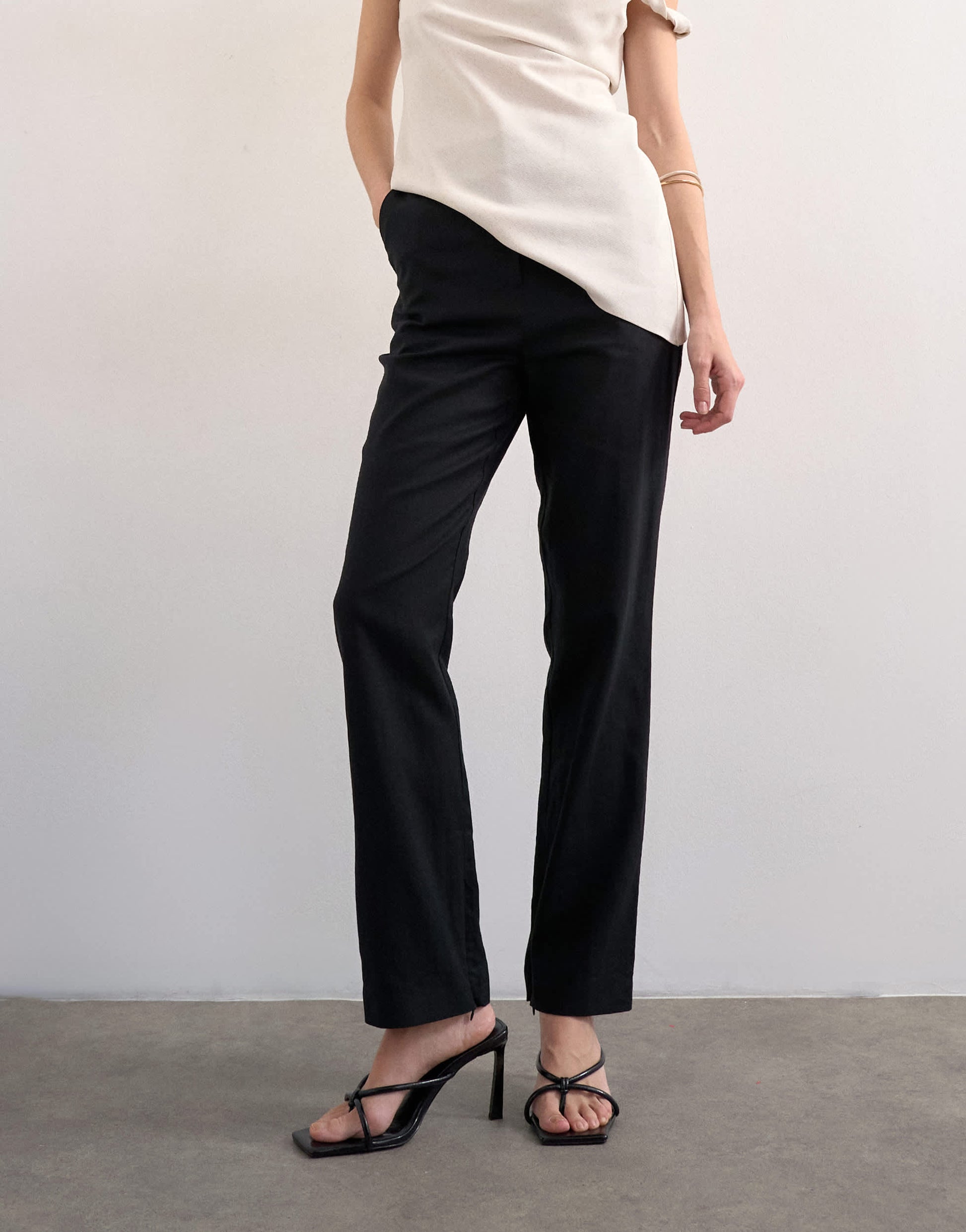 Topshop Leinenhose in schmaler Passform, schwarz