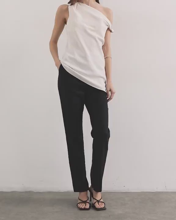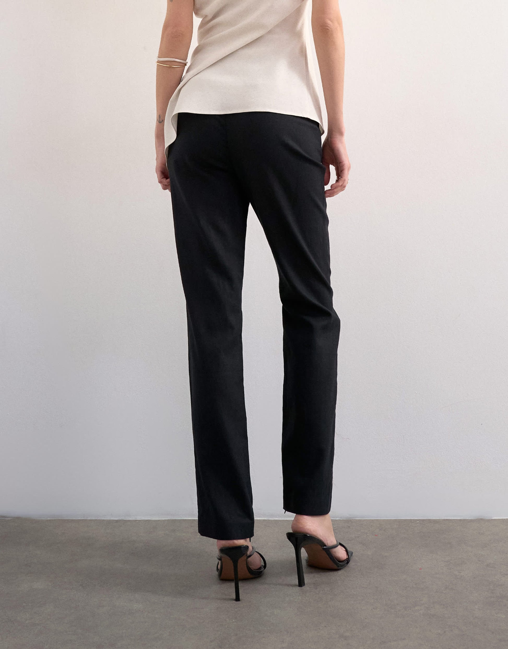 Diese Hose ist aus strukturiertem Webstoff in zeitlosem Schwarz gefertigt. Sie besticht durch einen hohen Bund, einen verdeckten Hosenschlitz und praktische Taschen am schmalen Bein.