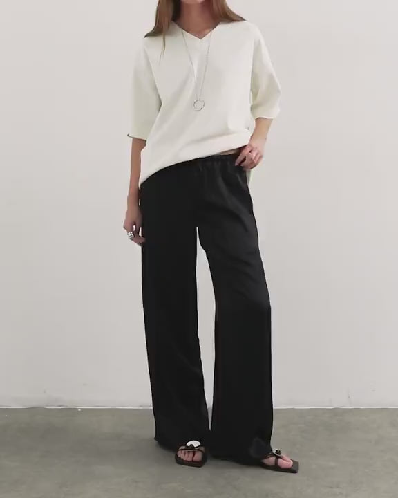 Hosen und Leggings von TopshopDiese Hose ist aus glänzendem, satinartigem Stoff in Schwarz gefertigt. Sie hat einen niedrigen Bund mit Kordelzug und weite Seitentaschen.