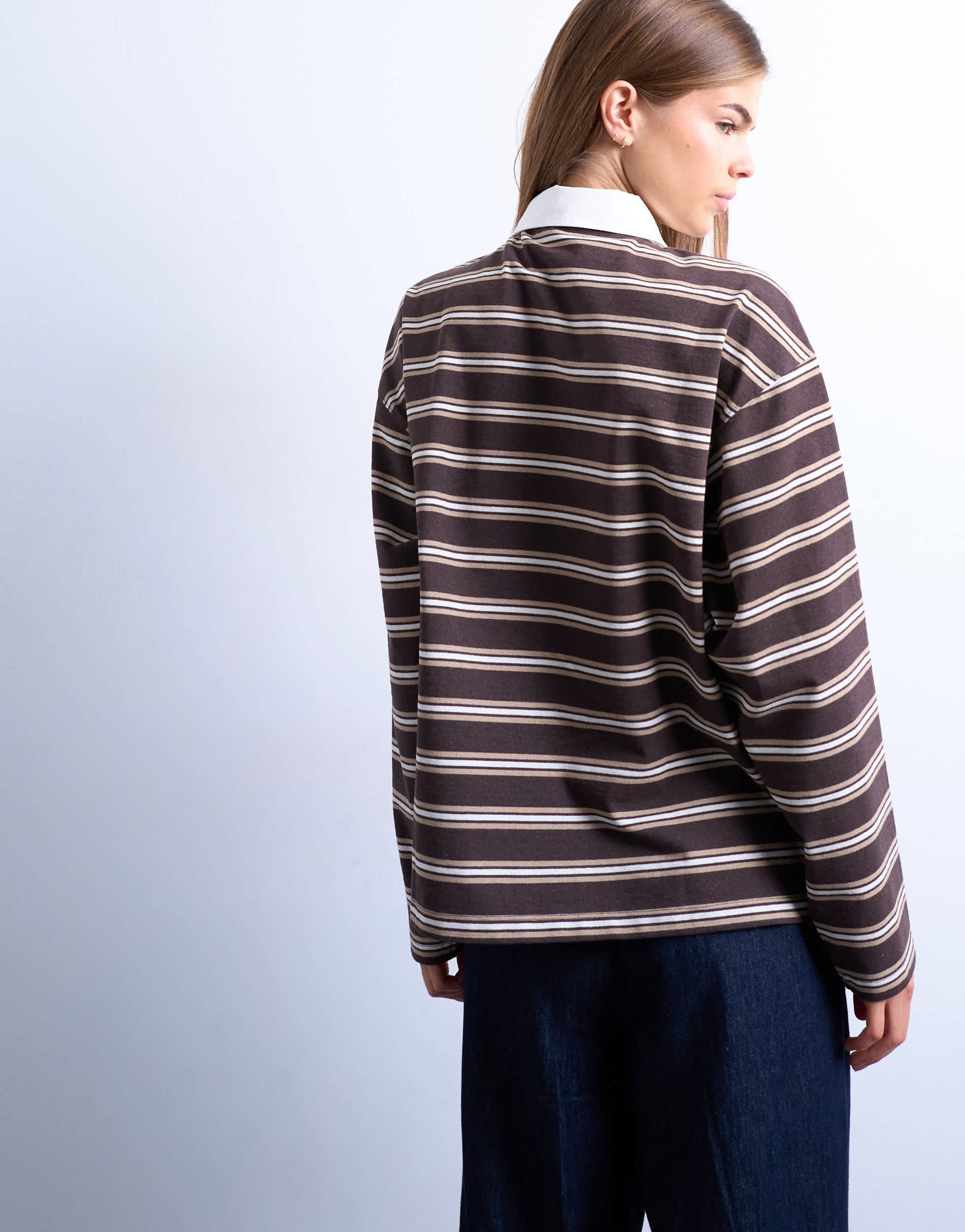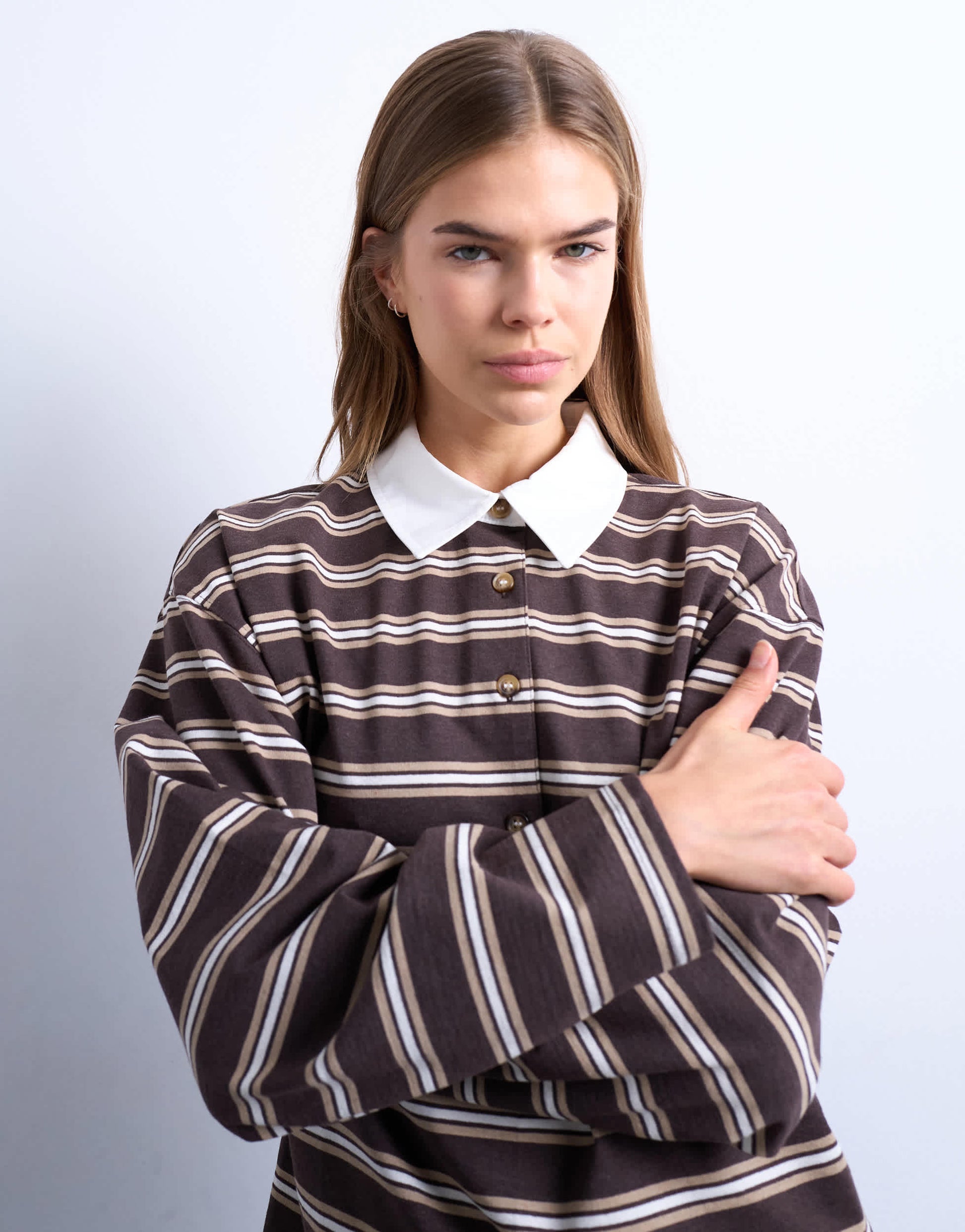 Oberteile von TopshopDieses Oberteil ist aus gestreiftem Jersey-Strick gefertigt. Es hat einen Rugbykragen, eine Knopfleiste, lange Ärmel und eine normale Passform.