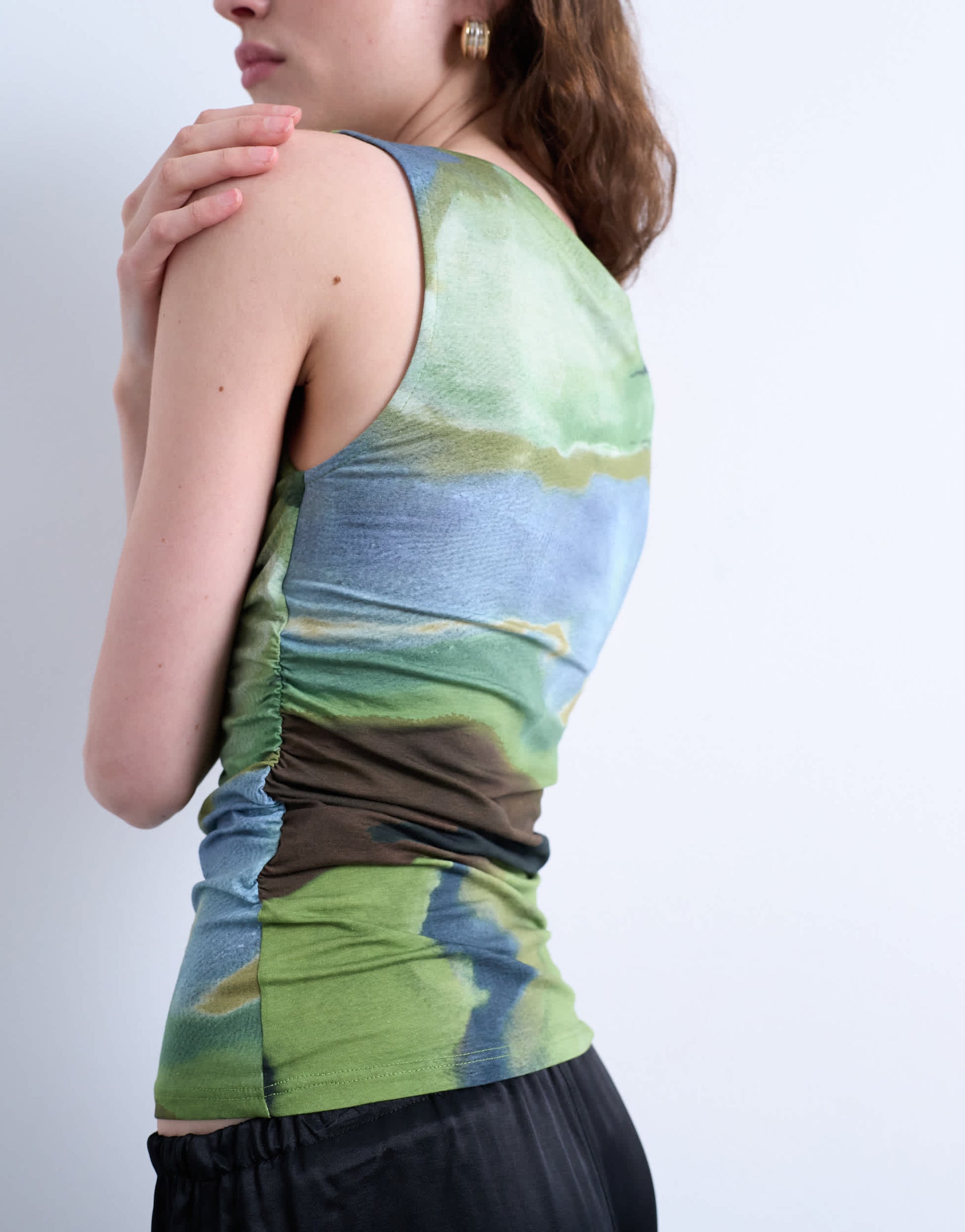 Oberteile von TopshopDieses Top aus weichem, dehnbarem Jersey besticht durch einen abstrakten Print. Das ärmellose Modell hat einen Rundhalsausschnitt, eine Raffung an der Seite und ist figurbetont geschnitten.