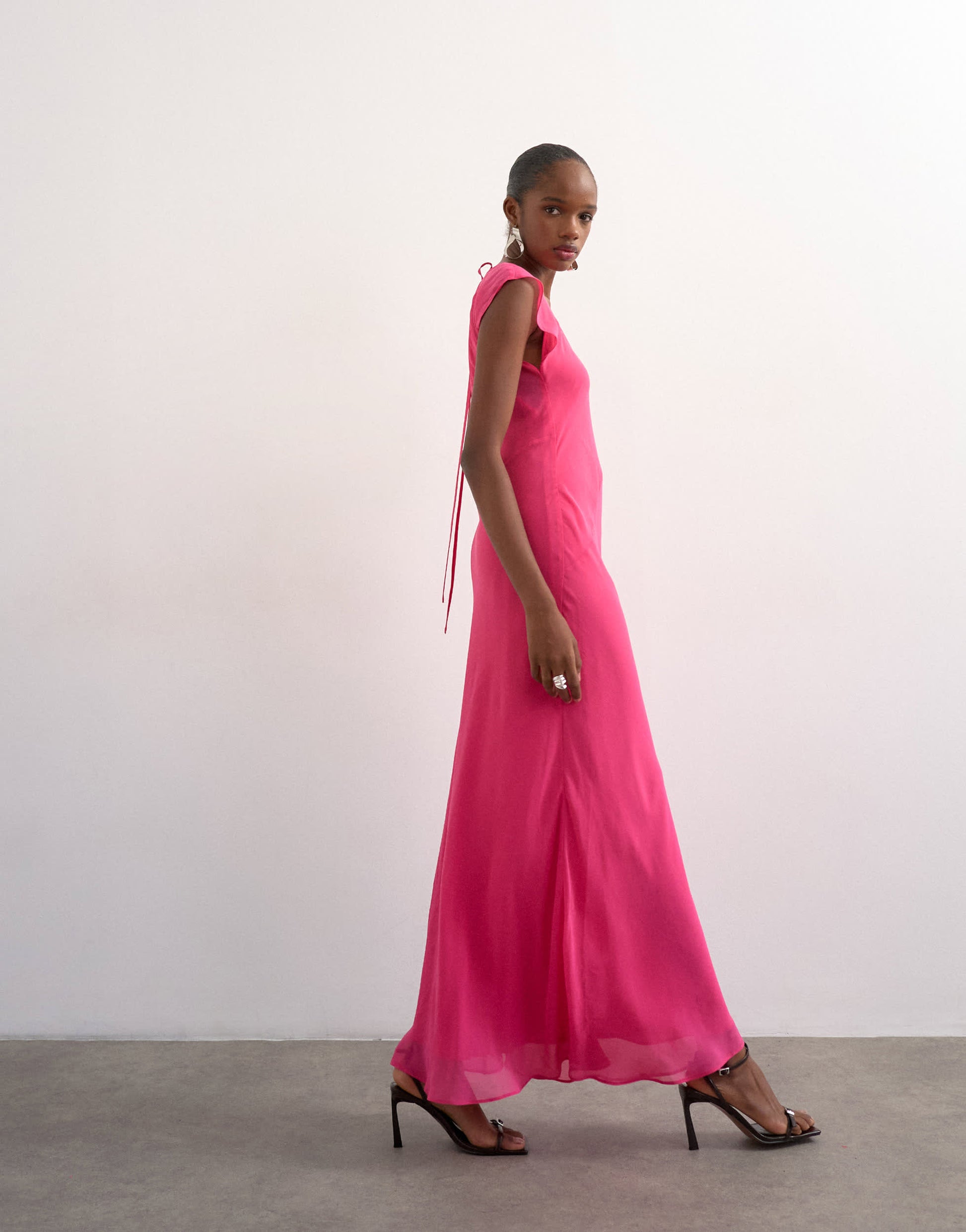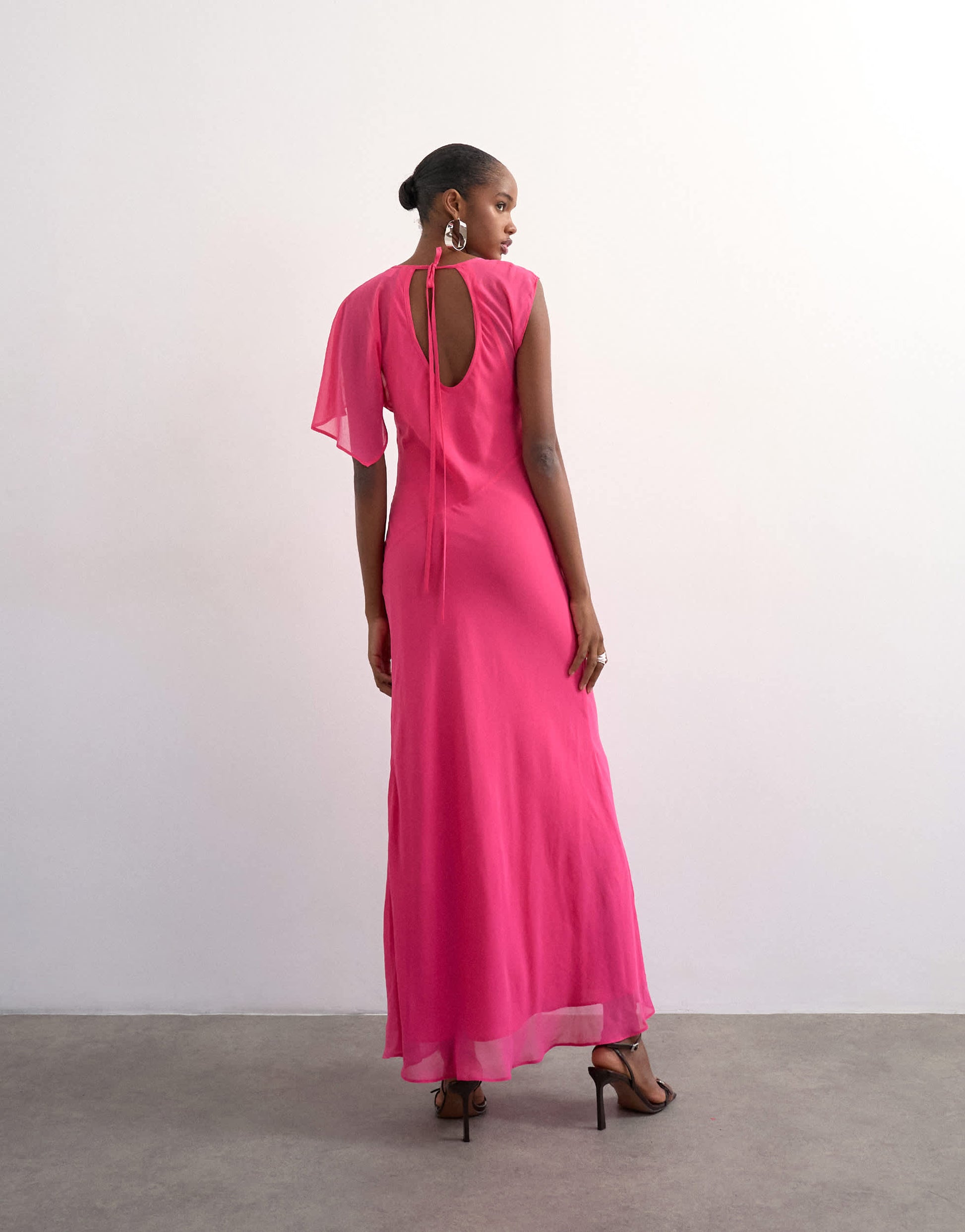 Kleider von TopshopDieses Kleid ist aus einem fließenden, transparenten Stoff gefertigt. Es hat einen Rundhalsausschnitt, flatternde Ärmel, einen Rückenausschnitt und ist normal geschnitten.
