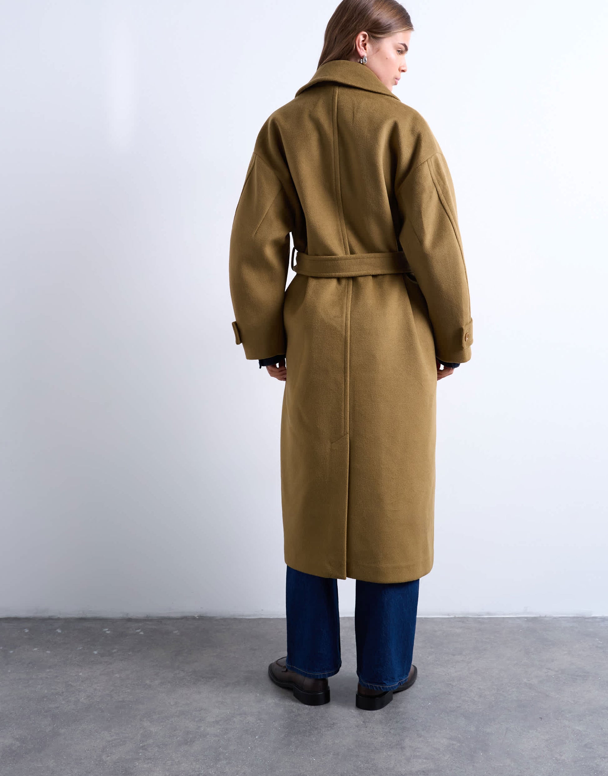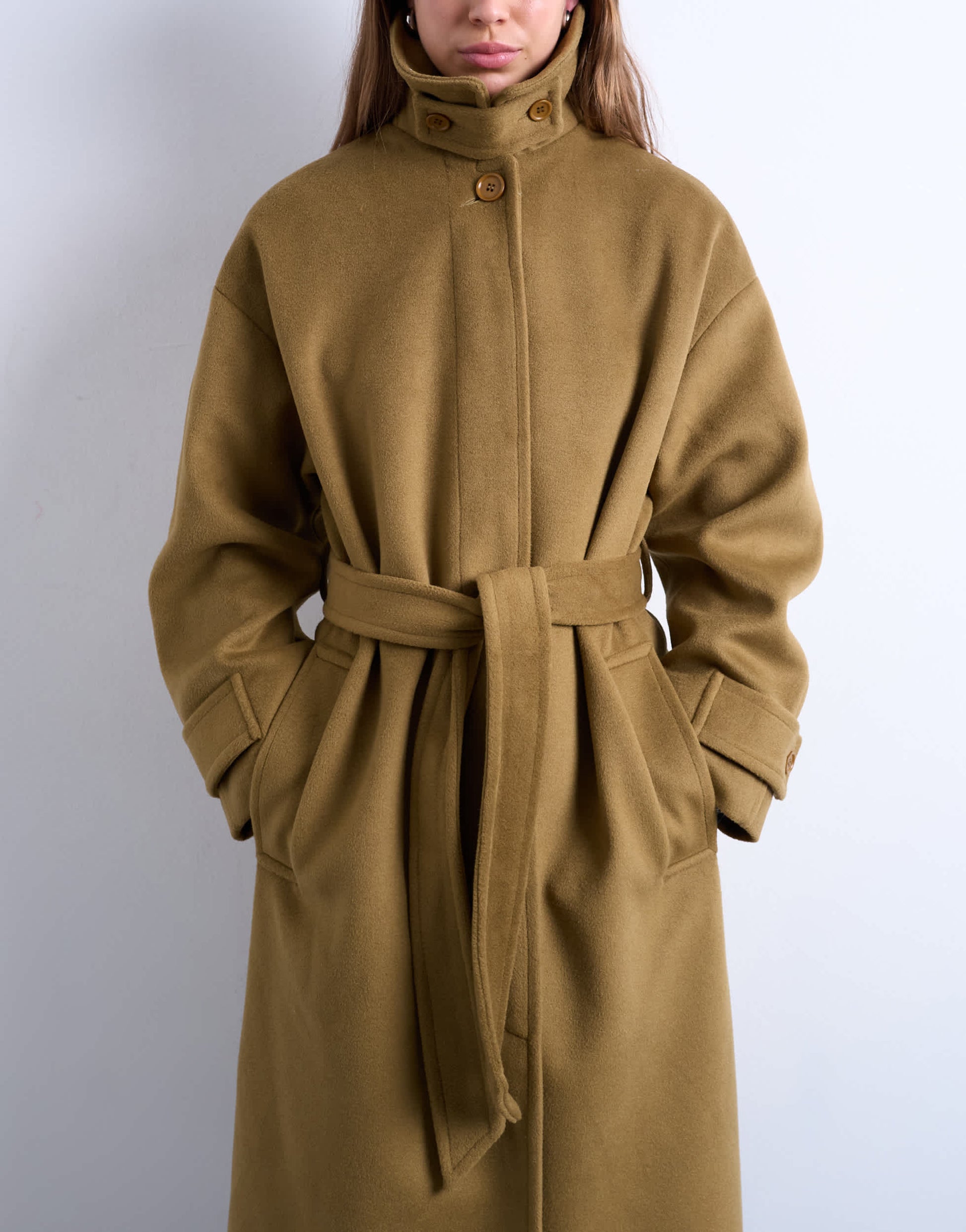 Topshop langer, taillierter, formeller Automantel in Kamel
