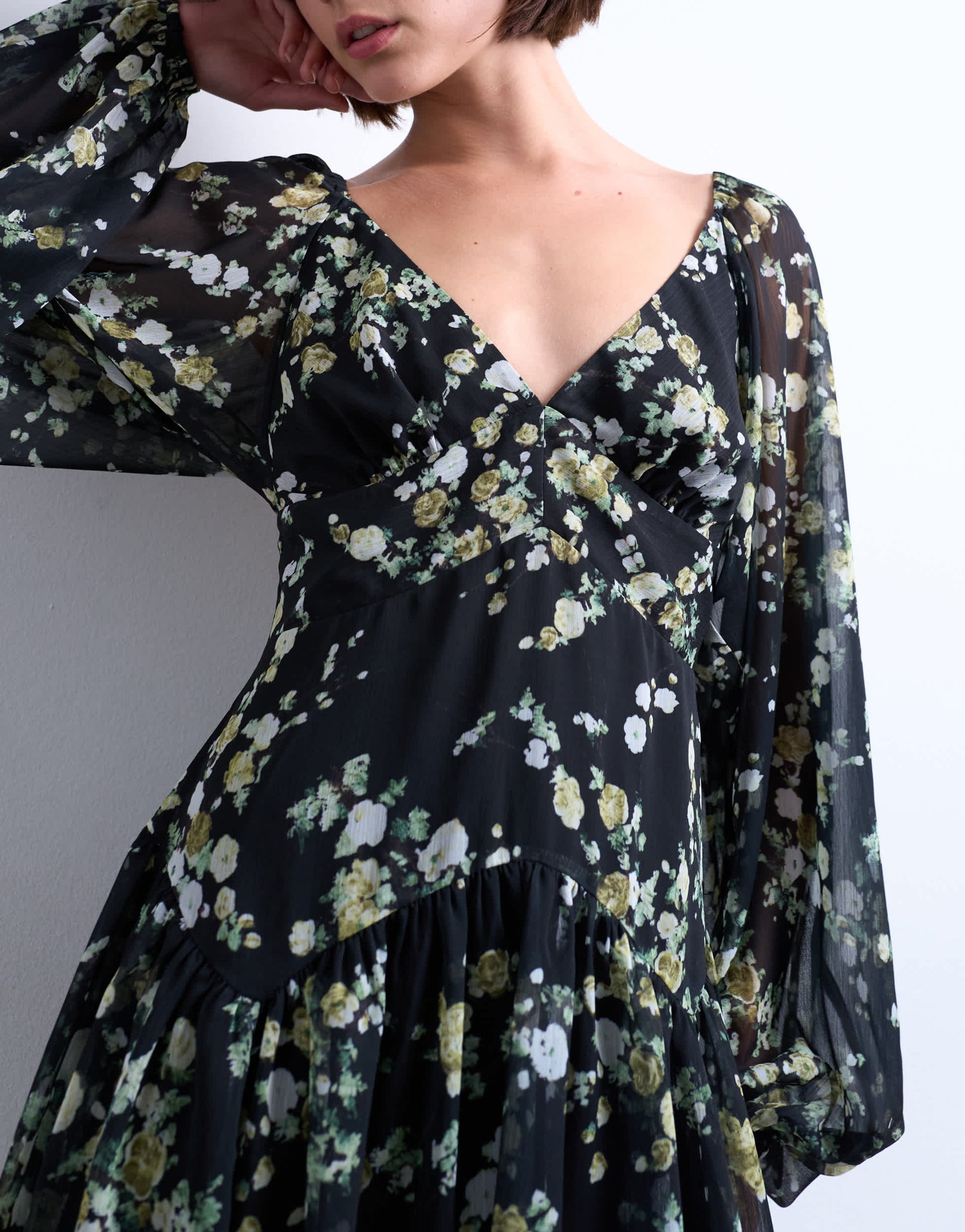 Kleider von TopshopDieses Kleid ist aus einem gewebten Stoff mit schlichtem Muster gefertigt. Es hat einen V-Ausschnitt, Blousonärmel, einen Reißverschluss und ist normal geschnitten.