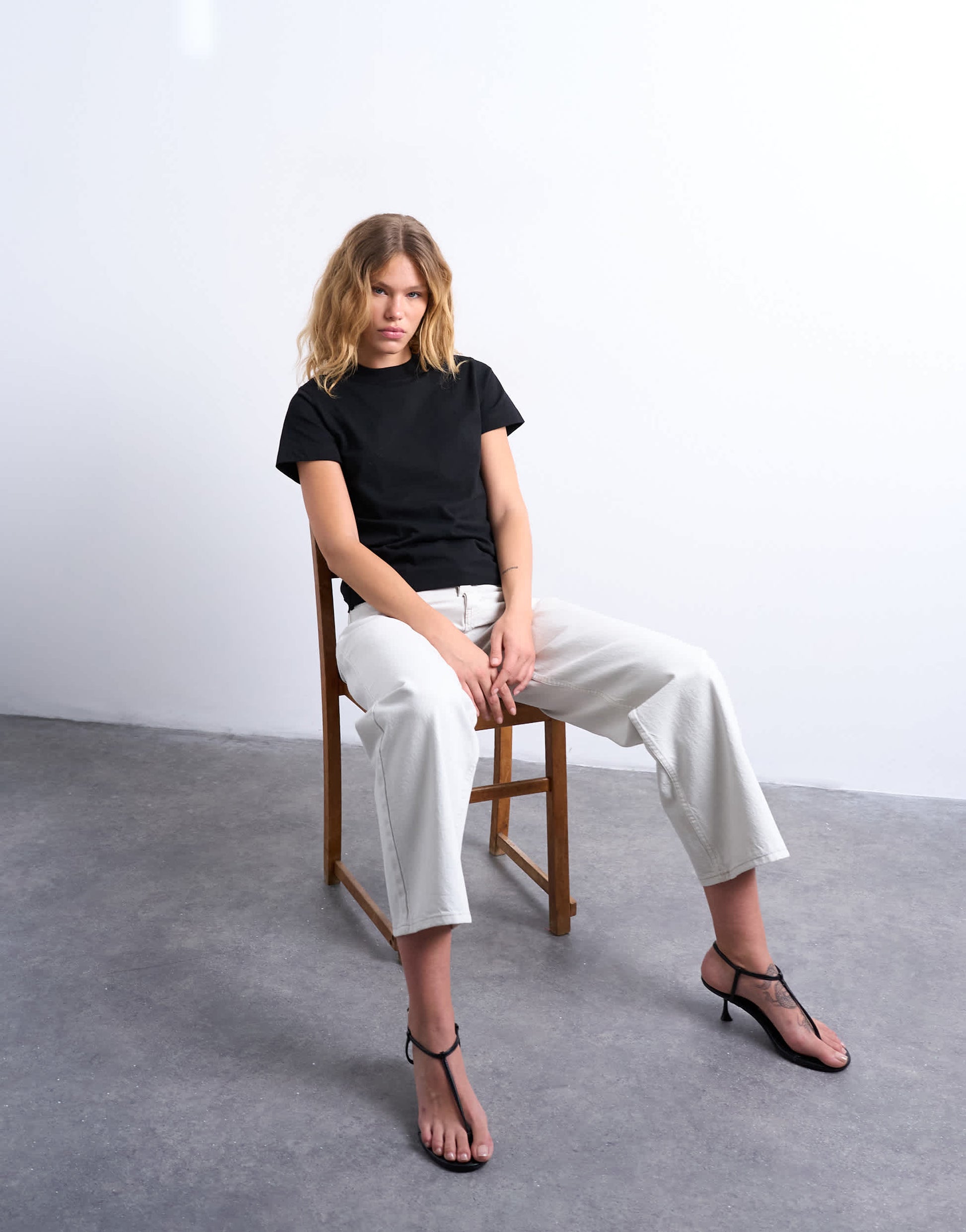 Oberteile von TopshopDieses vielseitige, schlichte T-Shirt ist aus weichem, dehnbarem Jersey gefertigt. Es hat einen Rundhalsausschnitt, kurze Ärmel und einen kastenförmigen Schnitt.