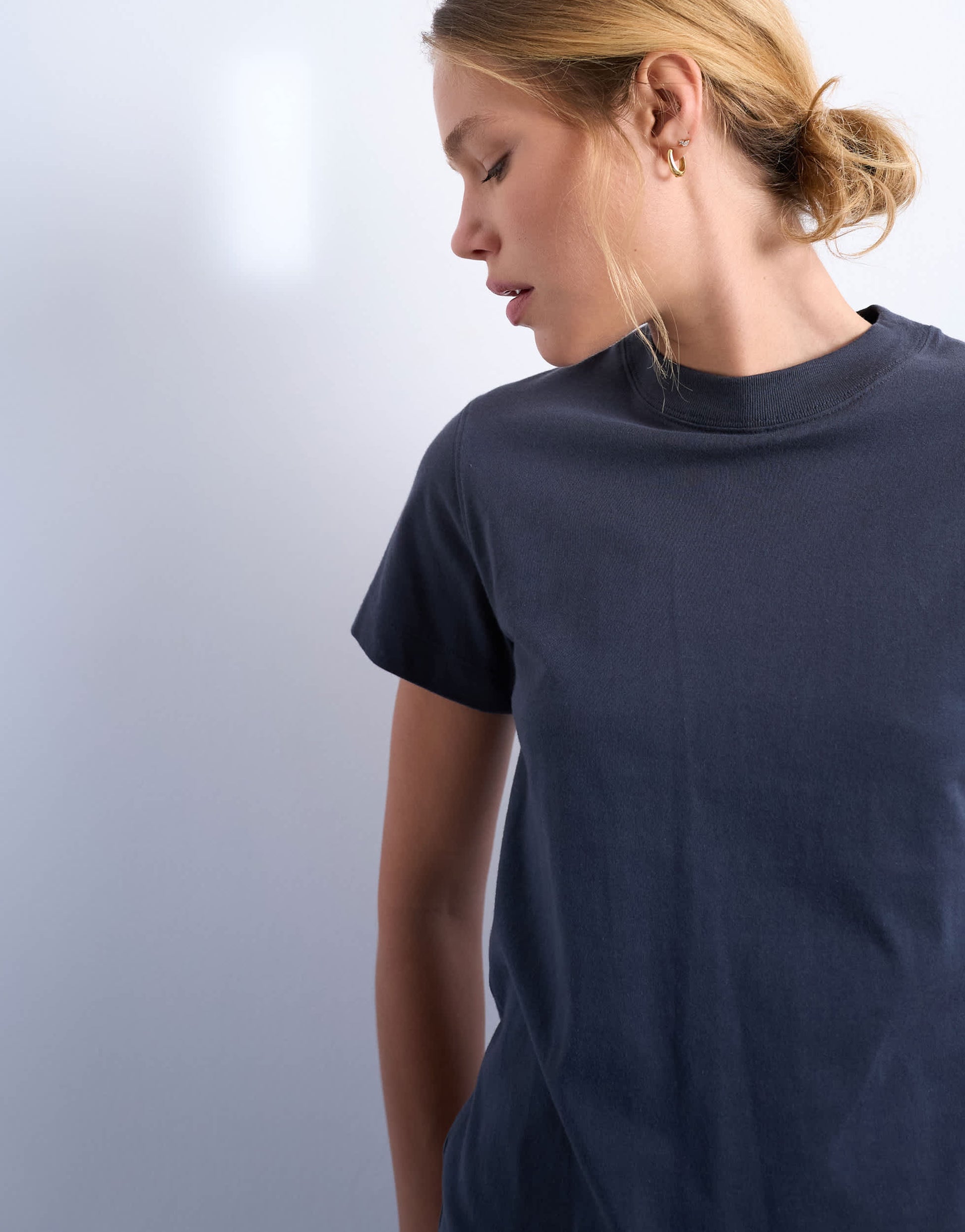Oberteile von TopshopDieses vielseitige, schlichte T-Shirt ist aus weichem, dehnbarem Jersey gefertigt. Es hat einen Rundhalsausschnitt, kurze Ärmel und einen kastenförmigen Schnitt.