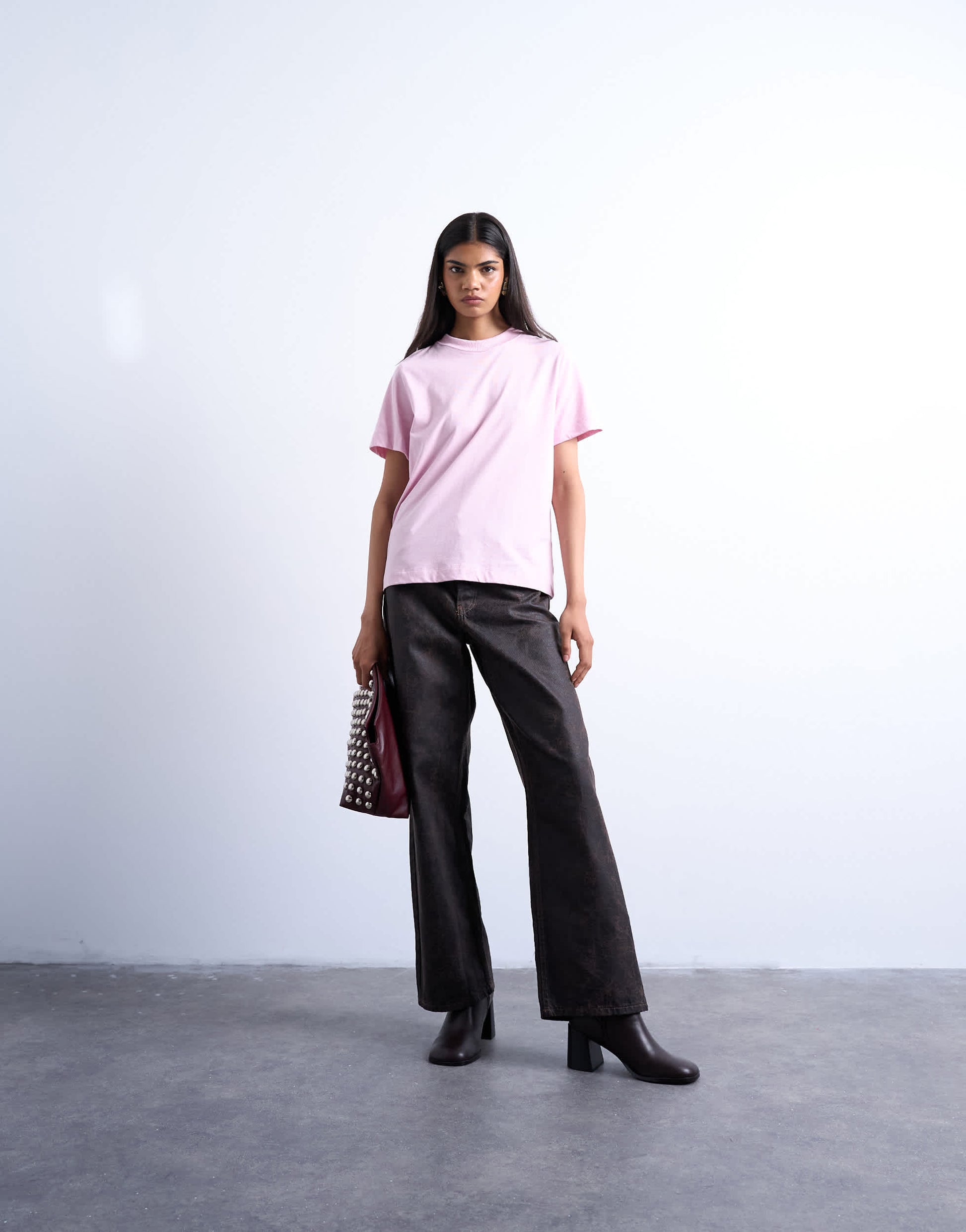 Oberteile von TopshopDieses T-Shirt aus weichem, dehnbarem Jersey besticht durch sein schlichtes, vielseitiges Design. Es hat einen Rundhalsausschnitt, kurze Ärmel und einen kastenförmigen Schnitt.