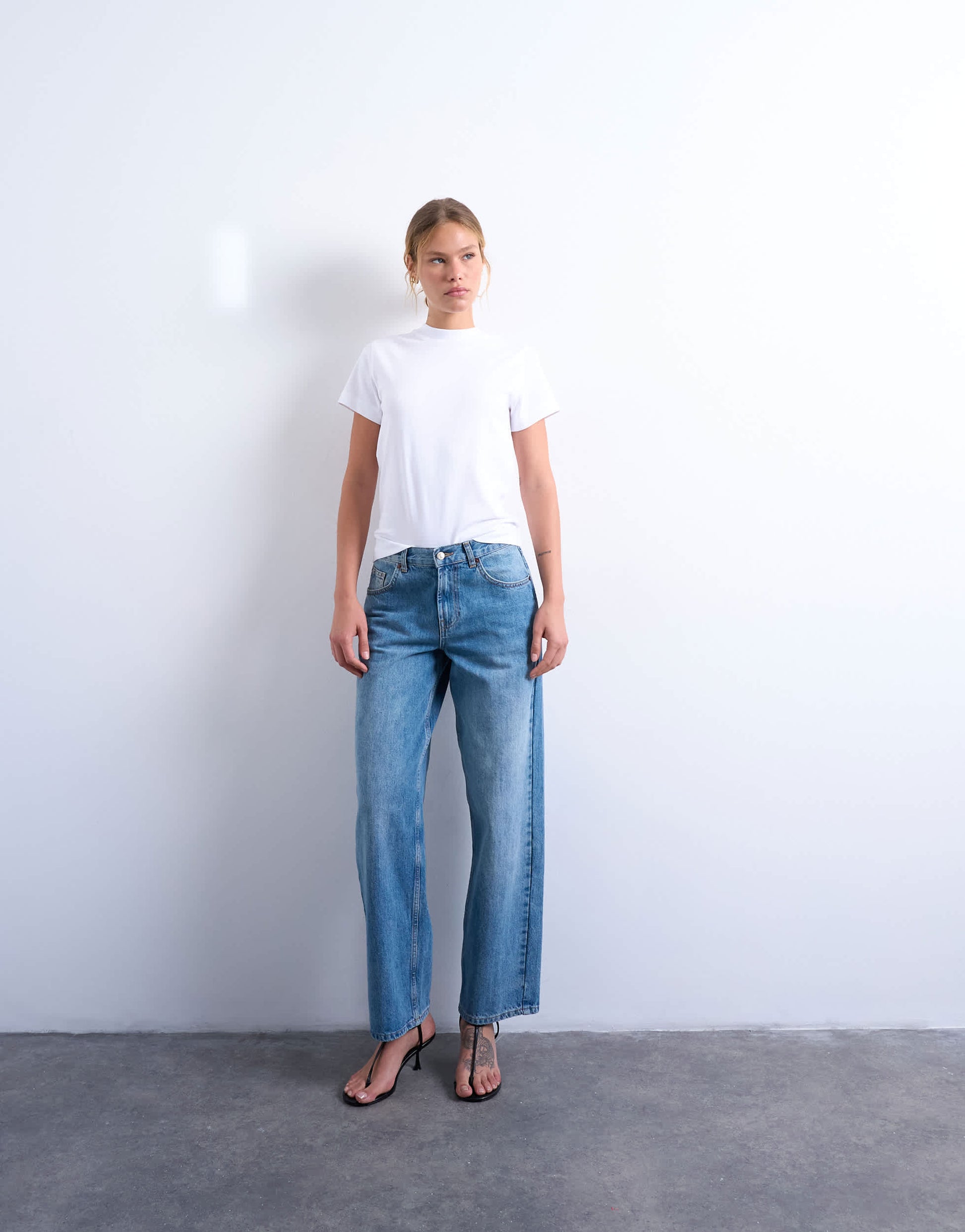 Oberteile von TopshopDieses vielseitige, schlichte T-Shirt ist aus weichem, dehnbarem Jersey gefertigt. Es hat einen Rundhalsausschnitt, kurze Ärmel und einen kastenförmigen Schnitt.