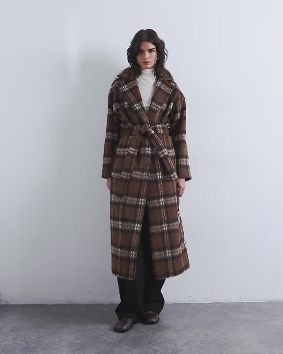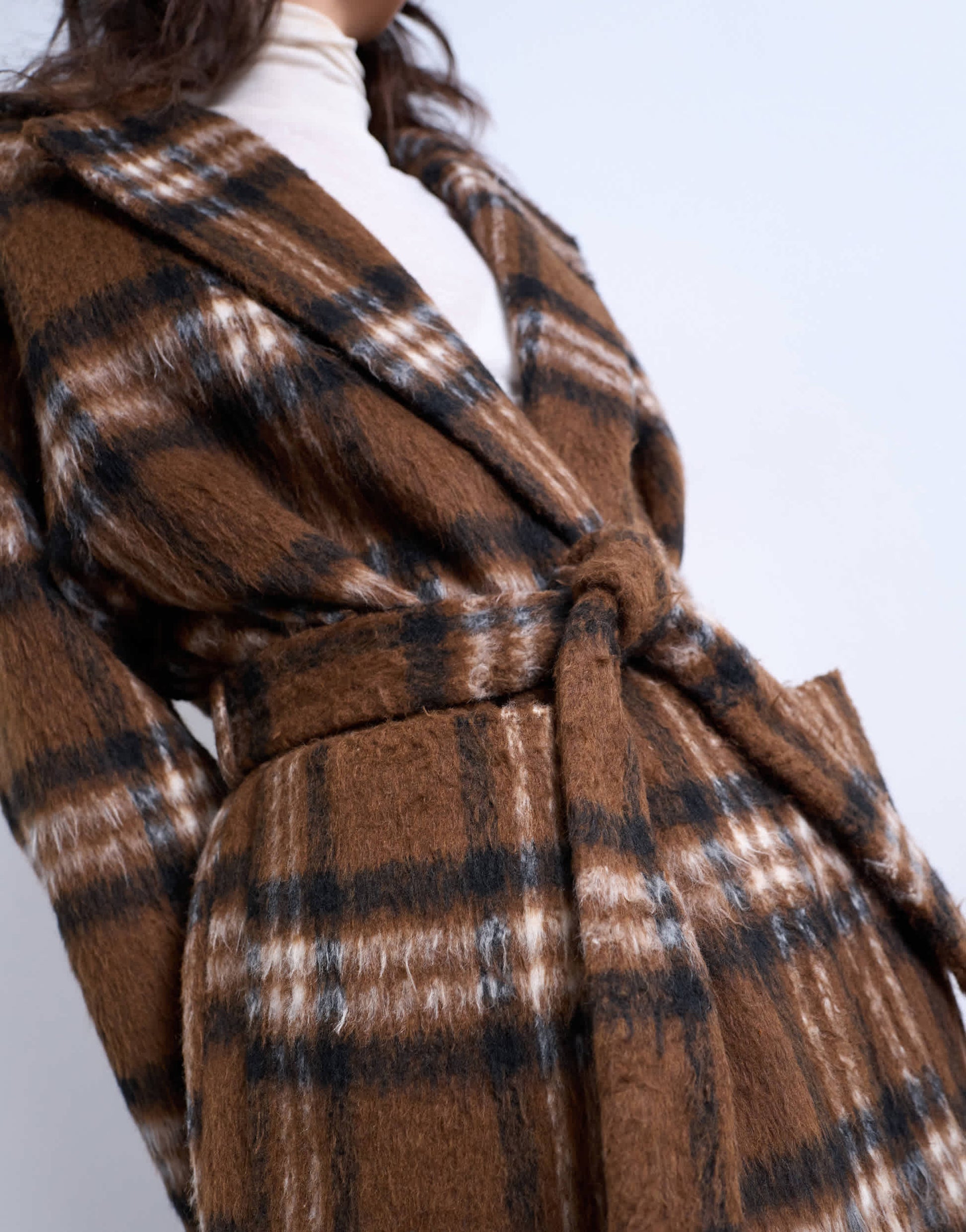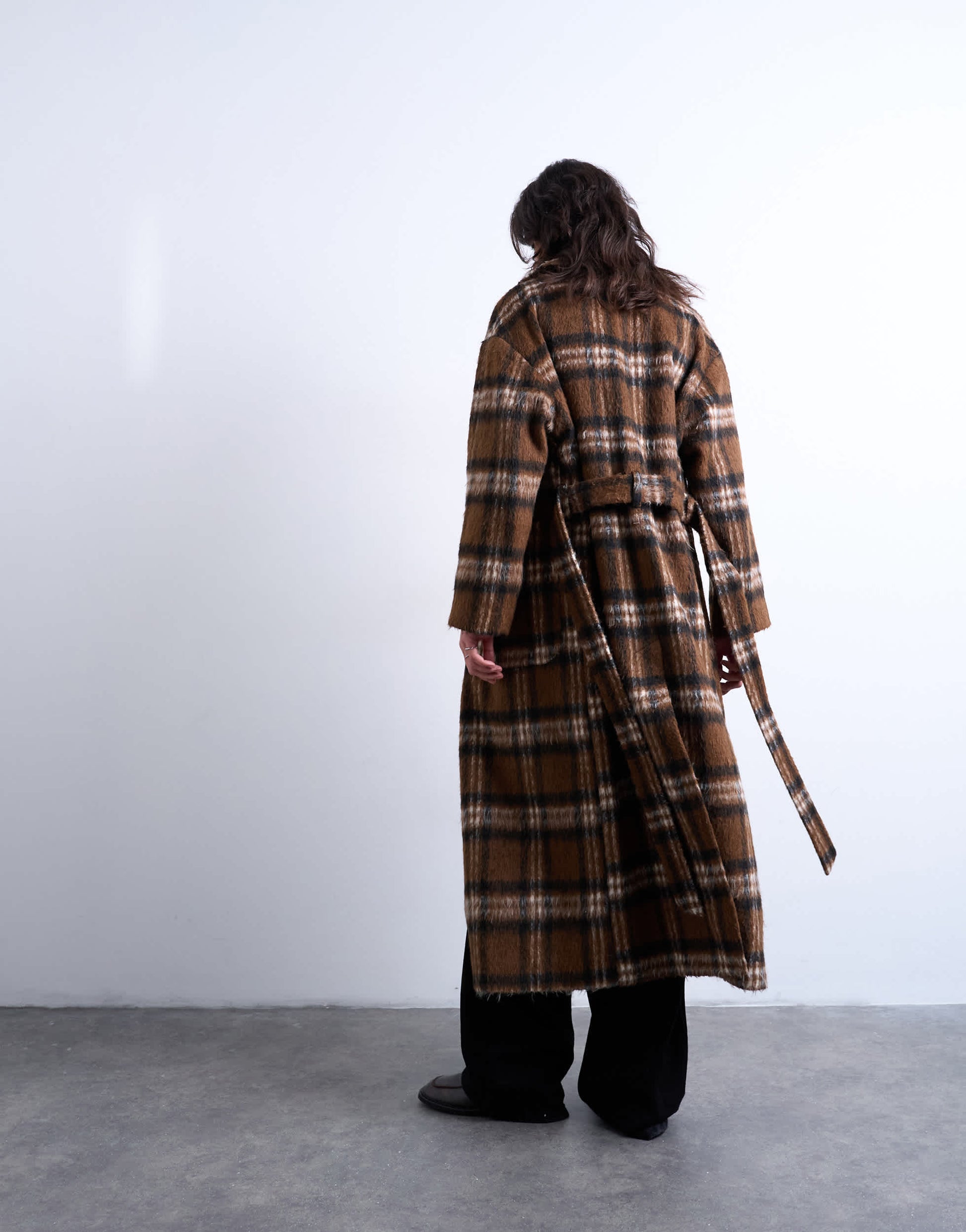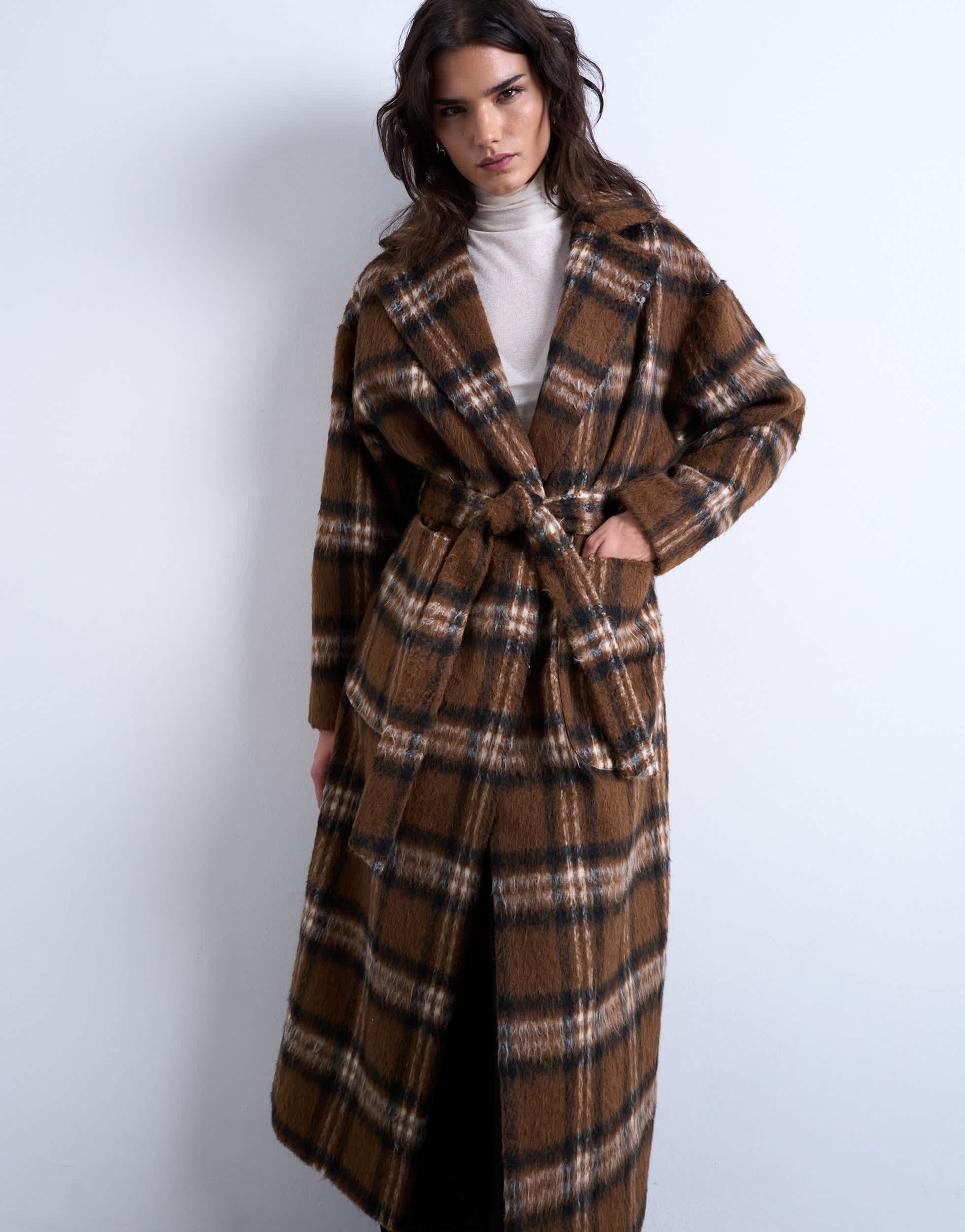 Mäntel und Jacken von TopshopDieser Mantel ist aus gebürstetem Stoff gefertigt und hat ein Karomuster. Er verfügt über einen Reverskragen, einen Taillengürtel, praktische Seitentaschen und einen längeren Schnitt.