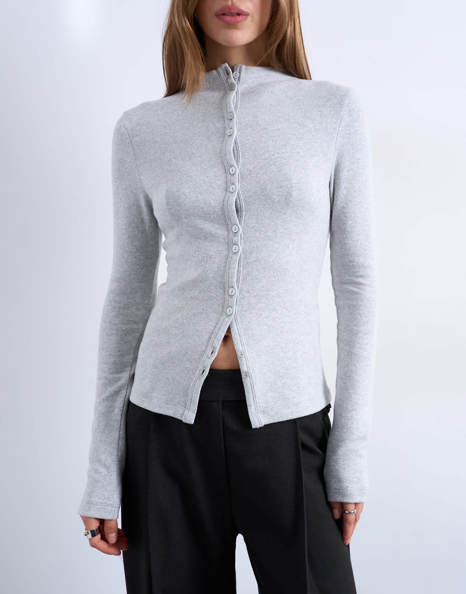 Pullover und Strickjacken von TopshopDiese Strickjacke besticht durch ihr klares, minimalistisches Design mit hohem Kragen, langen Ärmeln und einer mittigen Knopfleiste. Sie ist aus einem feinen, dehnbaren Strickmaterial gefertigt.