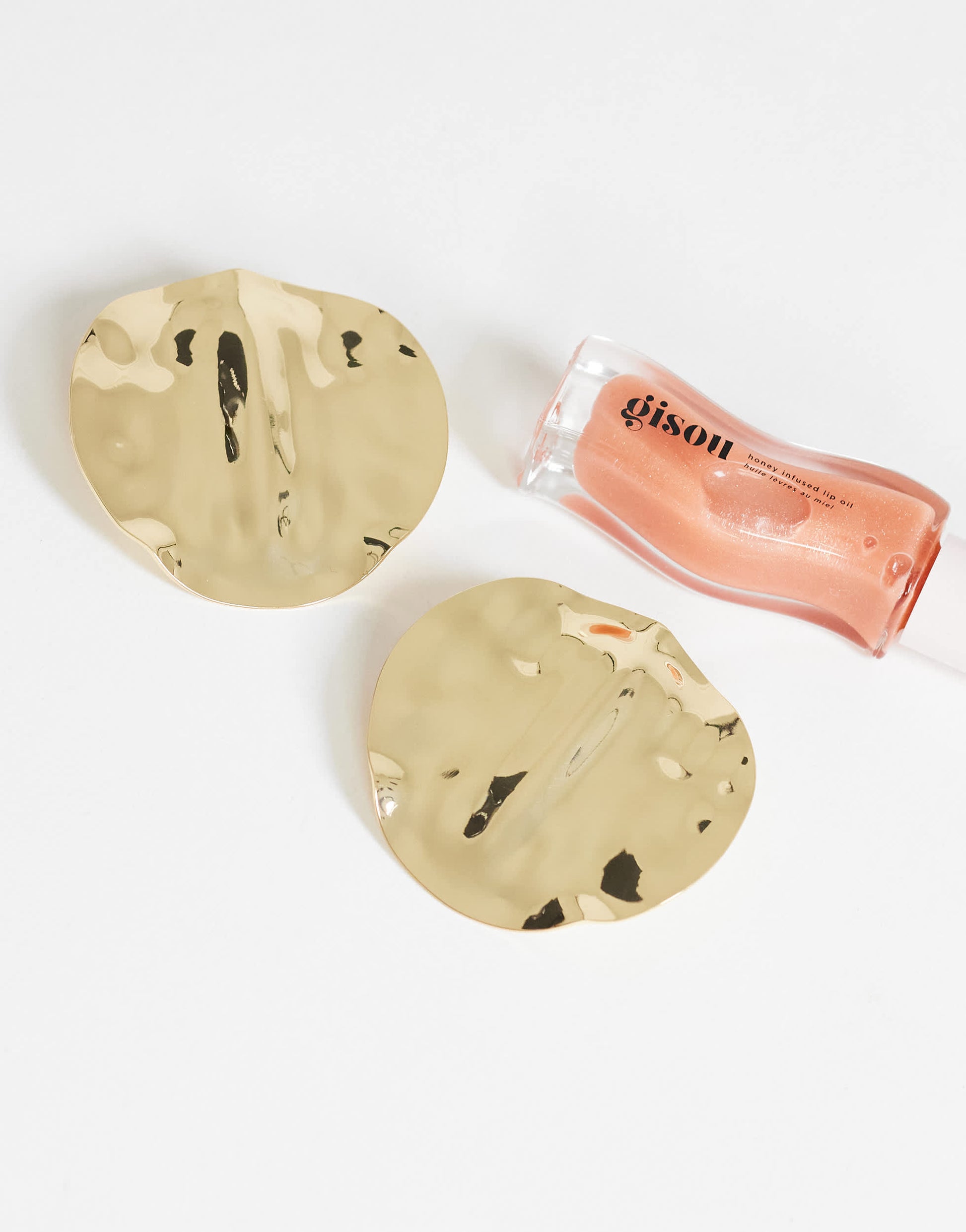 Accessories by TopshopThe Chantal earrings are crafted from a gold-tone metal with a hammered finish. Featuring an oversized, disc design they are finished with a secure, butterfly fastening. Styled with other products. Each item sold separately.
