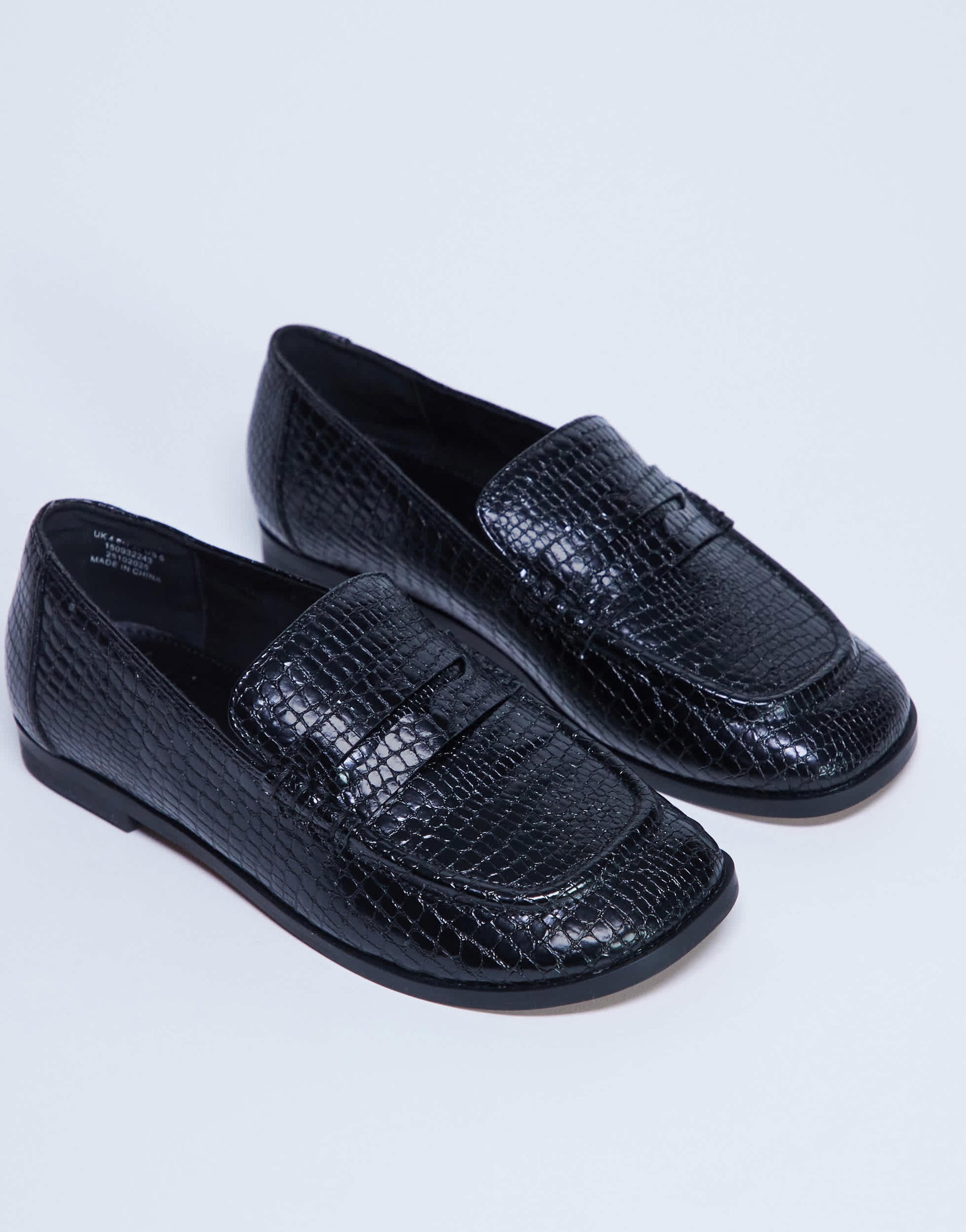 Schuhe von TopshopDie Charlie-Loafer bestechen durch ihr klassisches Design mit Penny-Deckel und abgerundeter Zehenpartie. Abgerundet wird das Modell durch eine flache Sohle und ist aus einem strukturierten, schwarzen Stoff gefertigt.