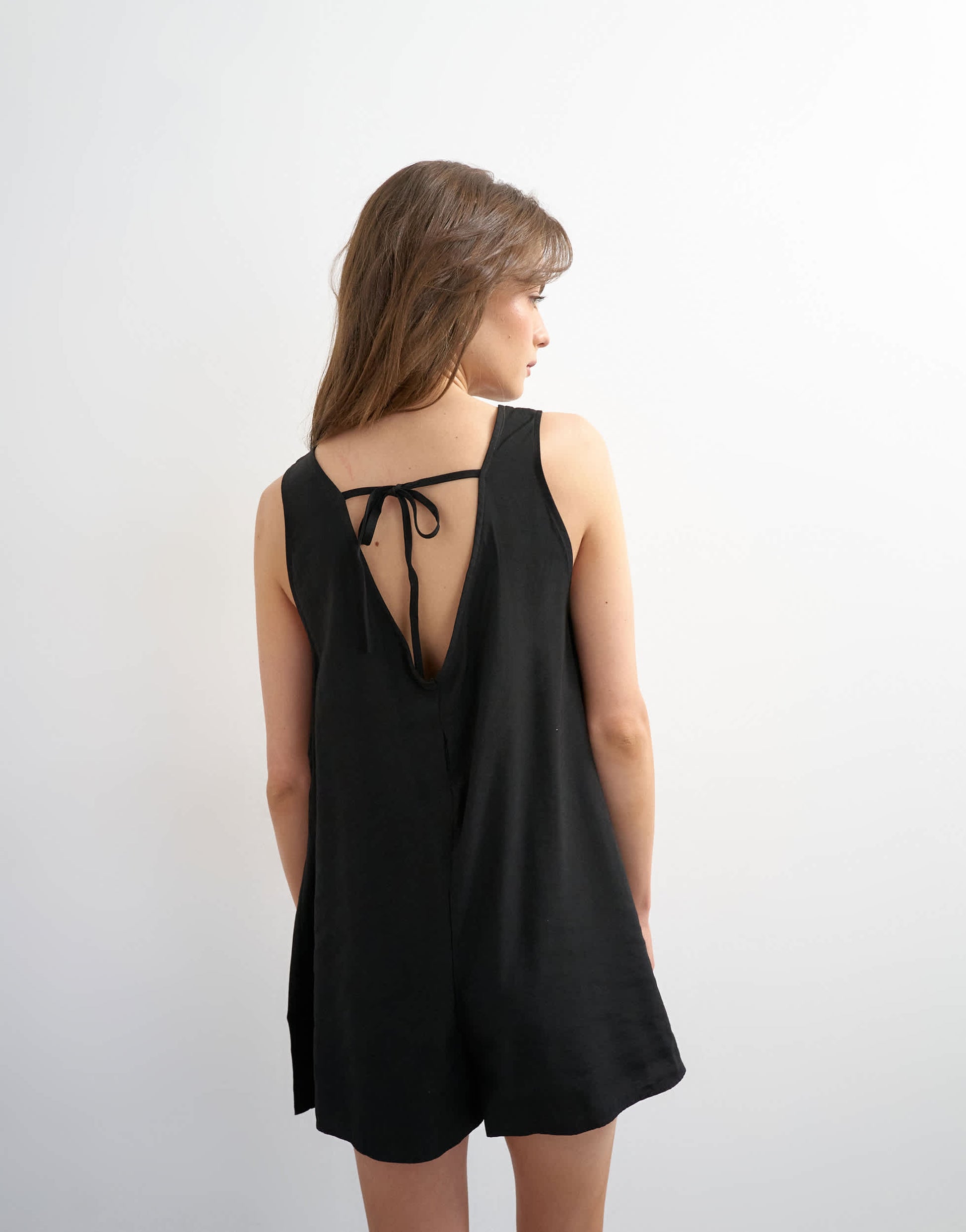 Jumpsuits & Playsuits by TopshopThis playsuit is crafted from cupro in black. It features a round neck, low-cut back, tie fastening and is cut with a regular fit.