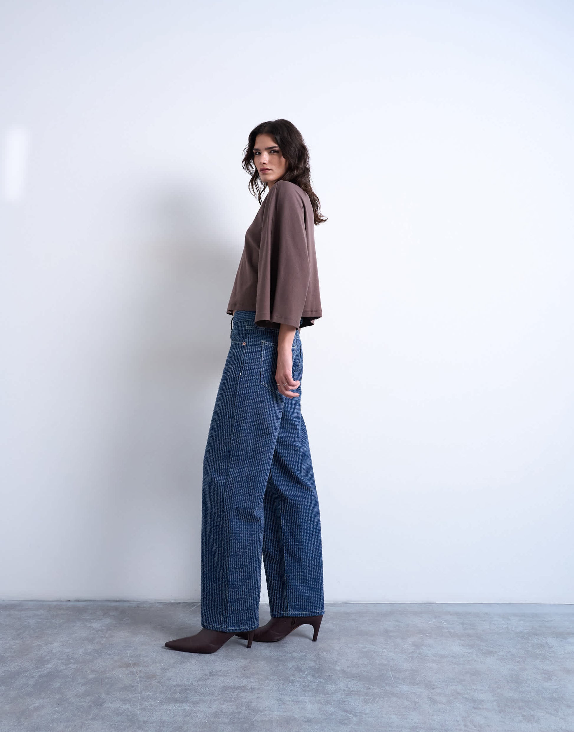 Jeans von TopshopDie Cinch Jeans haben einen niedrigen Bund und ein lockeres, gerades Bein, das am Knöchel hoch angesetzt ist. Sie sind aus nicht dehnbarem Denim mit strukturiertem Streifenmuster gefertigt und verfügen über einen Reißverschluss, Gürtelschlaufen, fünf Taschen und einen verstellbaren Kordelzug hinten.