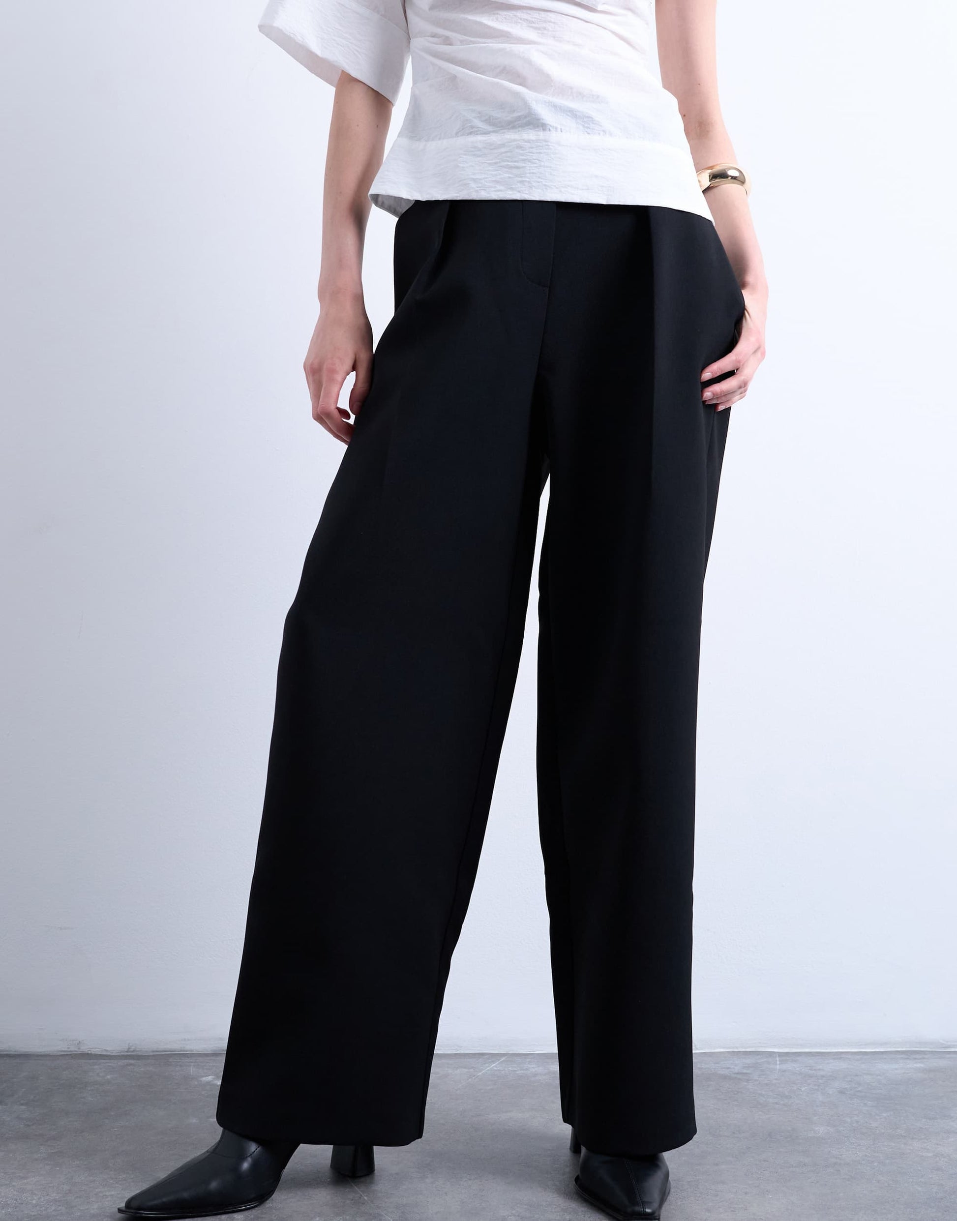 Hosen und Leggings von TopshopDiese Hose ist aus einem glatt gewebten Stoff mit lockerer Passform gefertigt. Sie hat einen hohen Bund, einen verdeckten Hosenschlitz, Seitentaschen und einen lässigen Schnitt, der Komfort und mühelosen Stil vereint.