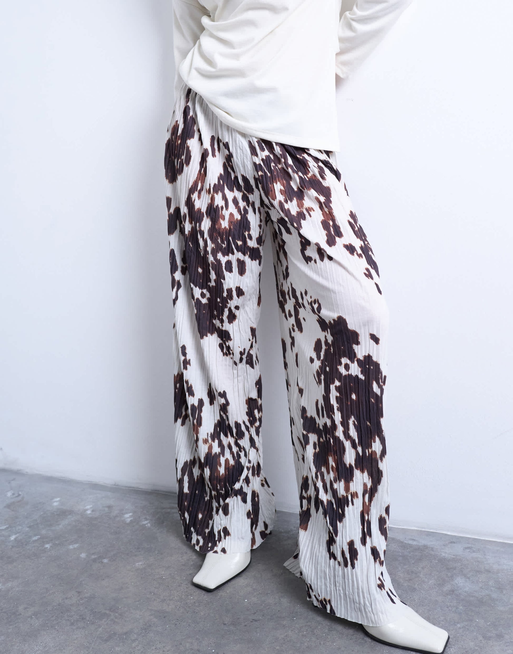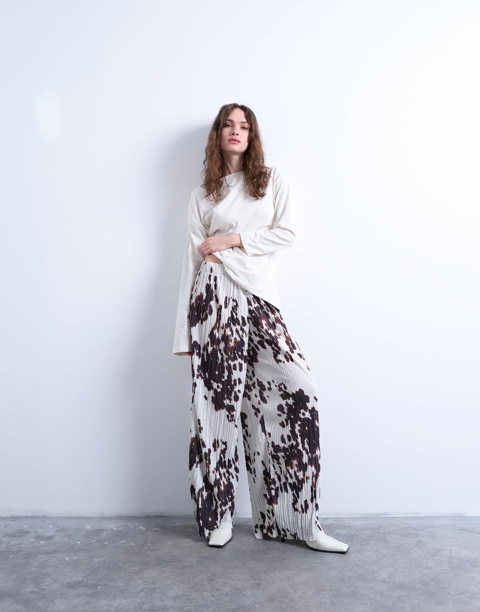 Hosen und Leggings von TopshopDiese Hose ist aus einem leichten, geknitterten Stoff gefertigt und mit einem Kuhmuster versehen. Sie hat einen mittelhohen Bund, einen elastischen Bund und ein weites Bein.