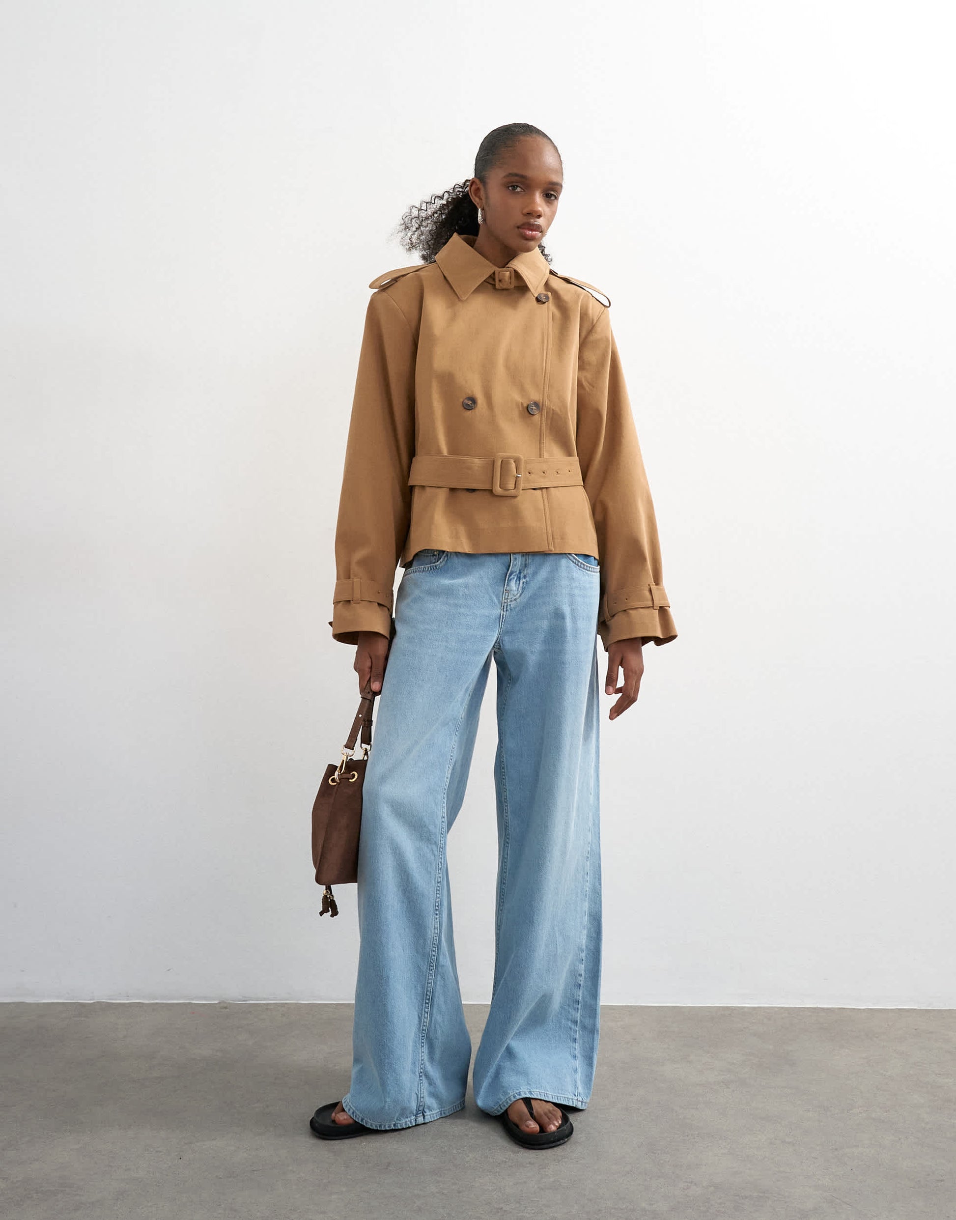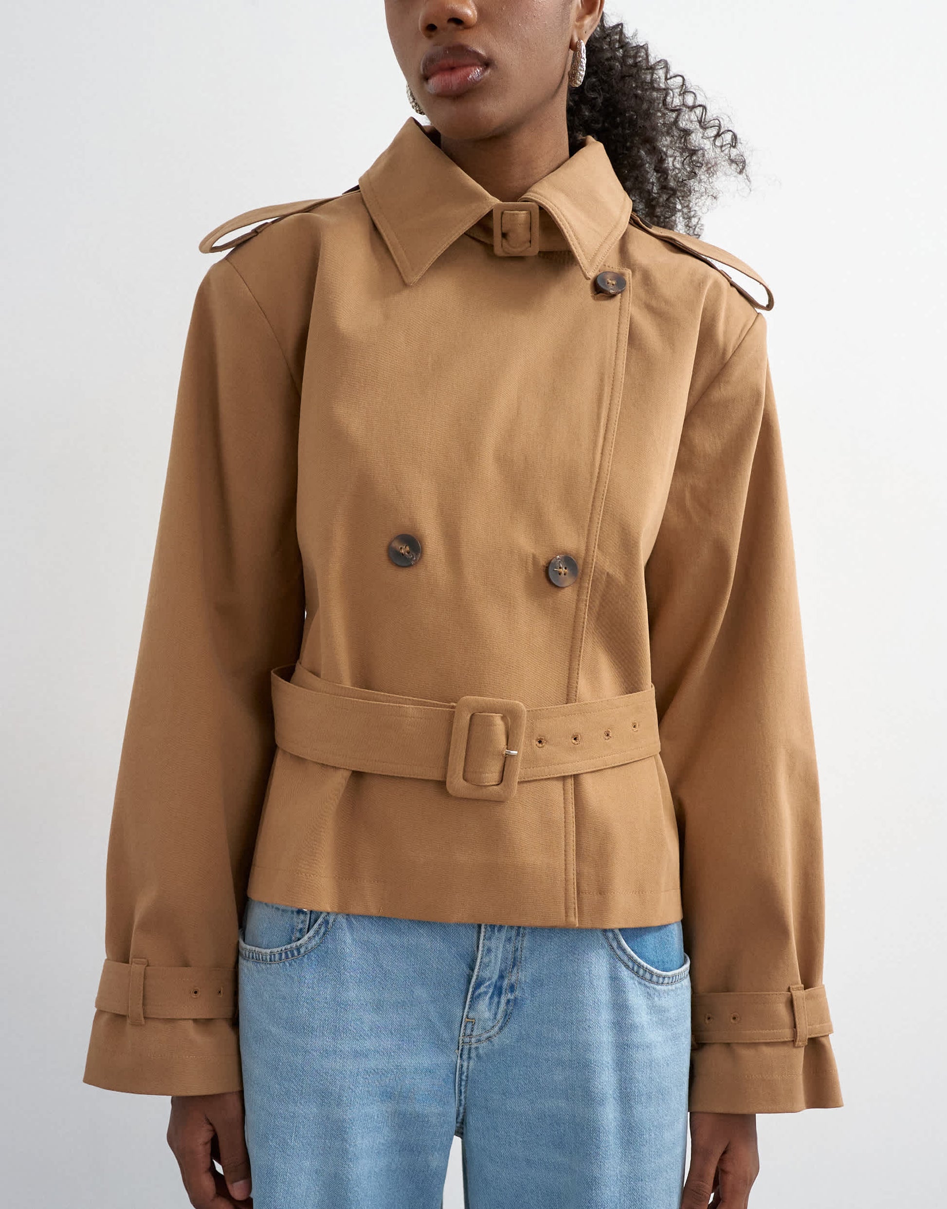 Mäntel und Jacken von TopshopDiese Jacke ist aus gewebtem Stoff in einem Kamelton gefertigt. Sie hat einen Kentkragen, eine Knopfleiste und Gürteldetails an einem kastenförmigen Schnitt.
