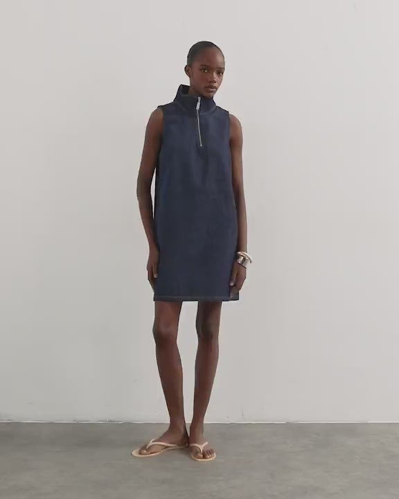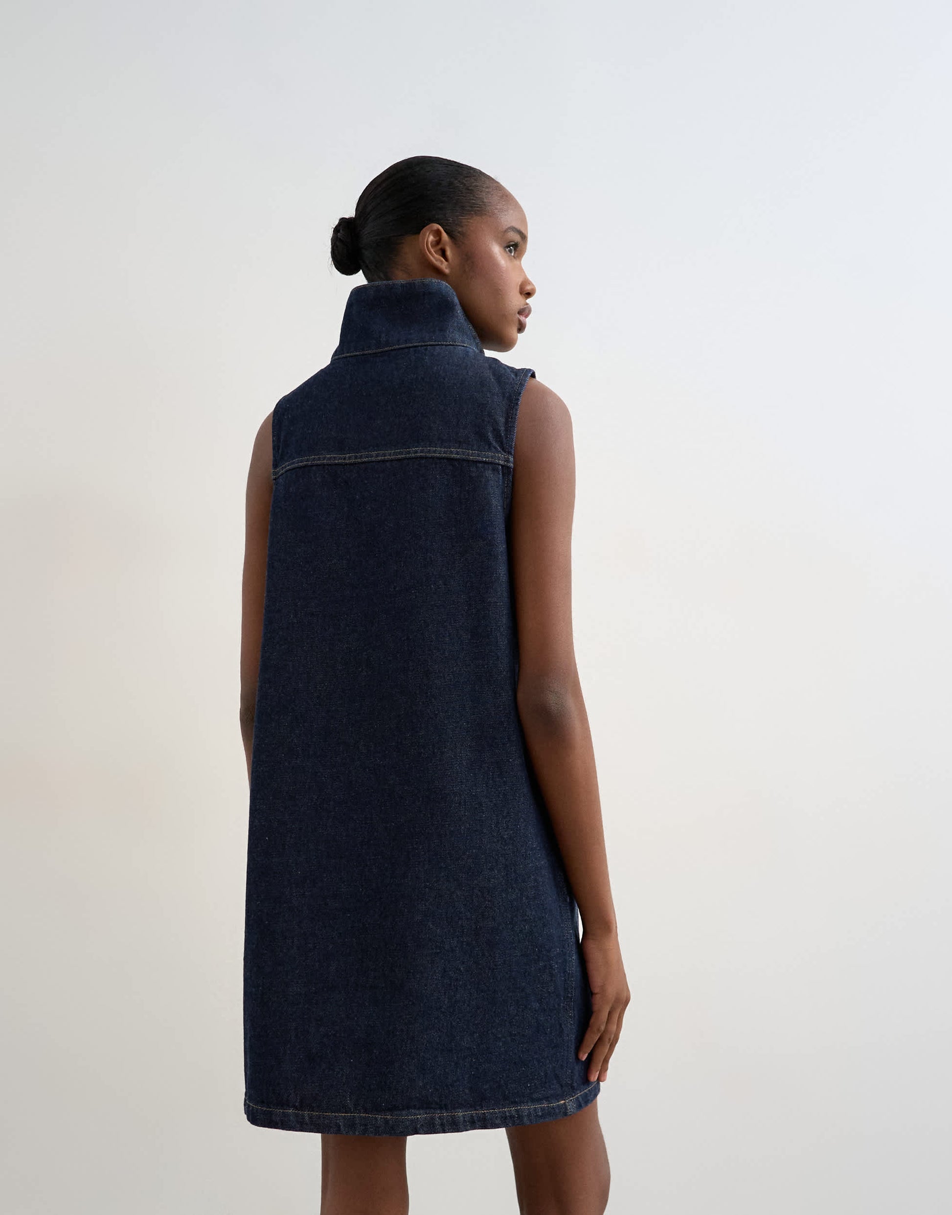 Kleider von TopshopDieses Kleid ist aus nicht dehnbarem Denim in Dunkelblau gefertigt. Das ärmellose Modell hat einen Stehkragen, einen Reißverschluss und eine normale Passform.