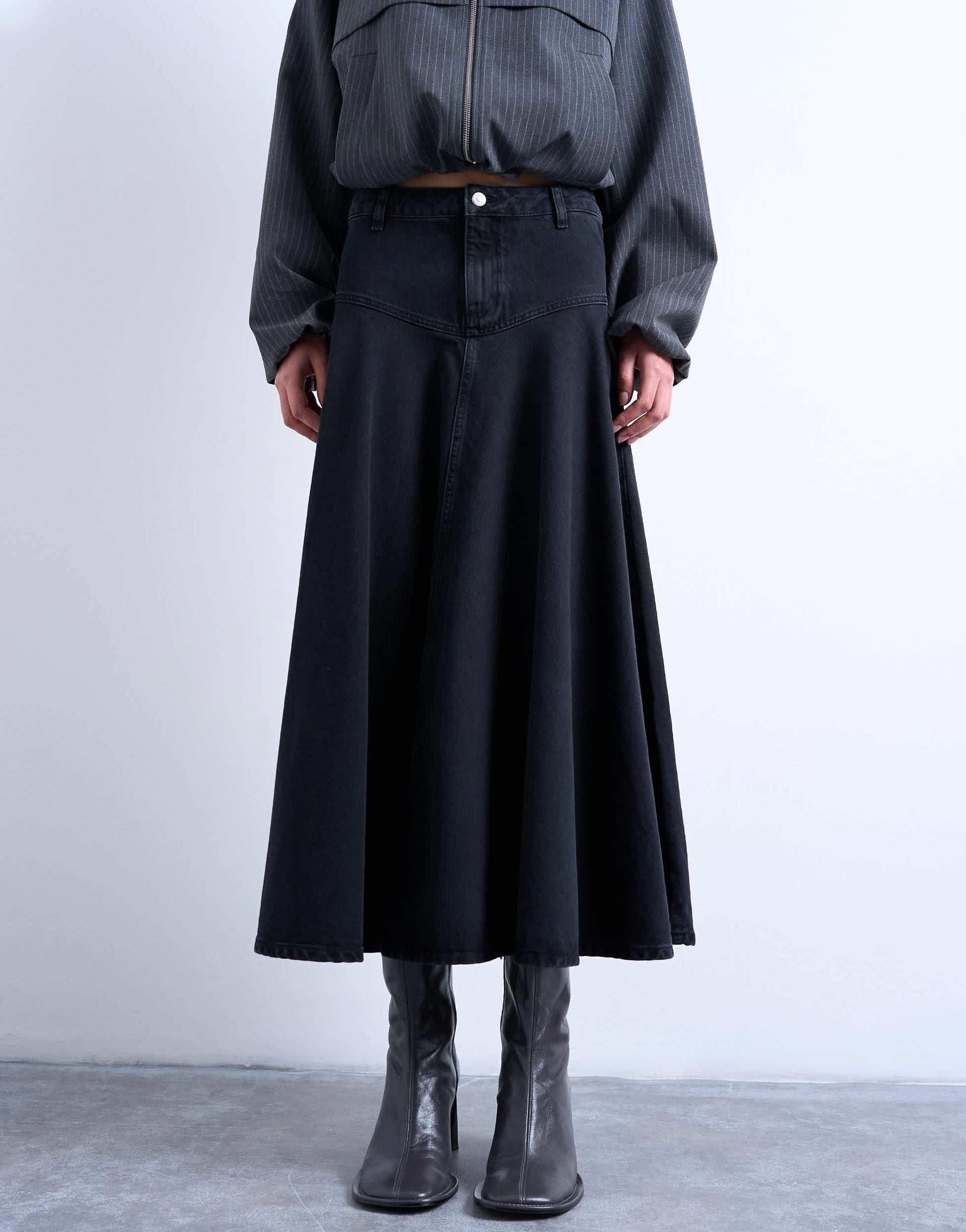 Röcke von TopshopDieser Rock ist aus schwarzem Denim ohne Stretchanteil gefertigt. Er hat einen mittelhohen Bund, Gürtelschlaufen und einen verdeckten Hosenschlitz. Der Rock hat eine tiefe Taille und ist in einer regulären A-Linien-Passform geschnitten.