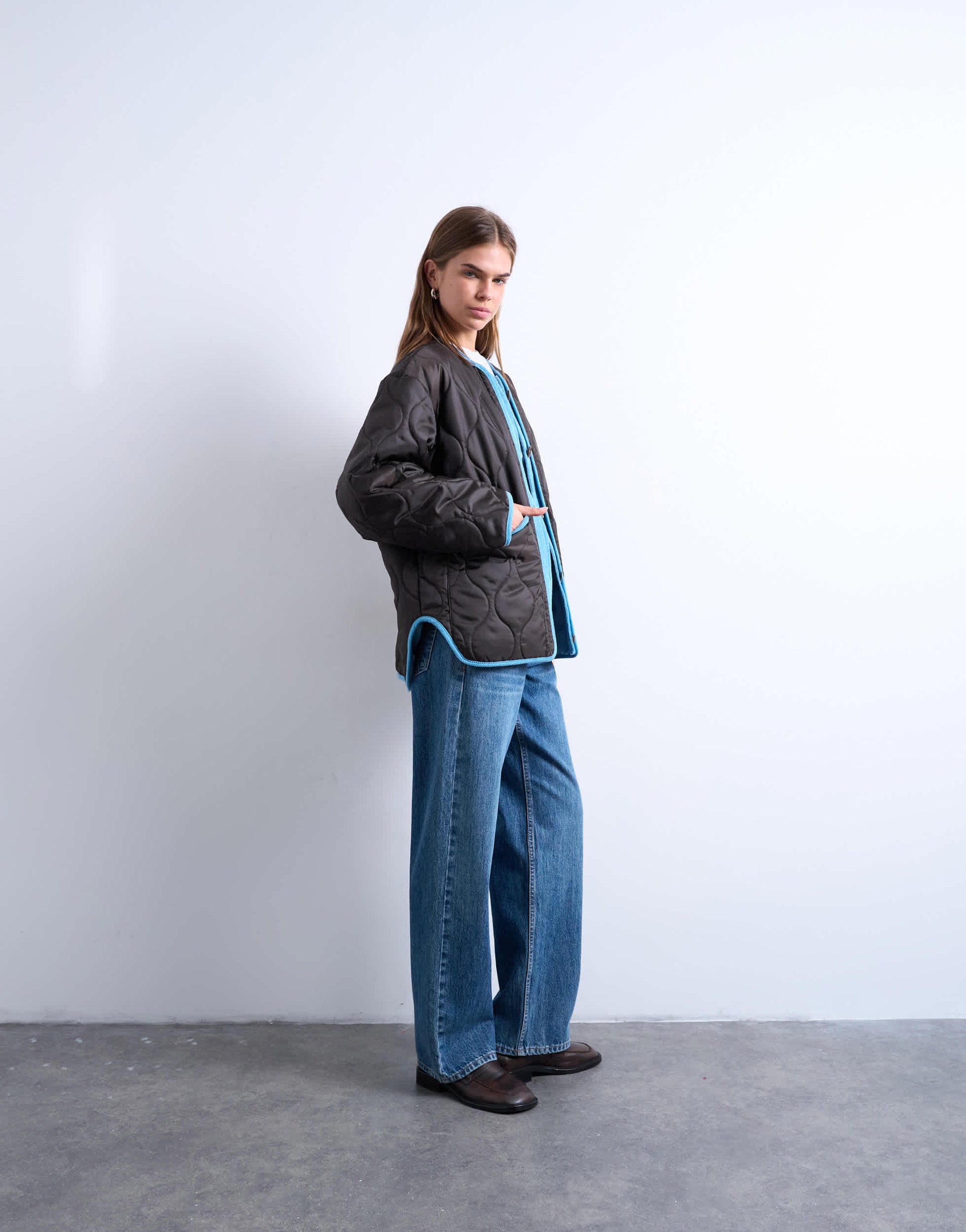 Mäntel und Jacken von TopshopDiese gefütterte Jacke ist aus Ripstop-Gewebe gefertigt, einem strapazierfähigen, gewebten Stoff mit Karomuster. Das kragenlose Modell besticht durch ein gestepptes Design, eine Knopfleiste, praktische Seitentaschen, kontrastierende Besätze und einen abgerundeten Saum.