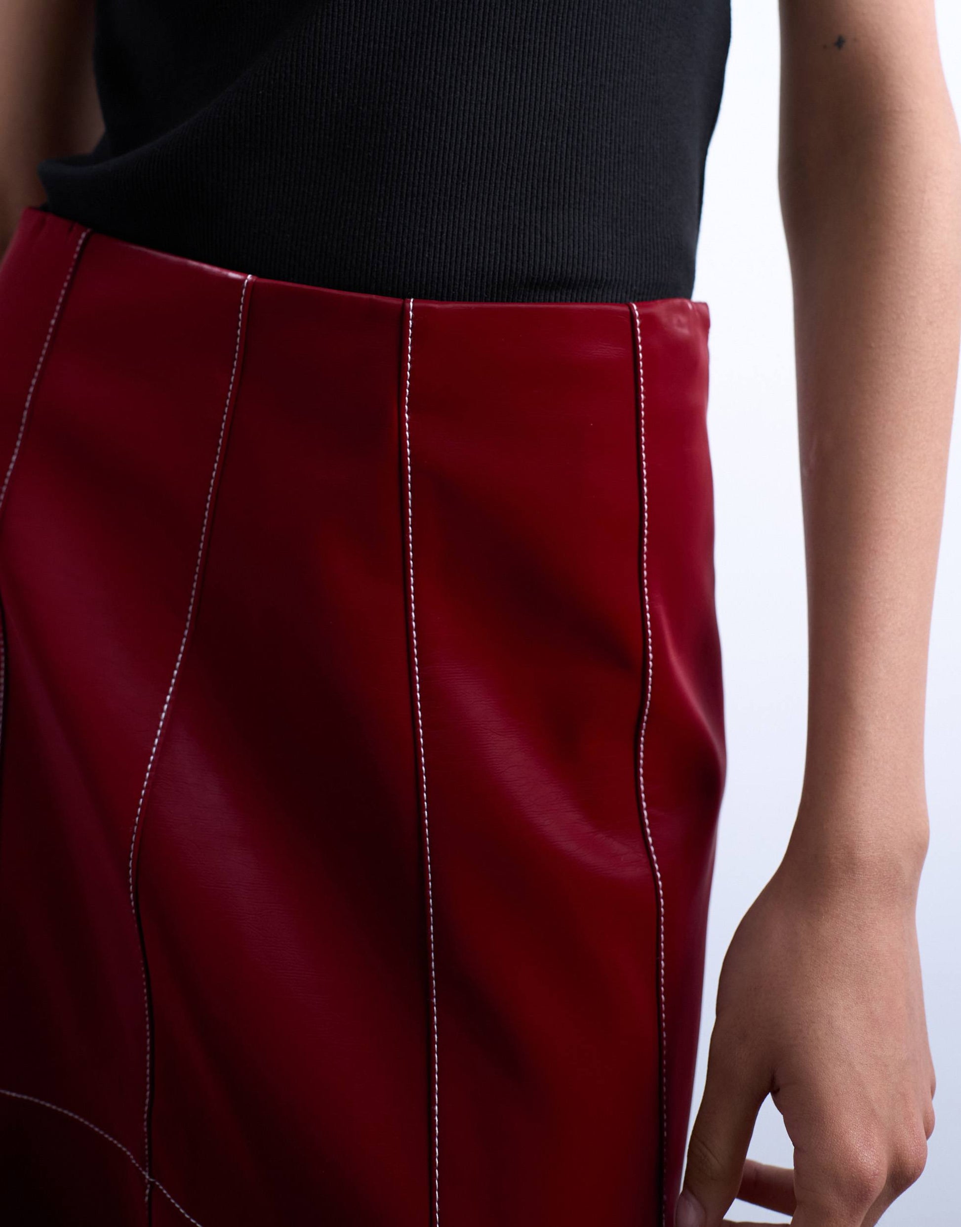 Röcke von TopshopDieser Rock ist aus einem weichen, matten Stoff gefertigt. Er besticht durch Kontrastnähte, einen tiefen Bund und einen seitlichen Reißverschluss. Der Schnitt ist regulär.