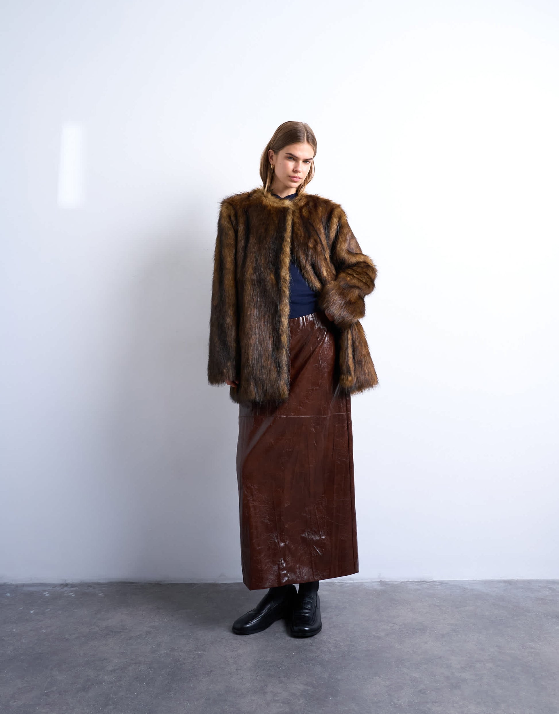 Mäntel und Jacken von TopshopDieser Mantel ist aus superweichem Kunstpelz gefertigt. Das kragenlose Design zeichnet sich durch einen verdeckten Verschluss und eine mittellange Passform aus.