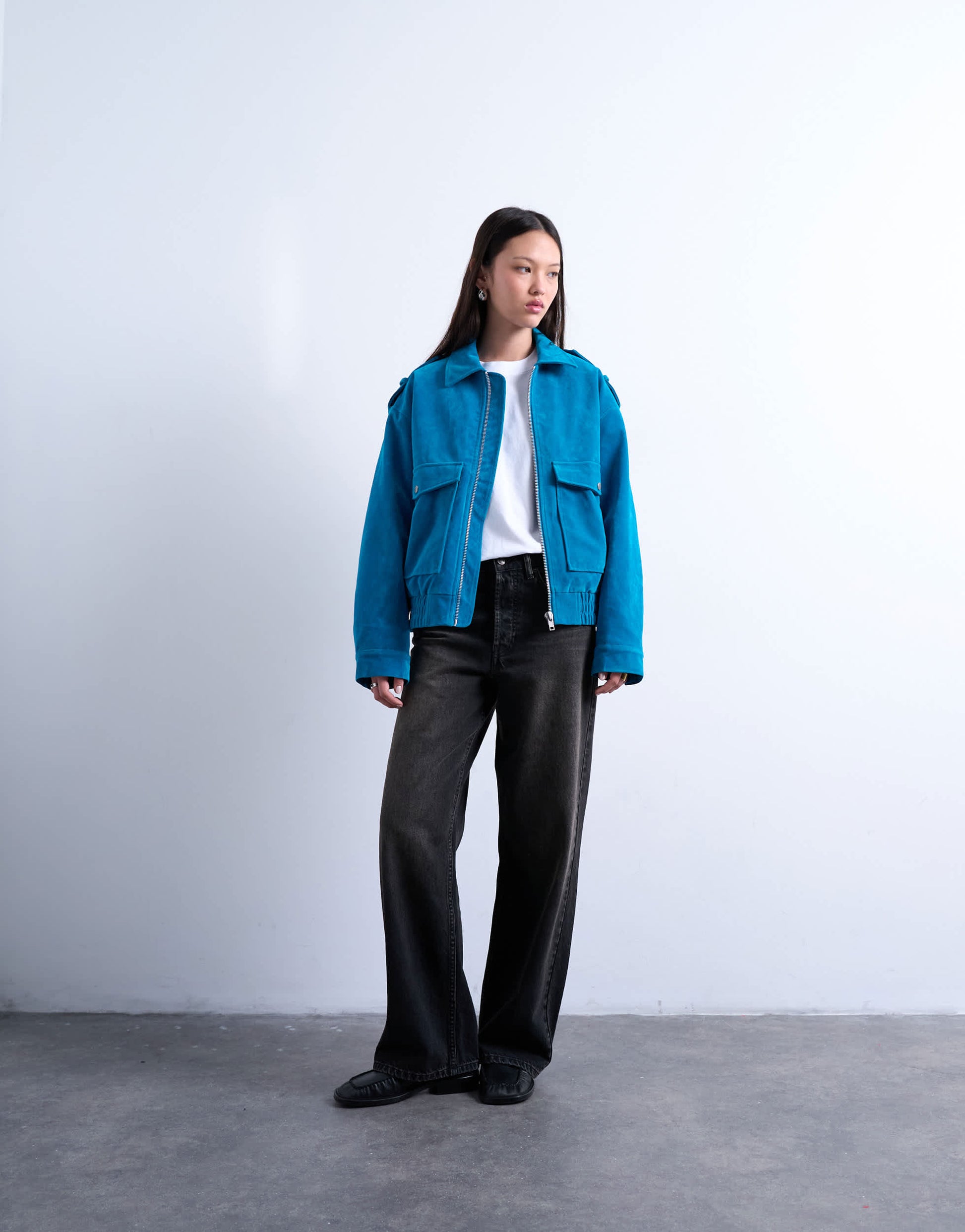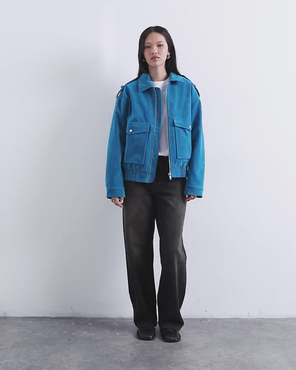 Mäntel und Jacken von TopshopDiese Jacke ist weich, strukturiert und in einem leuchtenden Blau gehalten. Sie hat einen Umlegekragen, einen Reißverschluss, einen elastischen Saum und zwei geräumige Pattentaschen. Silberfarbene Druckknöpfe runden das Design ab.