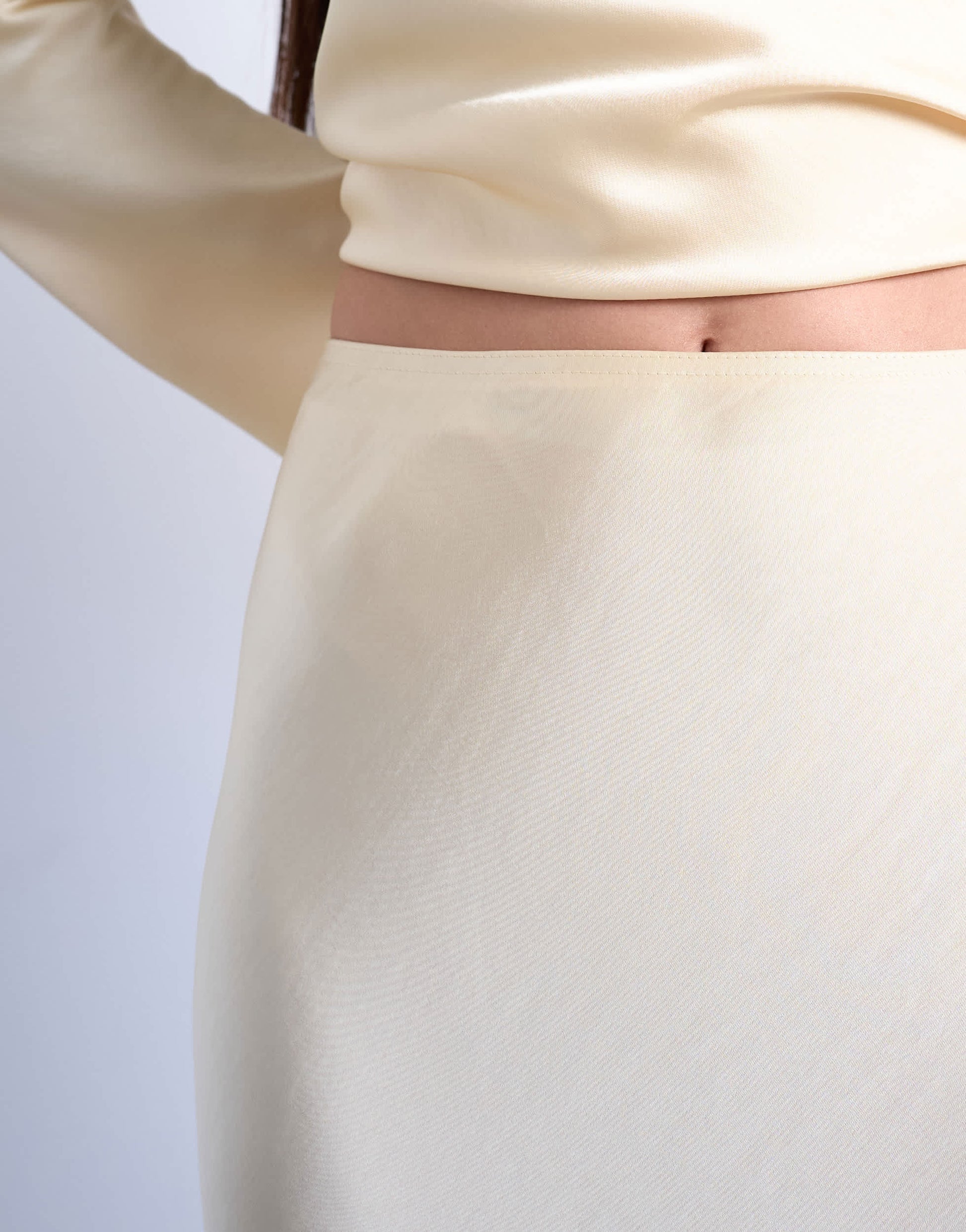 Dieser Rock ist aus einem glänzenden Stoff in Satinoptik gefertigt. Er zeichnet sich durch ein vielseitiges, schlichtes Design, einen hohen Bund und eine bodenlange Silhouette aus.