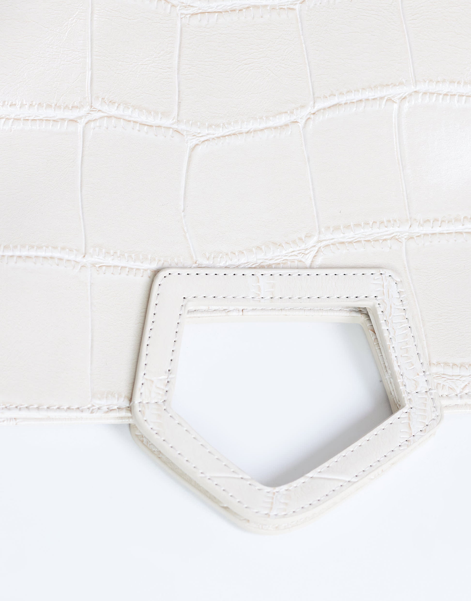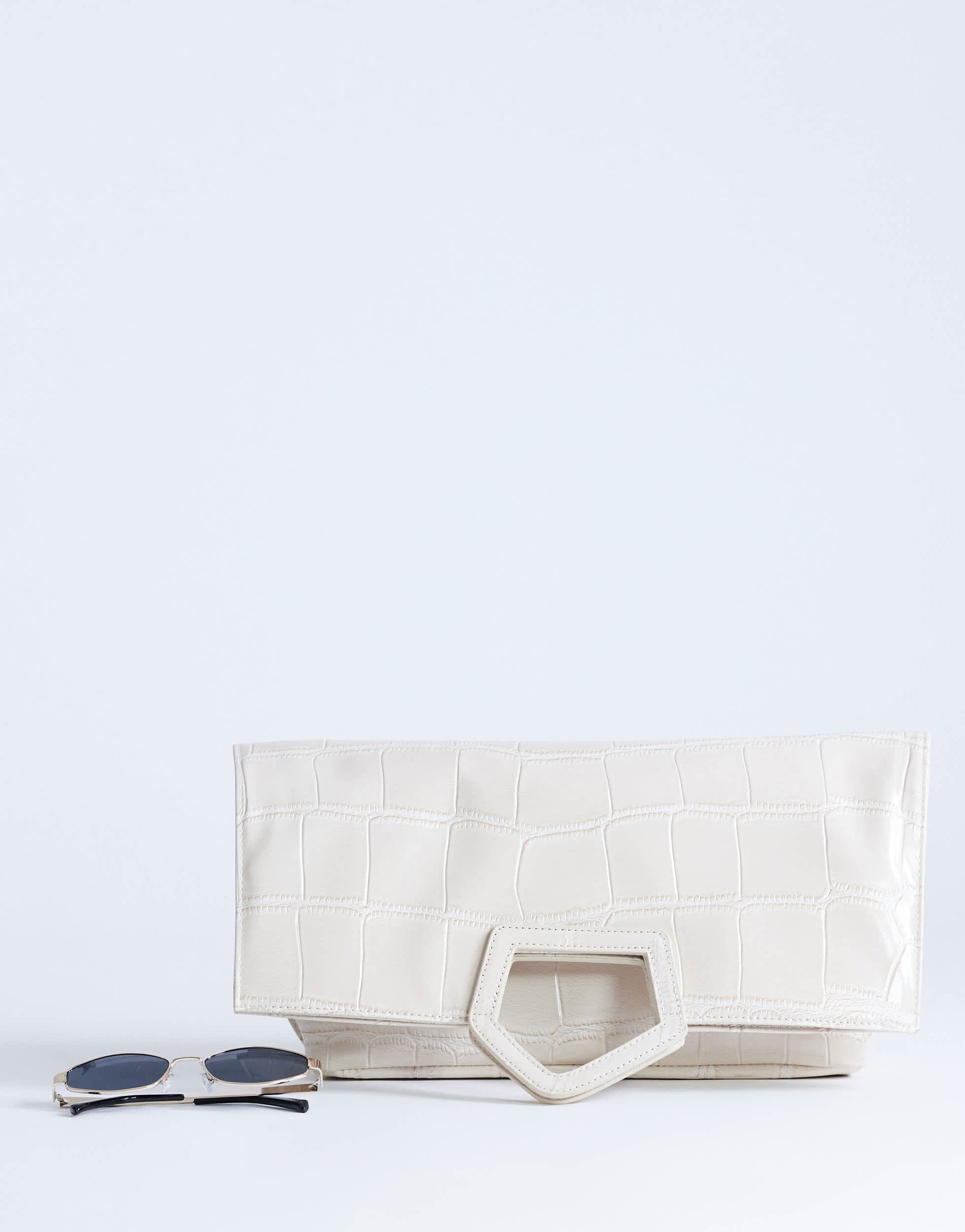 Accessoires von TopshopDiese Gregry-Clutch hat ein cremefarbenes Finish und ein Kroko-Design. Ausgestattet mit zwei Henkeln kann die Tasche auch zusammengefaltet und als Clutch verwendet werden. Mit anderen Produkten gestylt. Jeder Artikel wird separat verkauft