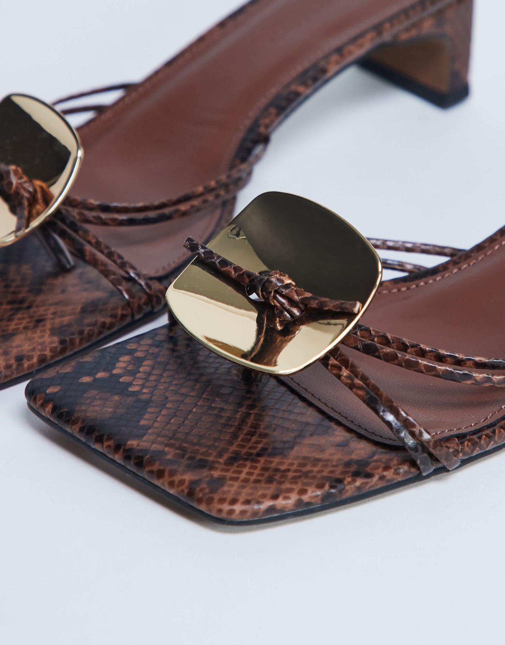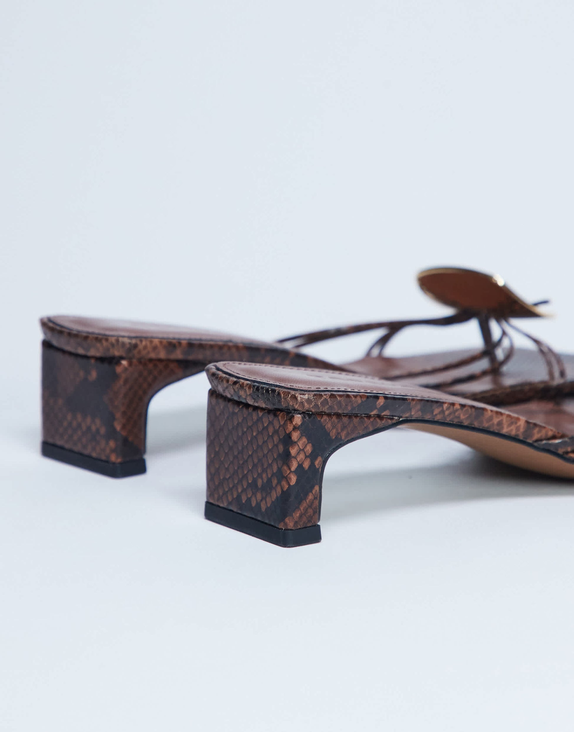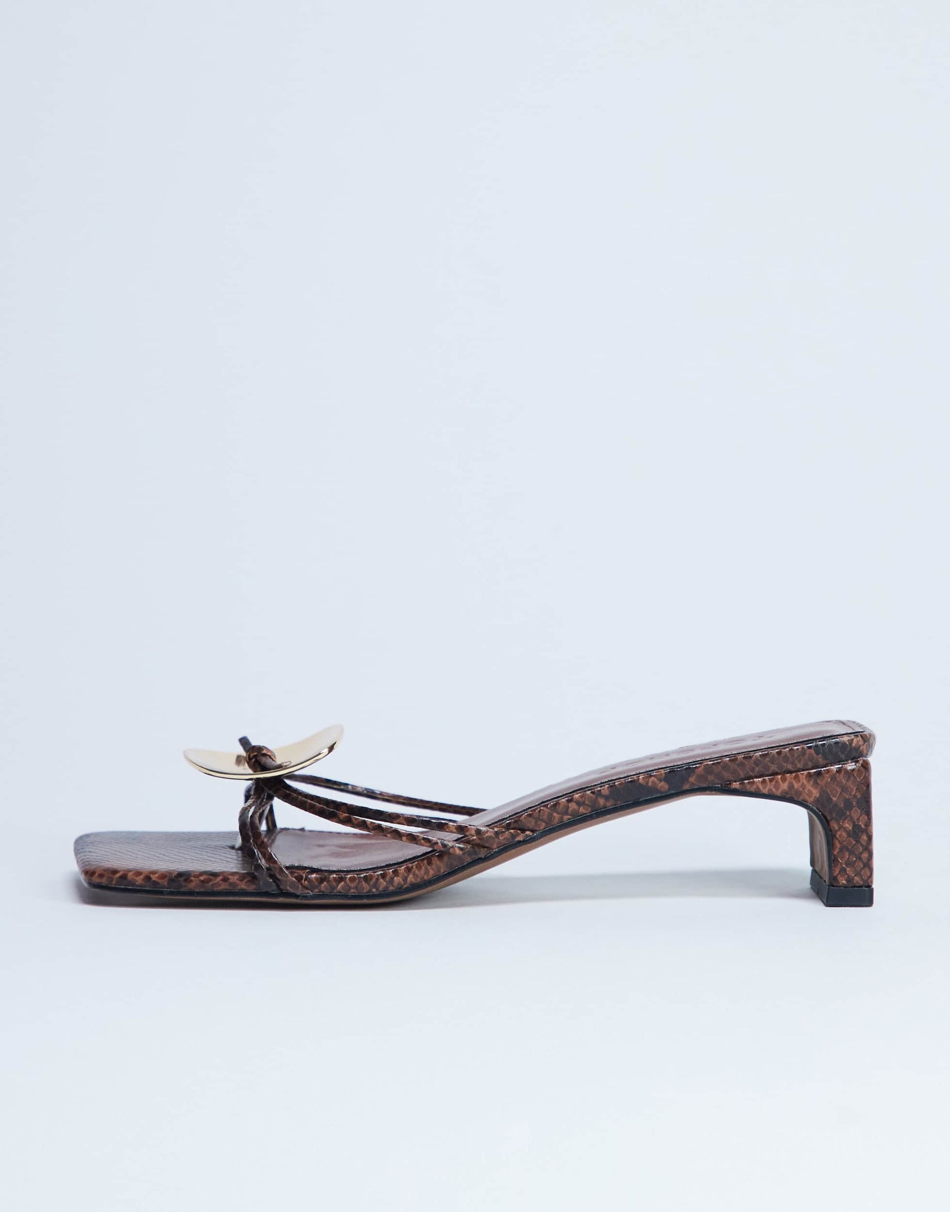 Topshop Ilaria Sandale mit Kitten-Heel und Metallbesatz in Schlangenlederoptik