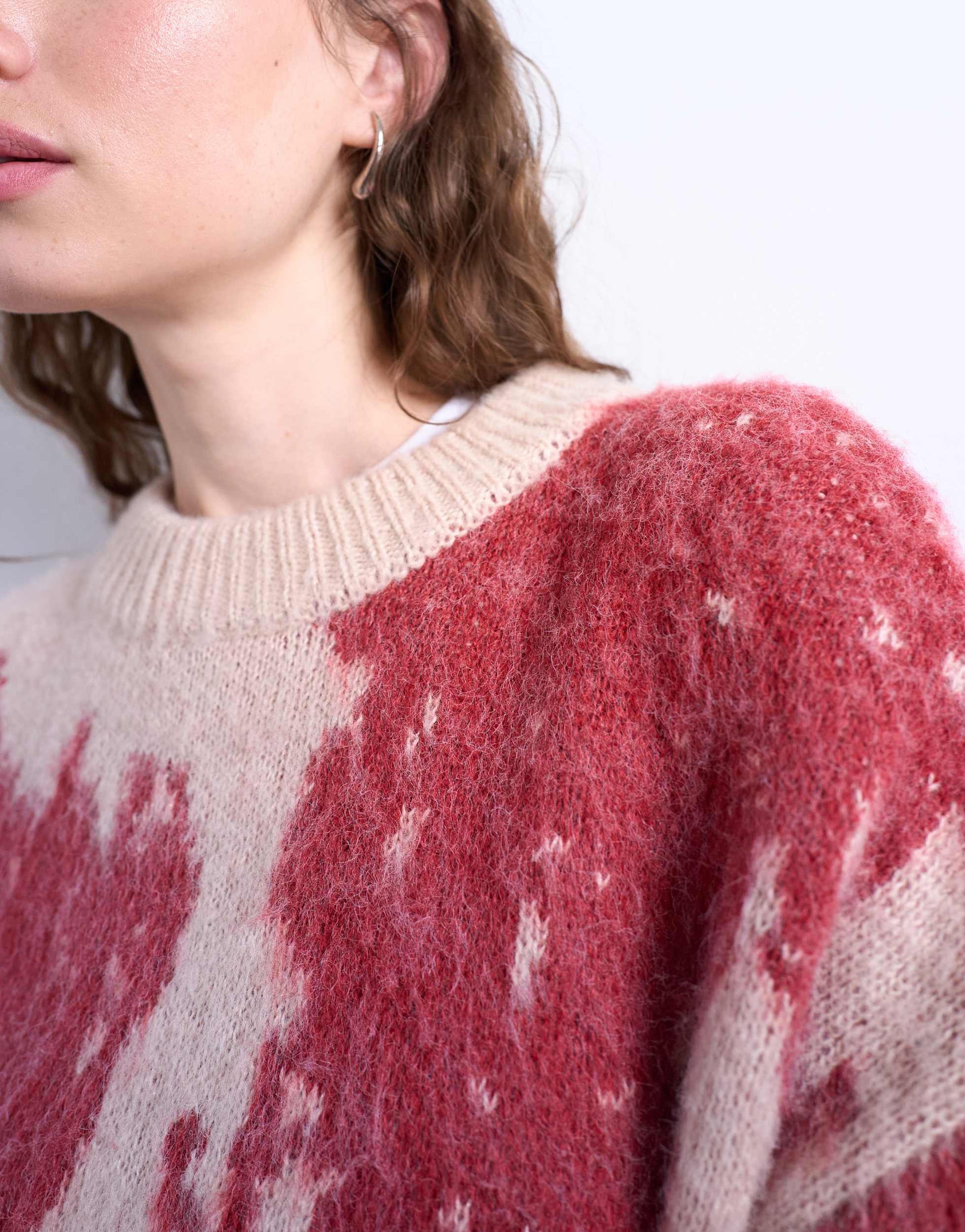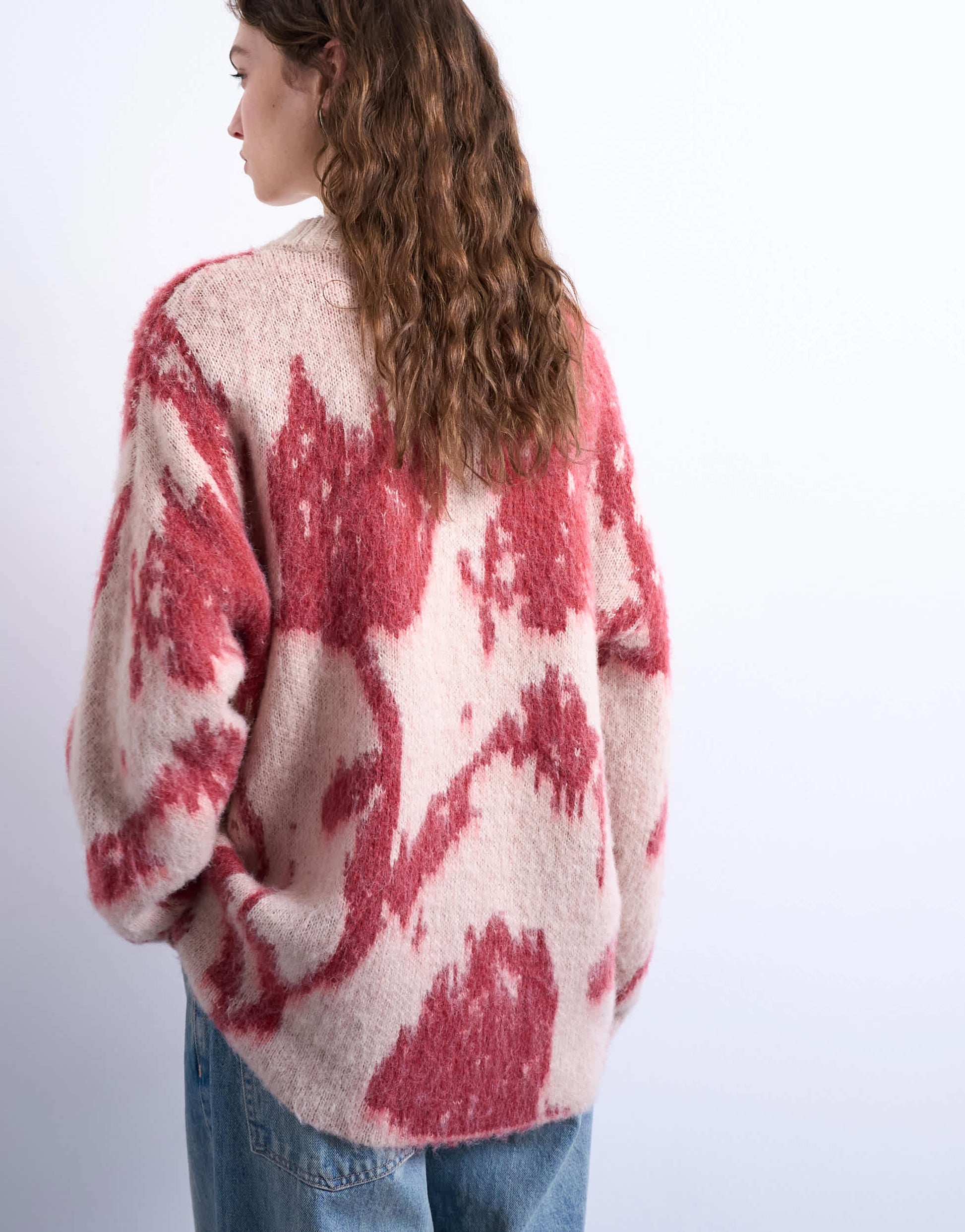Pullover und Strickjacken von TopshopDieser geblümte Pullover aus weichem, angerautem Strickmaterial hat einen Rundhalsausschnitt, lange Ärmel und einen langen, übergroßen Schnitt.