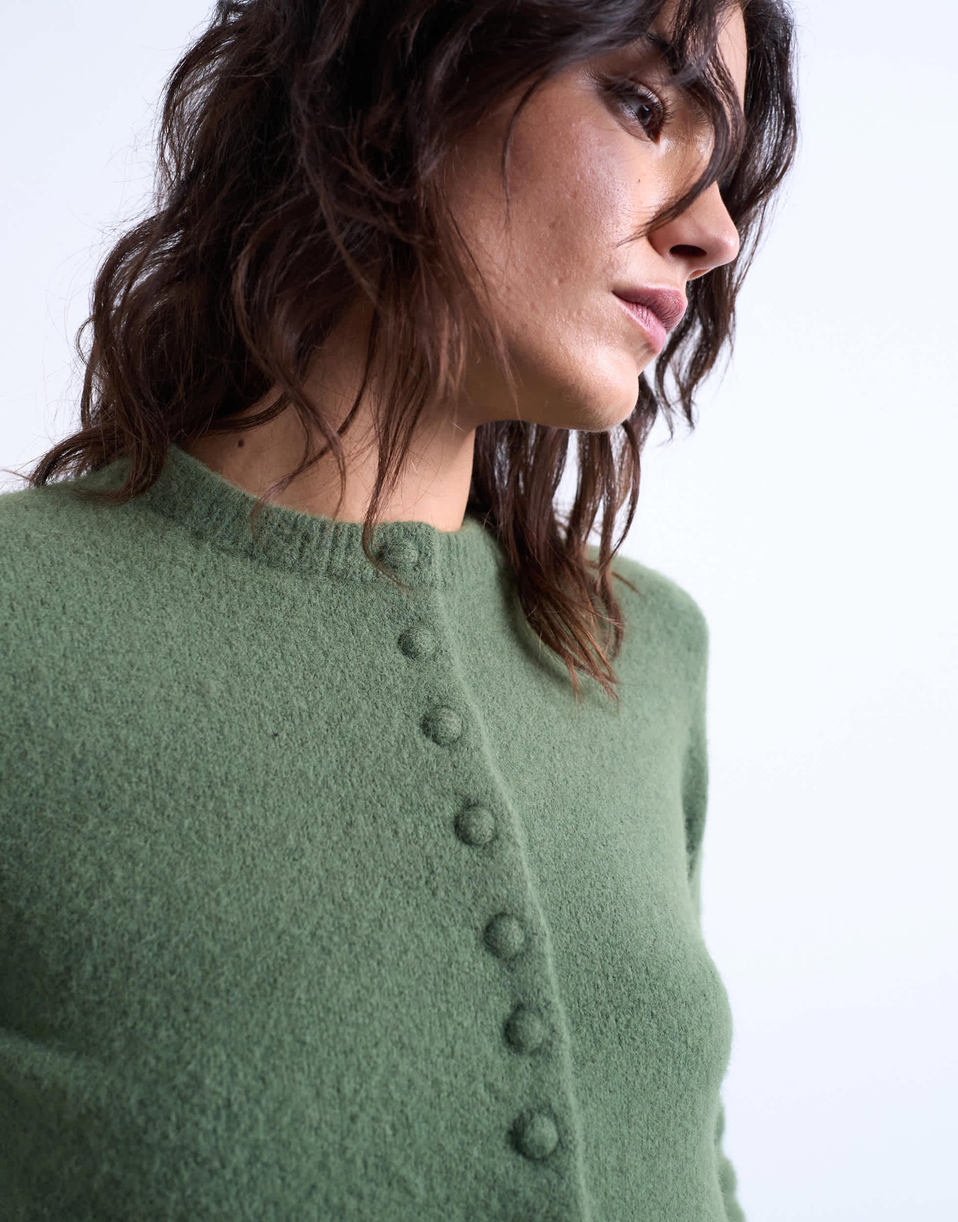 Pullover und Strickjacken von TopshopDiese Strickjacke ist aus mittelschwerem Strick gefertigt. Sie hat einen Rundhalsausschnitt, eine Knopfleiste, lange Ärmel und ist normal geschnitten.