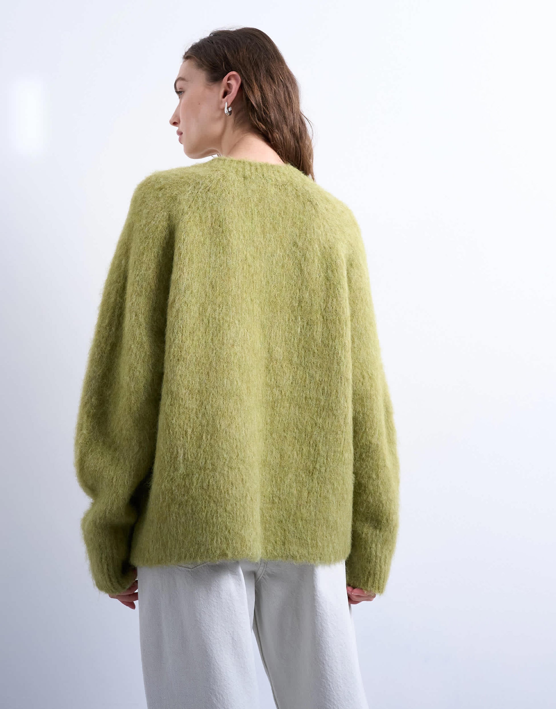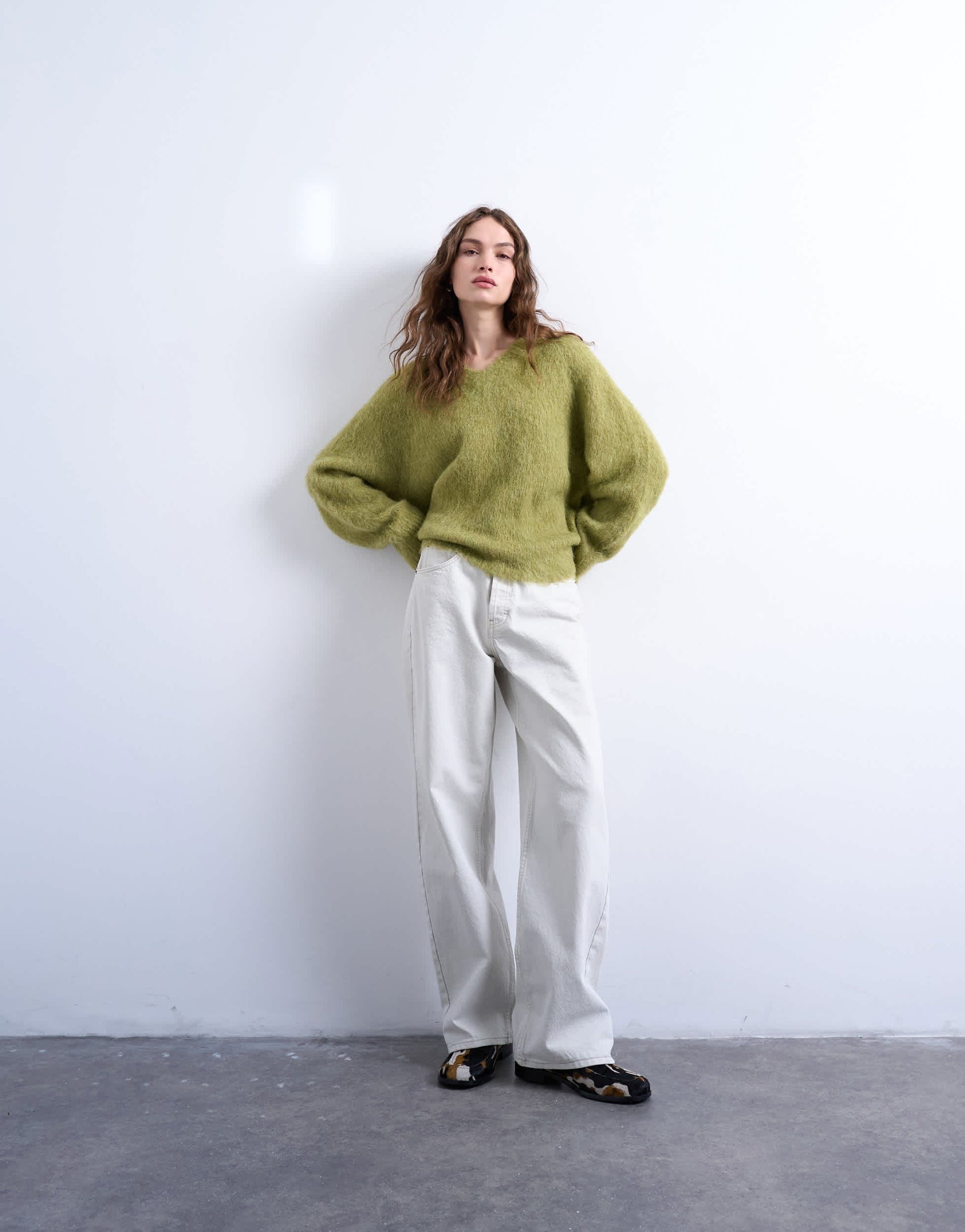Pullover und Strickjacken von TopshopDieser Pullover aus weichem Strick in Grün besticht durch seinen V-Ausschnitt, die langen Ärmel und den lockeren Schnitt, der für einen lässig-eleganten Look sorgt.