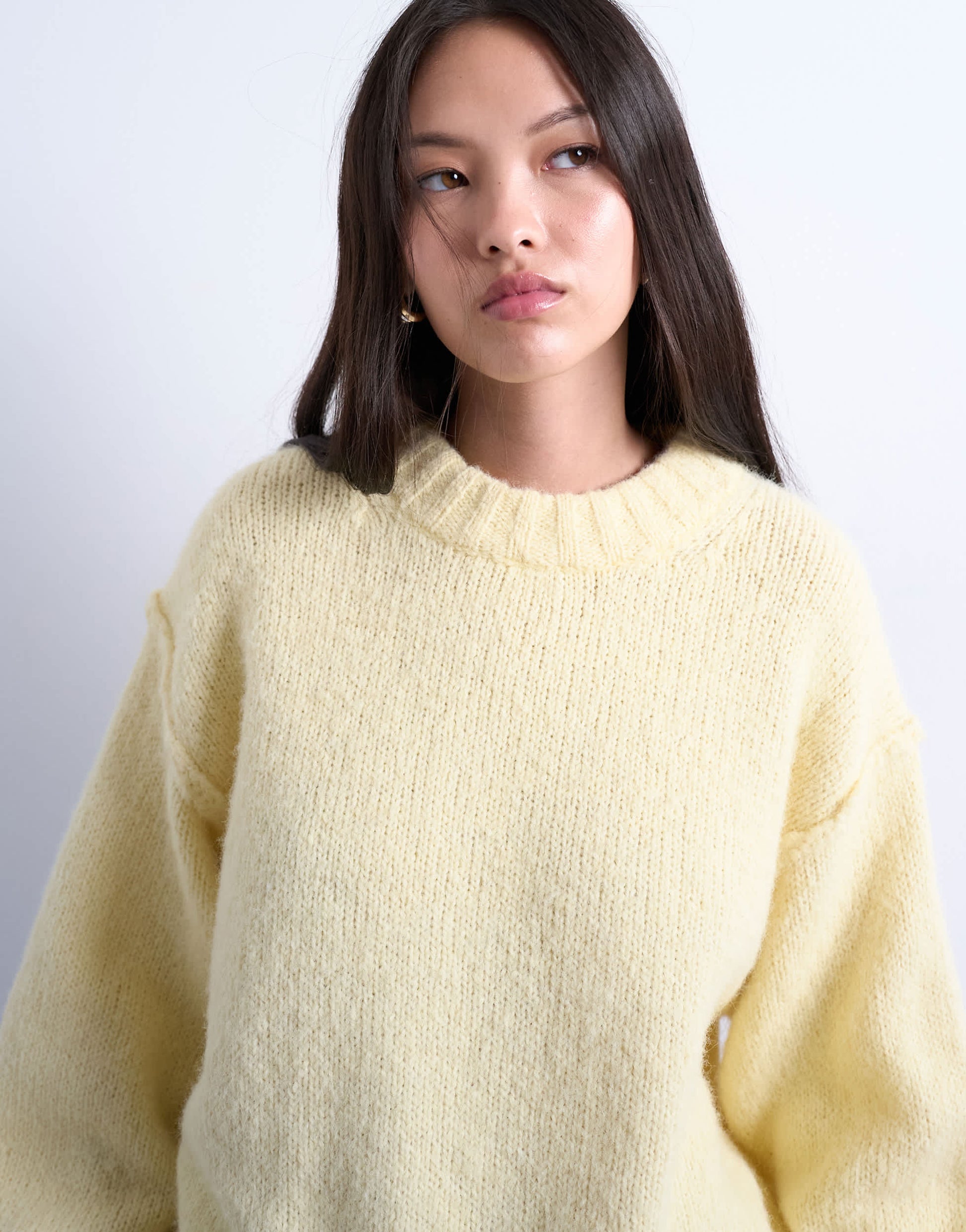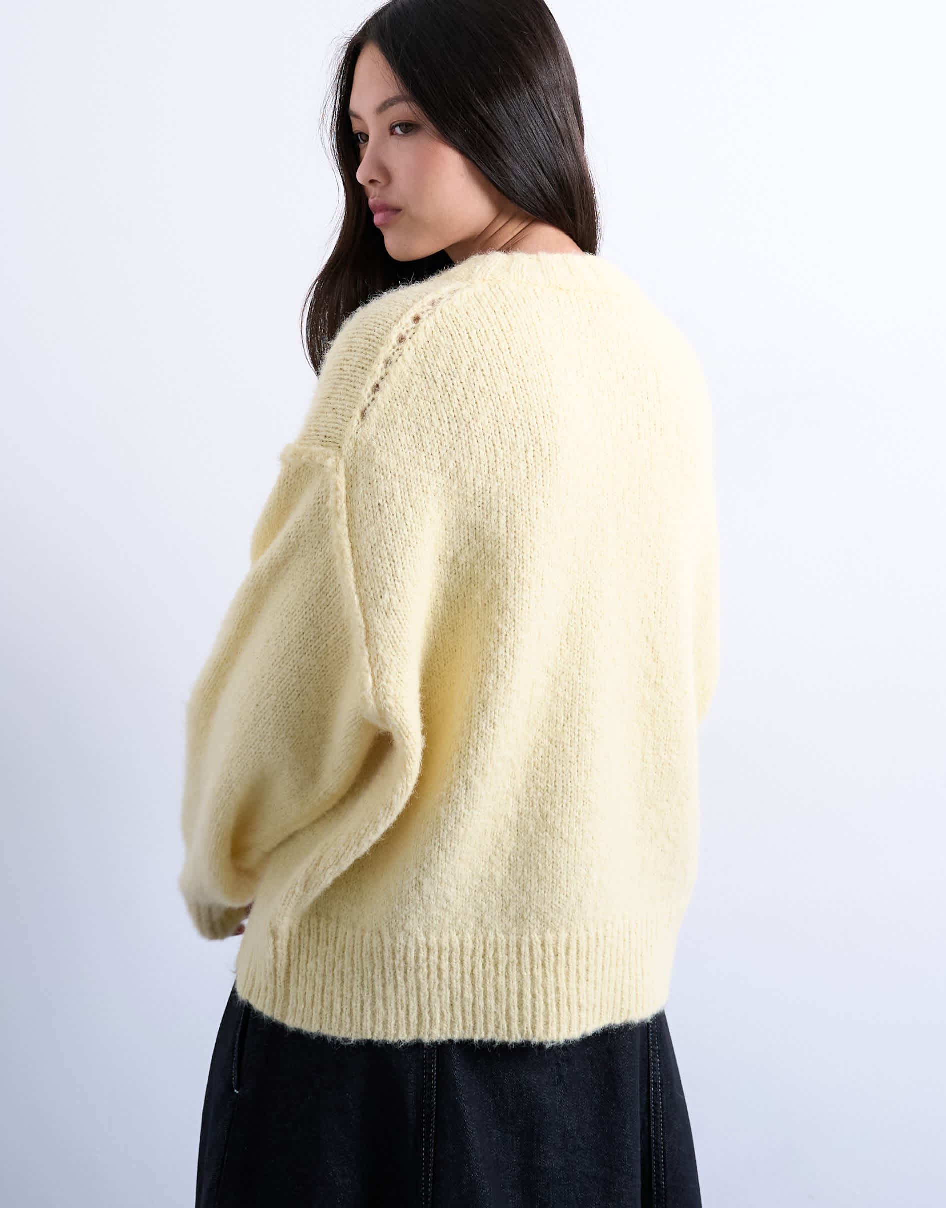 Pullover und Strickjacken von TopshopDieser Pullover ist aus weichem, flauschigem Strick gefertigt. Er hat einen Rundhalsausschnitt, sichtbare Nähte, lange Ärmel und ist locker geschnitten.