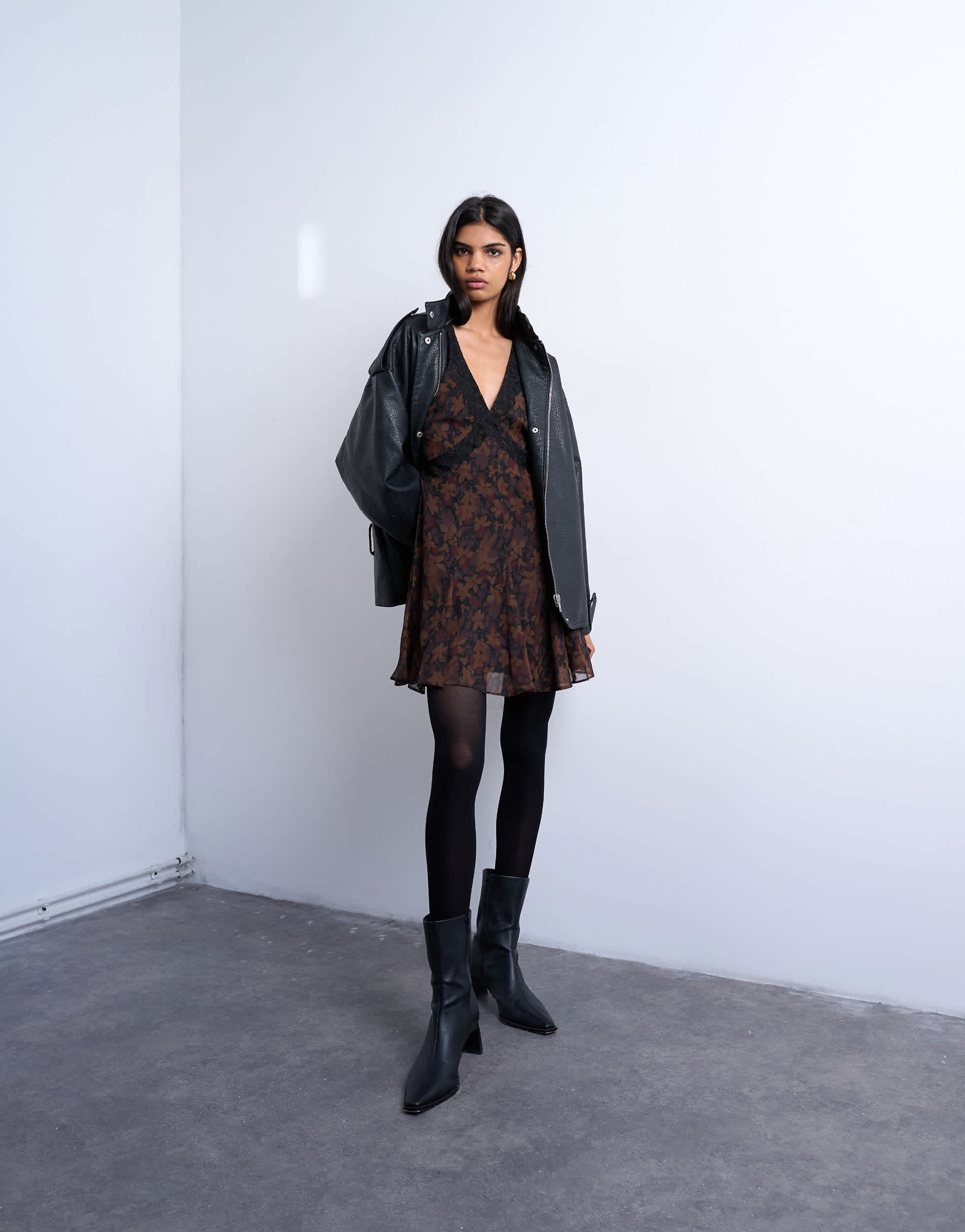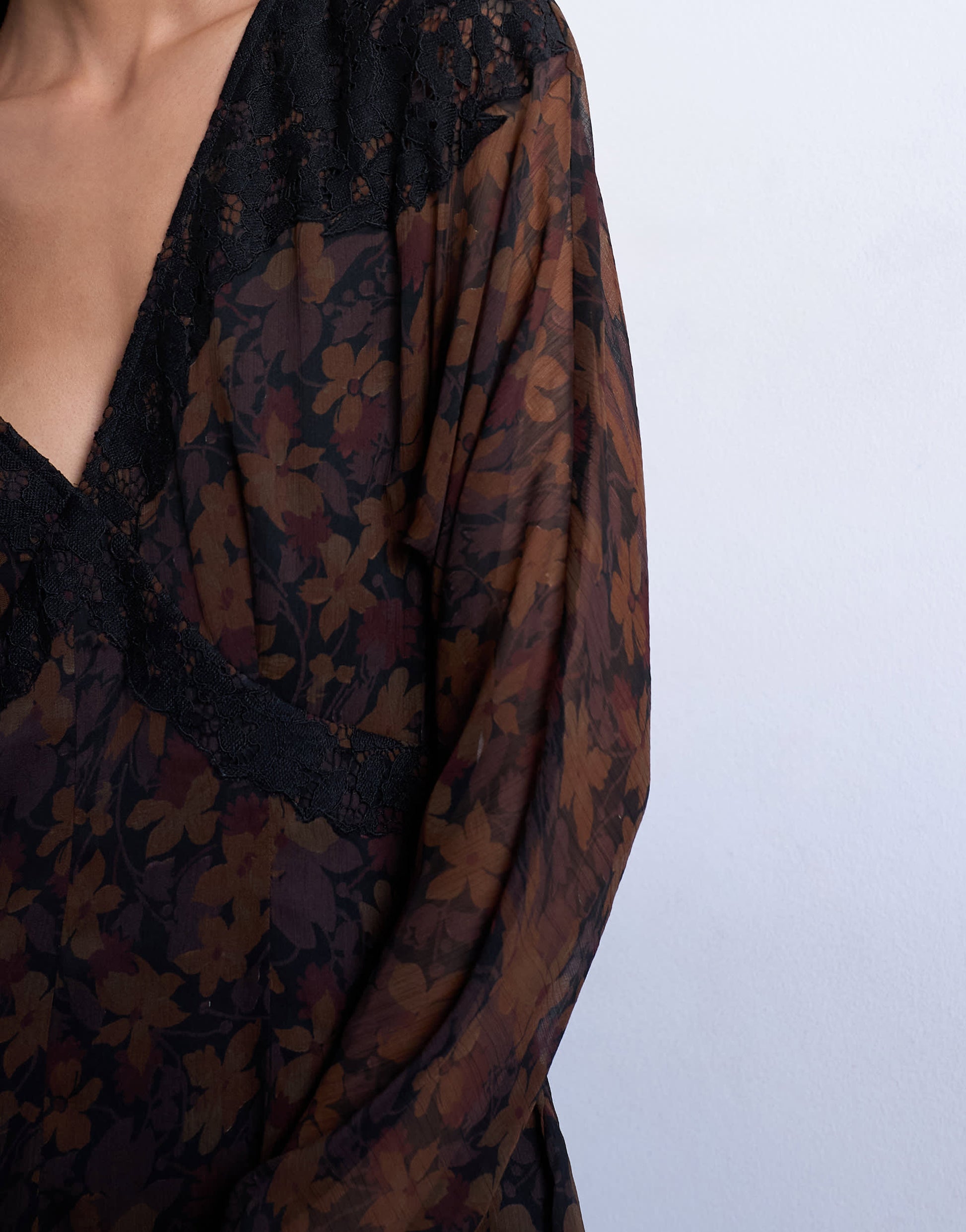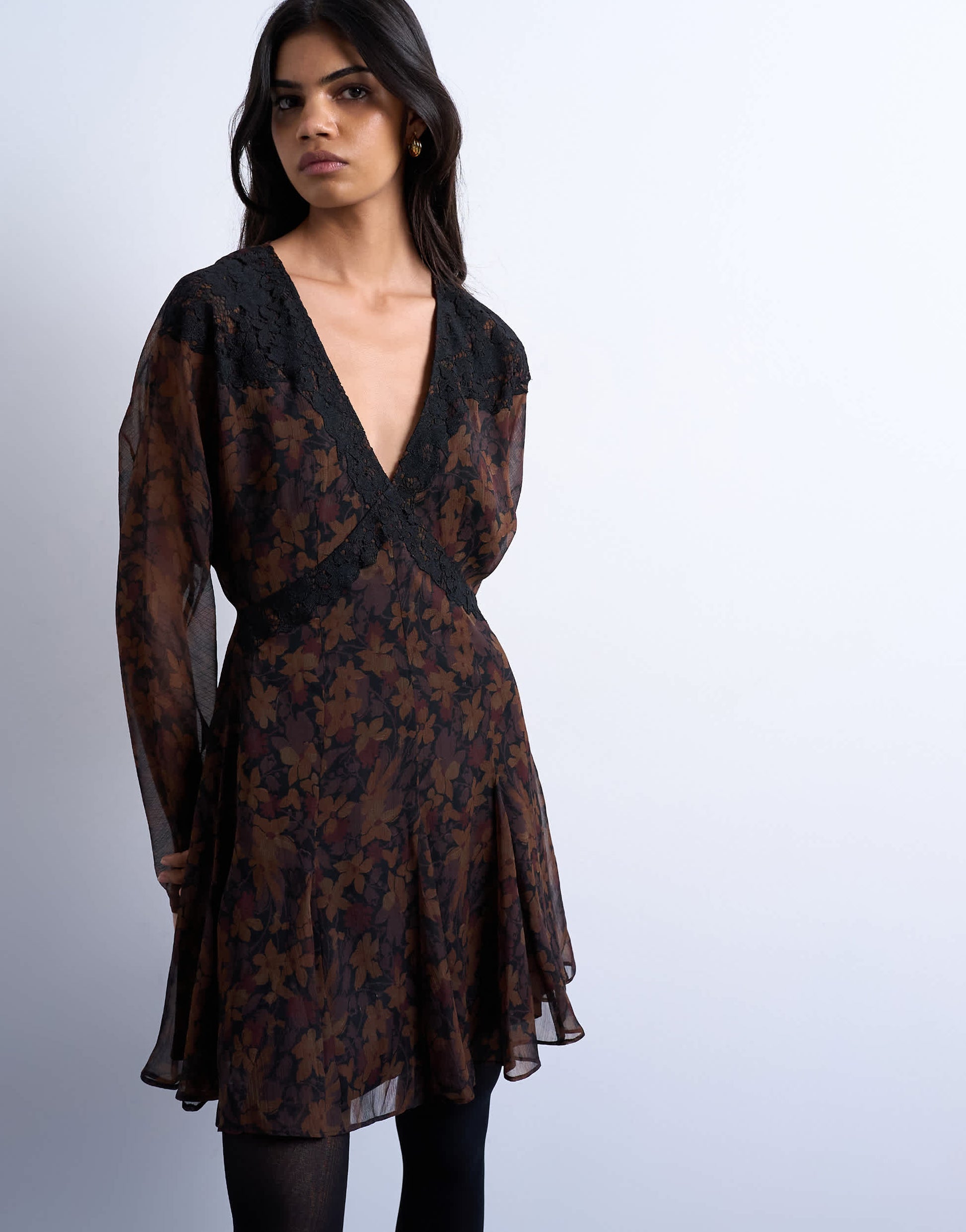 Kleider von TopshopDieses Kleid ist aus einem gewebten Stoff mit Blumenmuster gefertigt. Es hat einen A-Ausschnitt, lange Ärmel, Spitzenbesatz und ist normal geschnitten.