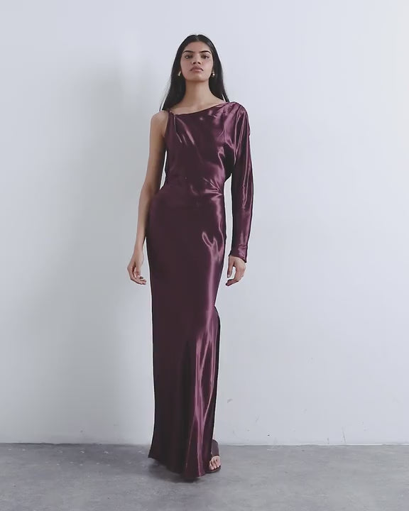 Kleider von TopshopDieses Kleid ist aus einem glänzenden, satinartigen Stoff gefertigt. Es hat einen asymmetrischen Ausschnitt, einen gedrehten Träger, einen langen Ärmel und einen hohen Beinschlitz. Der Schnitt ist regulär.