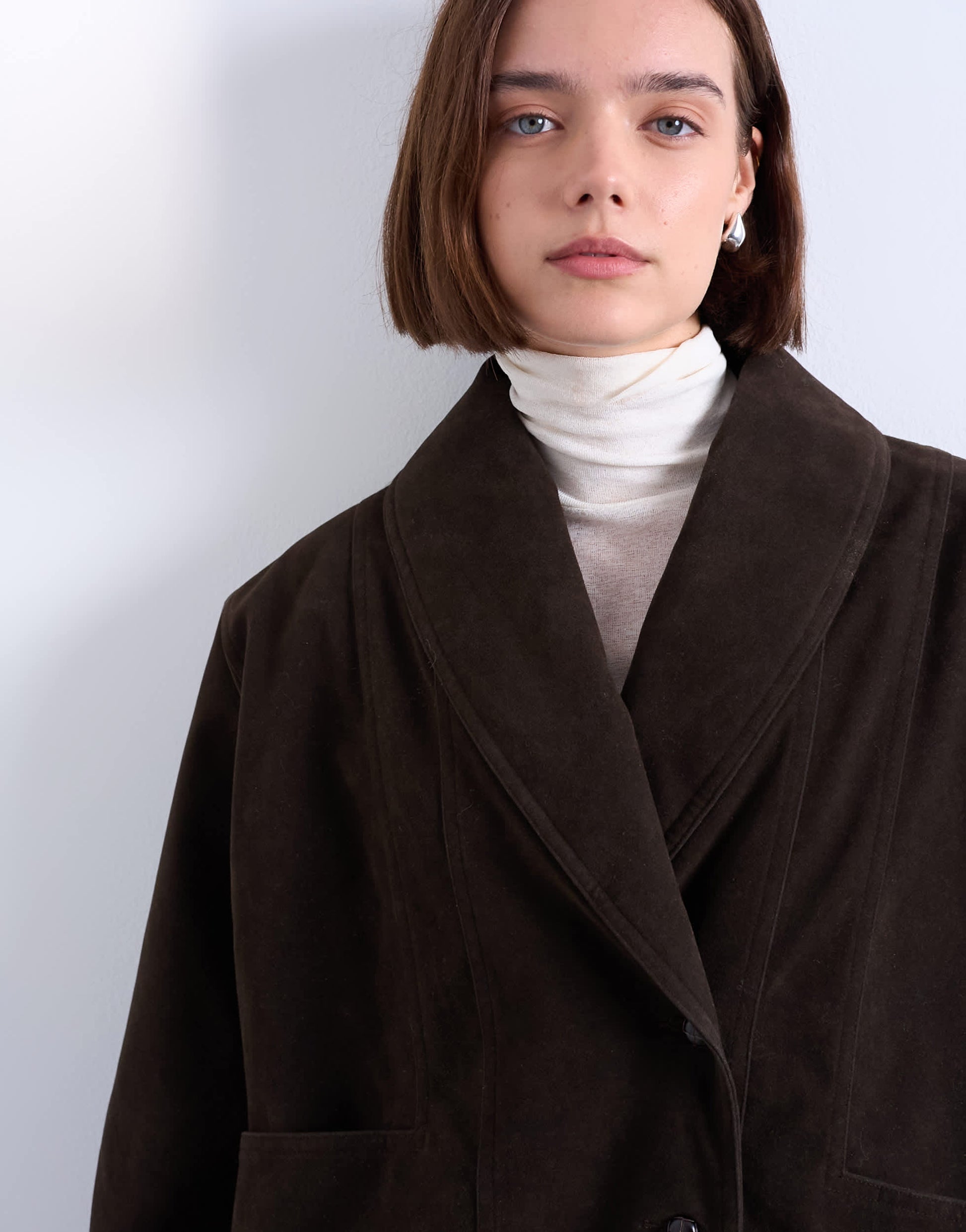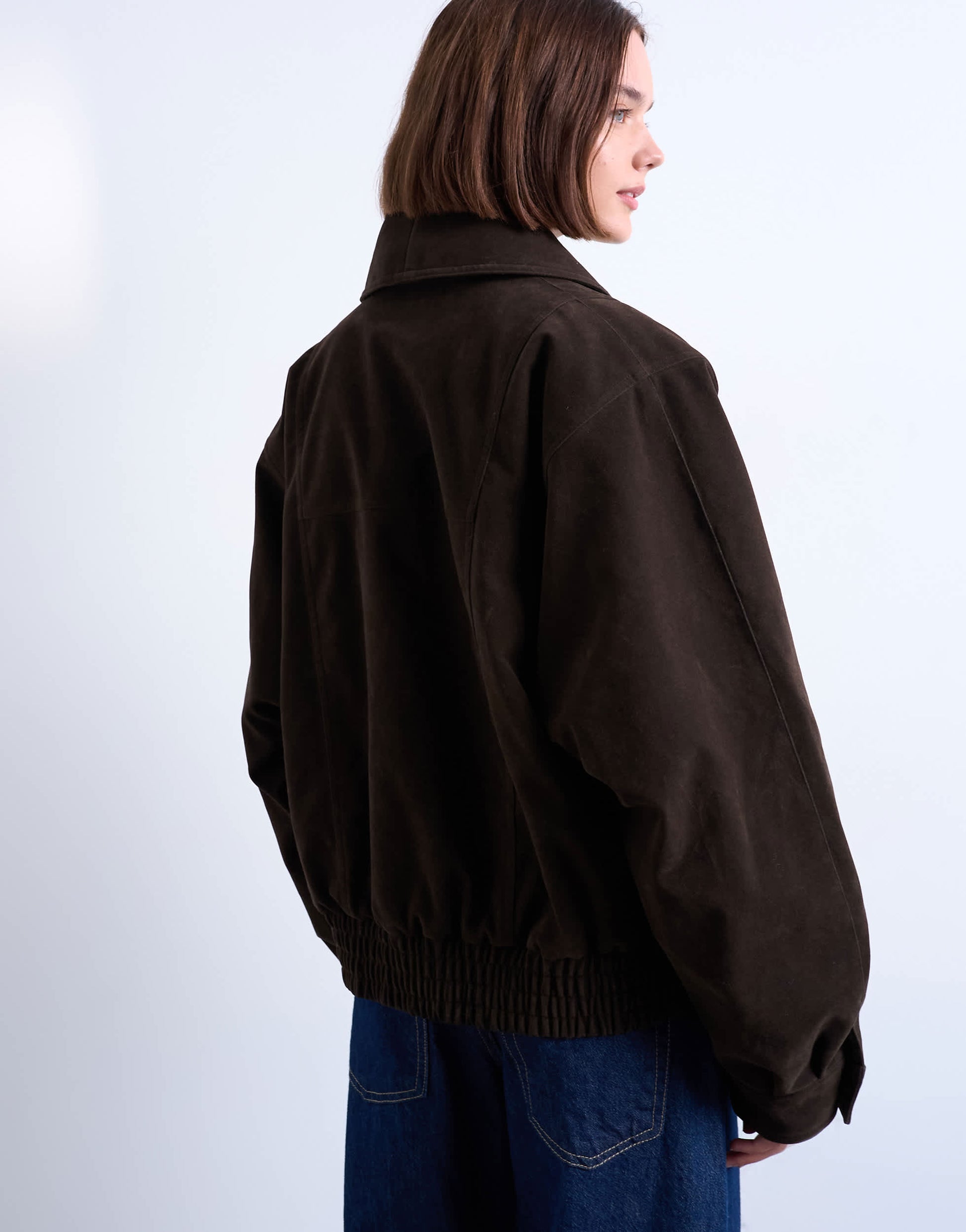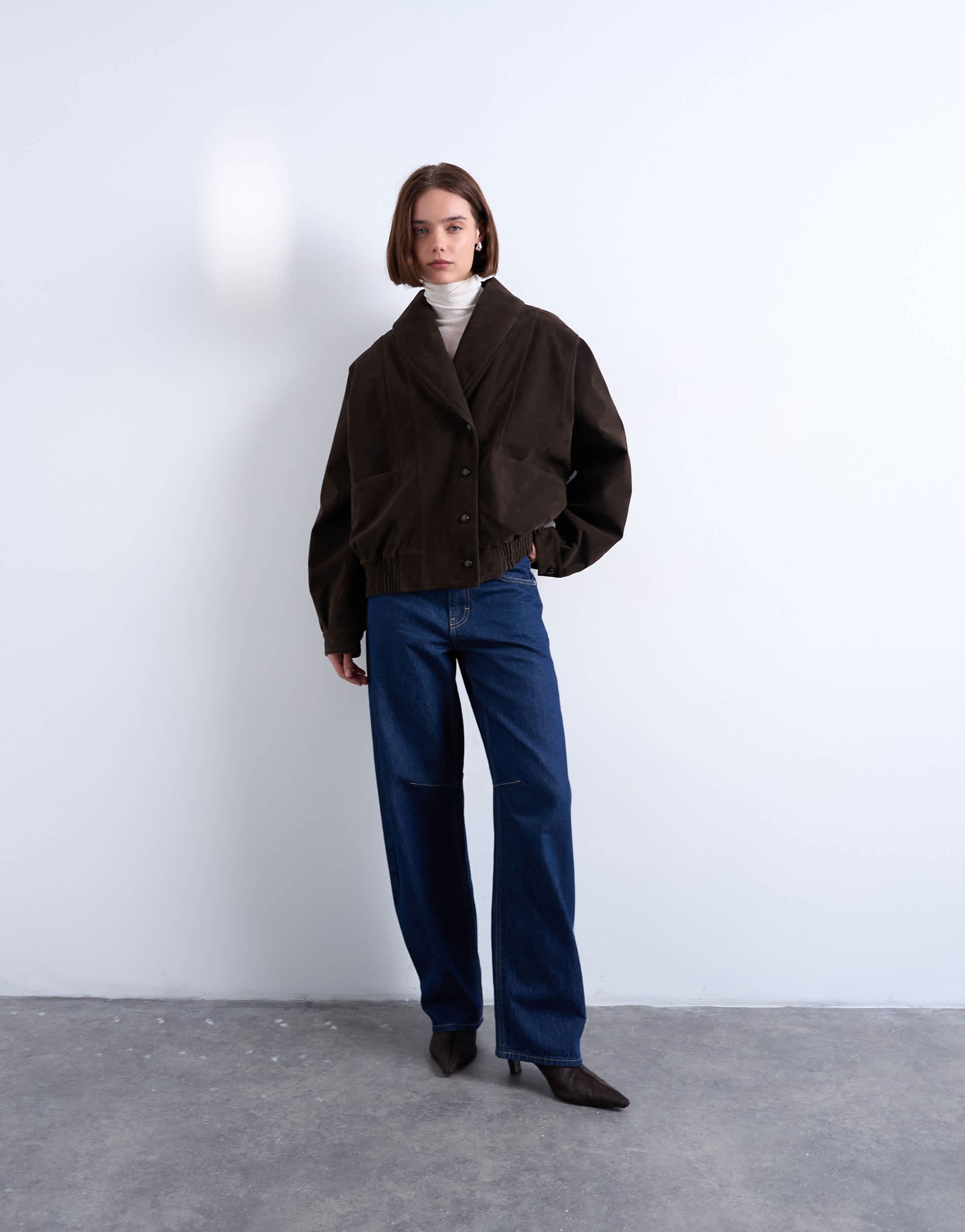 Mäntel und Jacken von TopshopDiese Bomberjacke ist aus einem weichen, strukturierten Stoff in einem schokoladenbraunen Farbton gefertigt. Sie verfügt über einen Schalkragen, eine Knopfleiste und aufgesetzte Taschen. Abgerundet wird das Design durch einen elastischen Saum und geknöpfte Ärmelbündchen. Der lockere Schnitt sorgt für eine kastenförmige Silhouette.