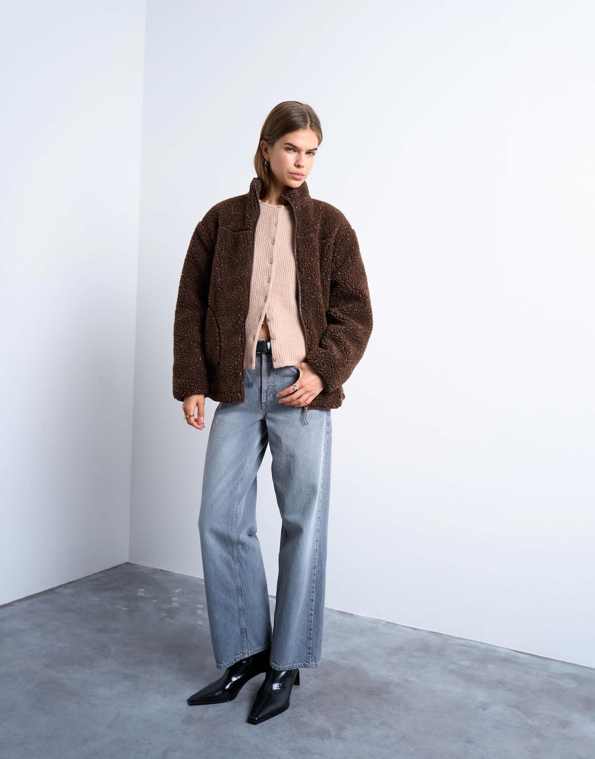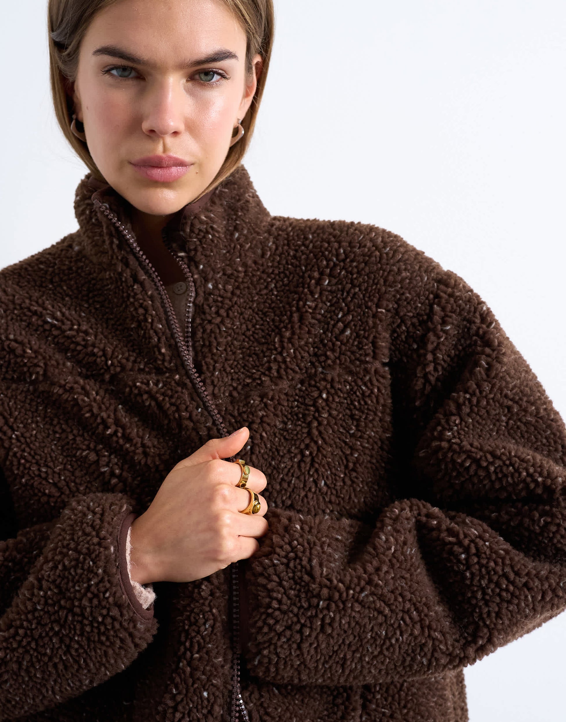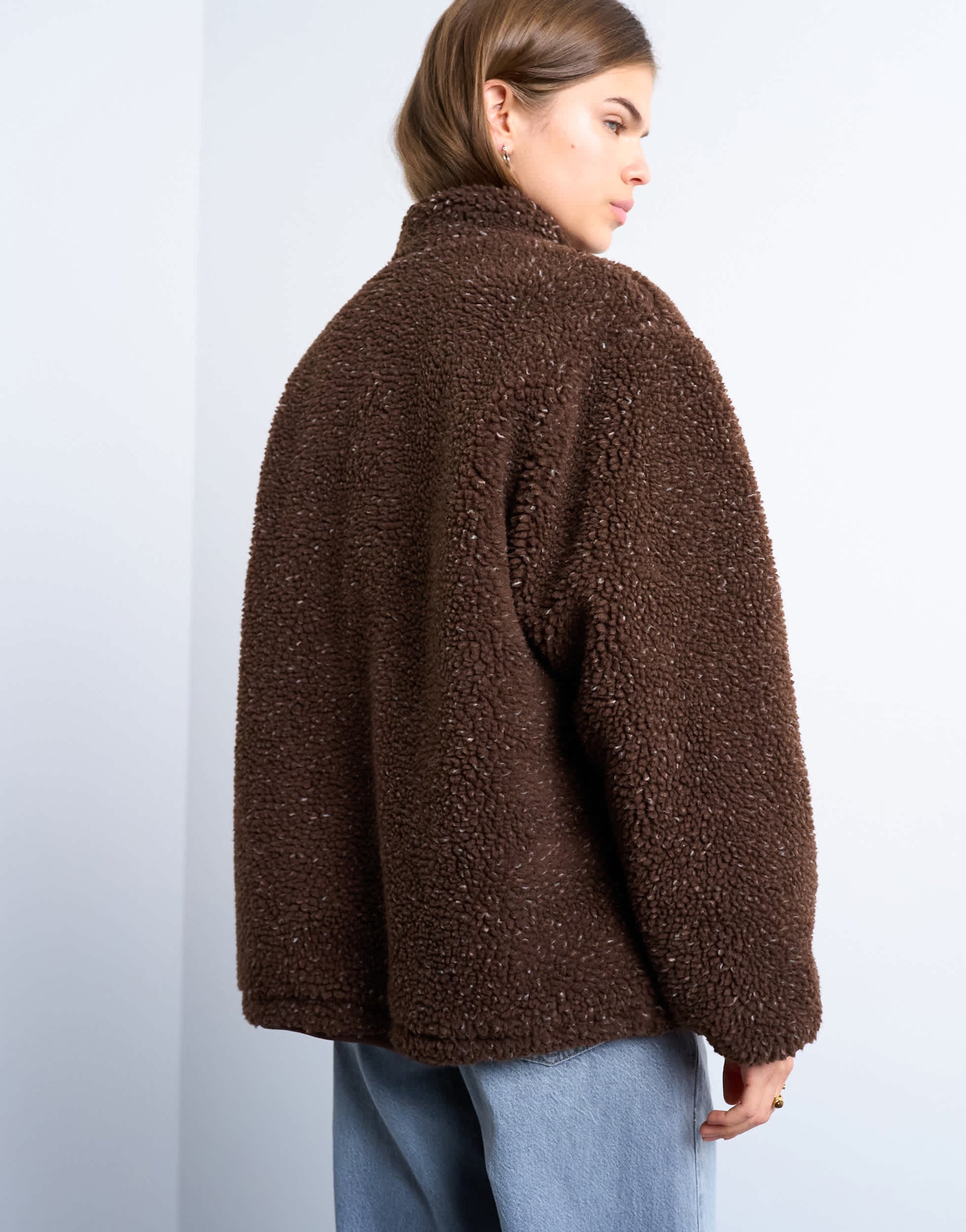 Mäntel und Jacken von TopshopDiese Fleecejacke in Schokoladenbraun mit dezenter Sprenkelung sorgt für eine interessante Textur. Sie hat einen Stehkragen, einen Reißverschluss und Seitentaschen und ist lässig geschnitten – perfekt für gemütlichen Tragekomfort im Alltag.