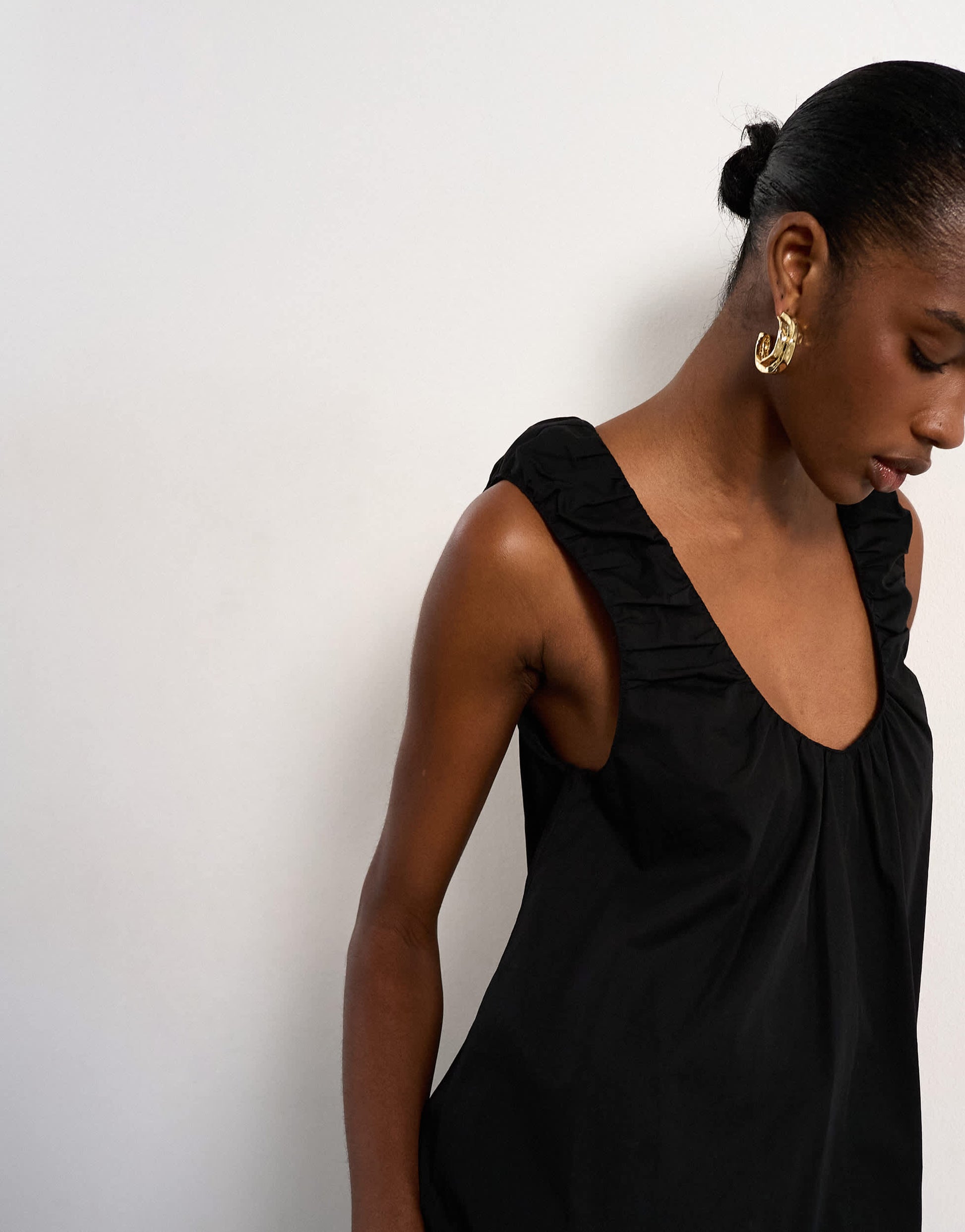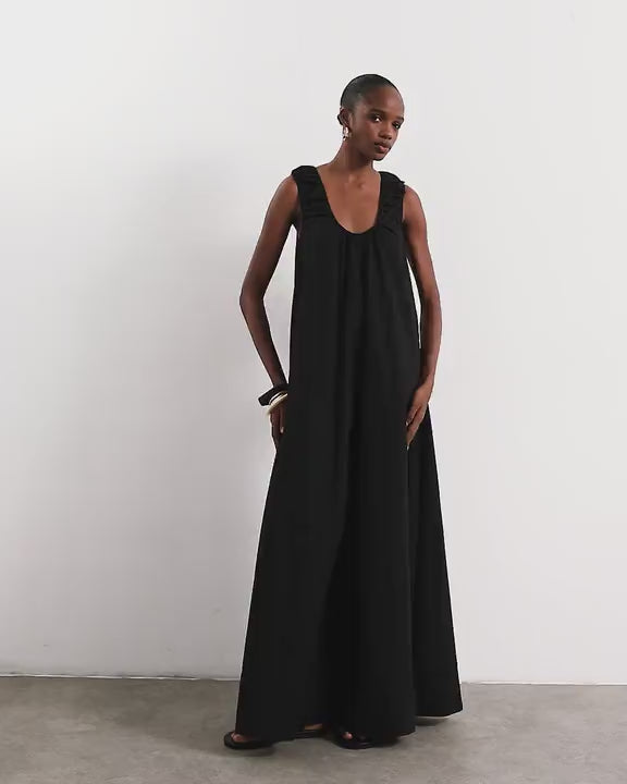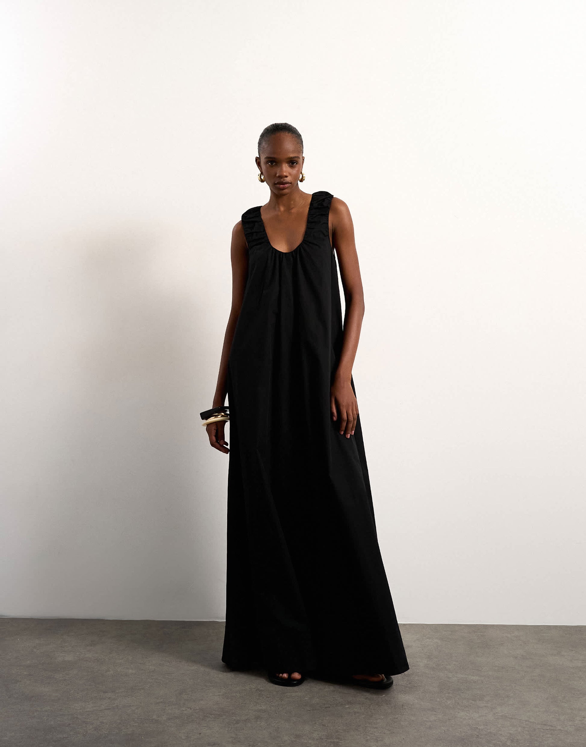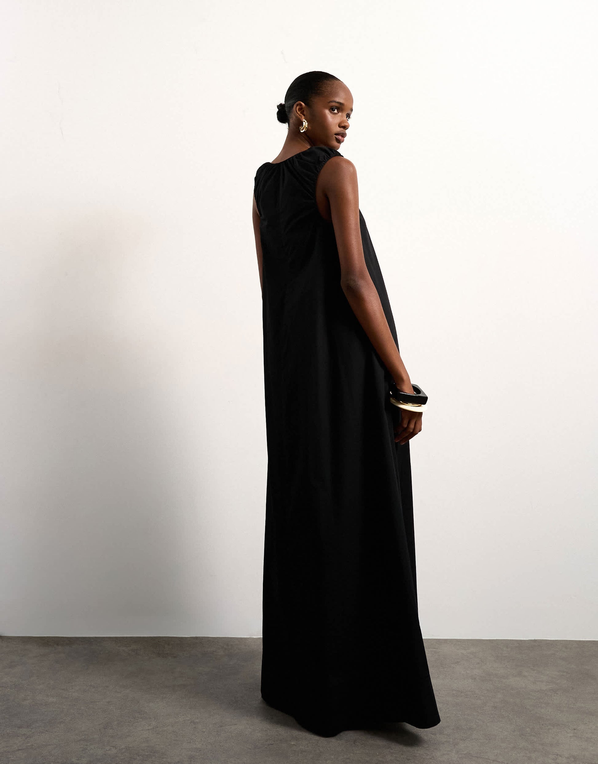 Kleider von TopshopDieses Kleid aus Popeline in zeitlosem Schwarz besticht durch seinen ärmellosen Schnitt, den Rundhalsausschnitt, die Raffungen und den Racerback. Es hat eine normale Maxilänge.