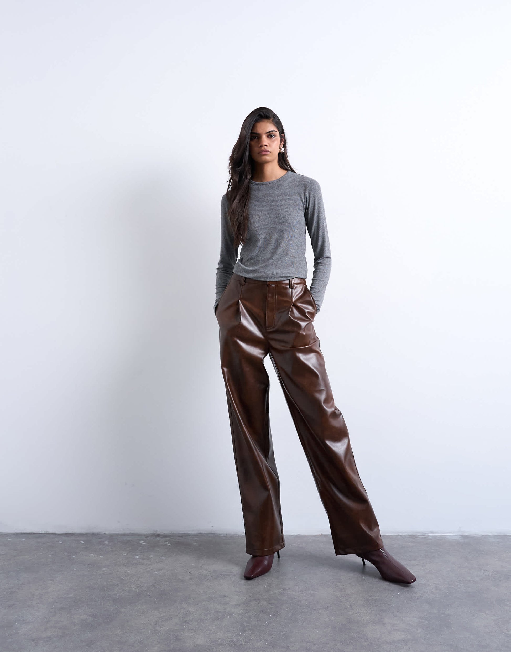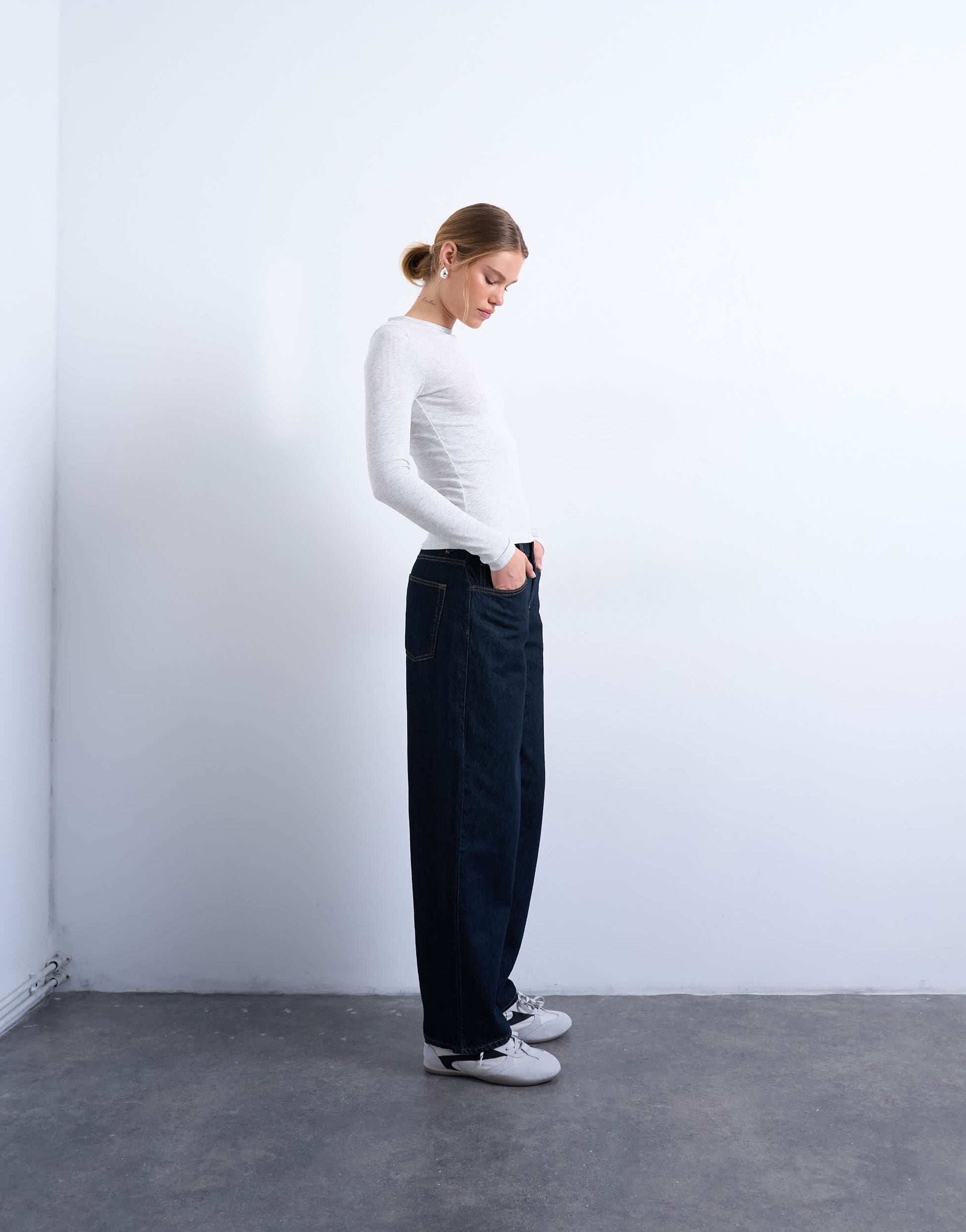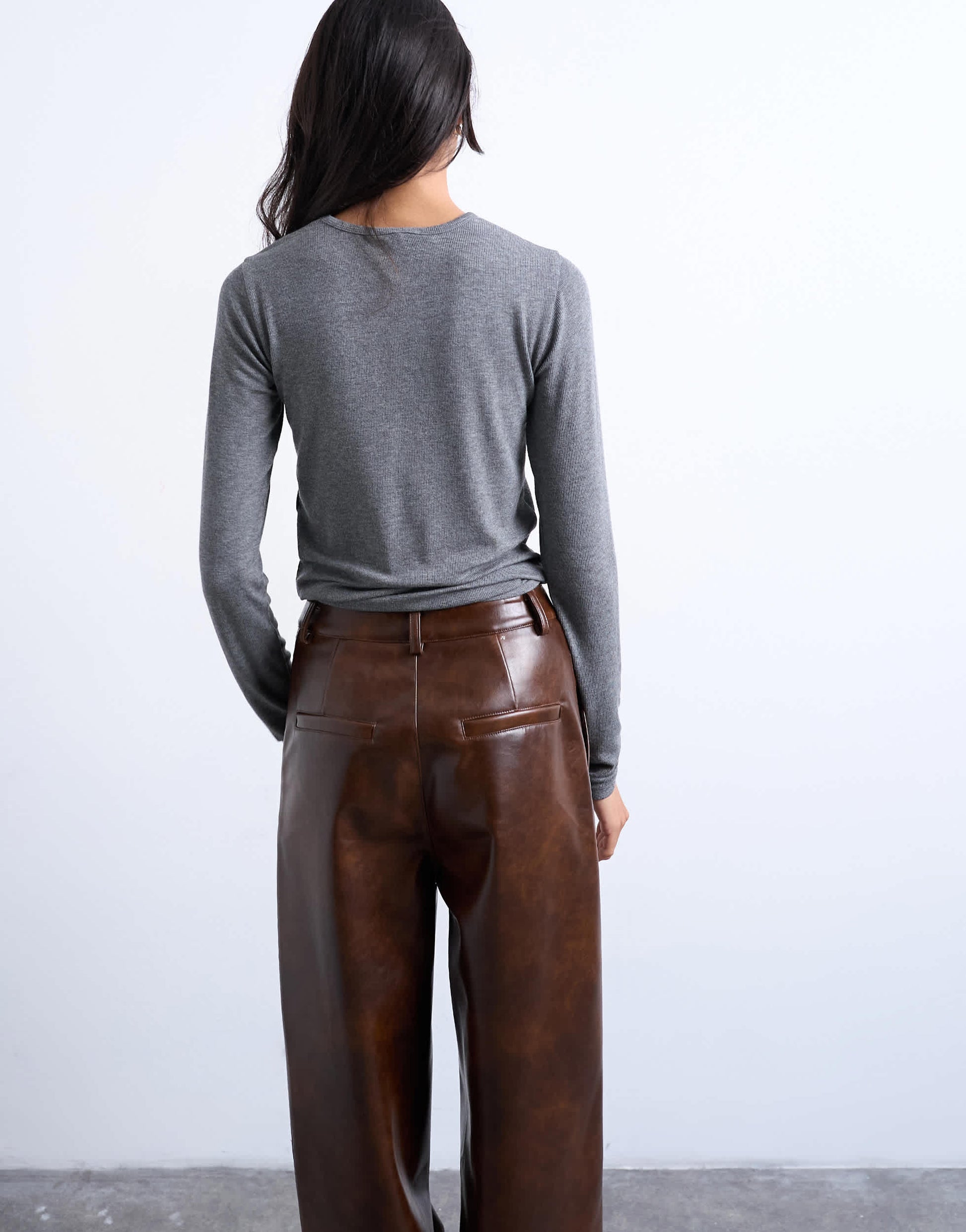 Oberteile von TopshopDieses Oberteil ist aus dehnbarem Jersey mit Rippstrick gefertigt. Es ist in Grau erhältlich, hat einen Rundhalsausschnitt, lange Ärmel und eine normale Passform.