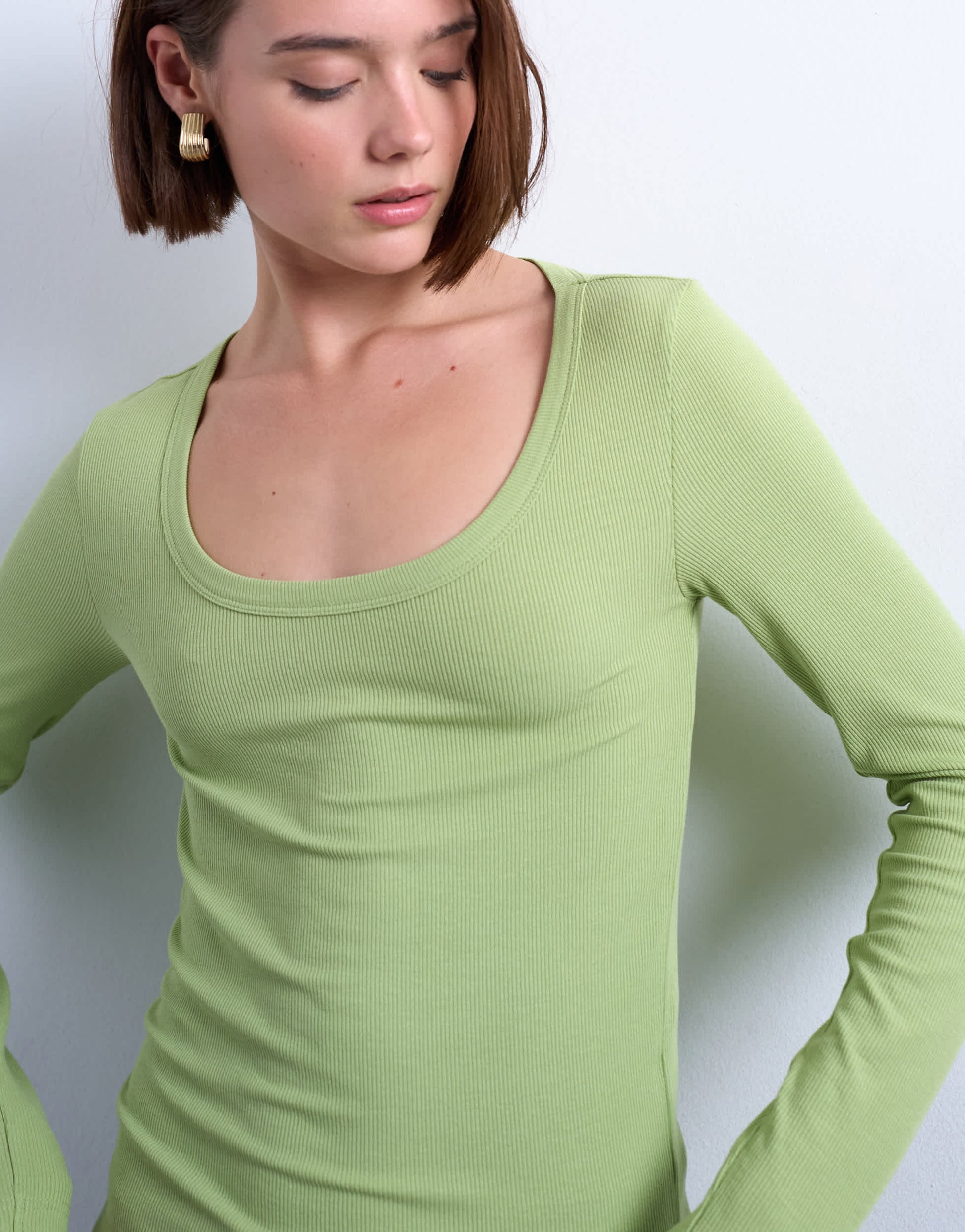 Oberteile von TopshopDieses vielseitige Oberteil aus geripptem Jersey-Stoff zeichnet sich durch einen weiten Halsausschnitt, lange Ärmel und eine schmale Passform aus.