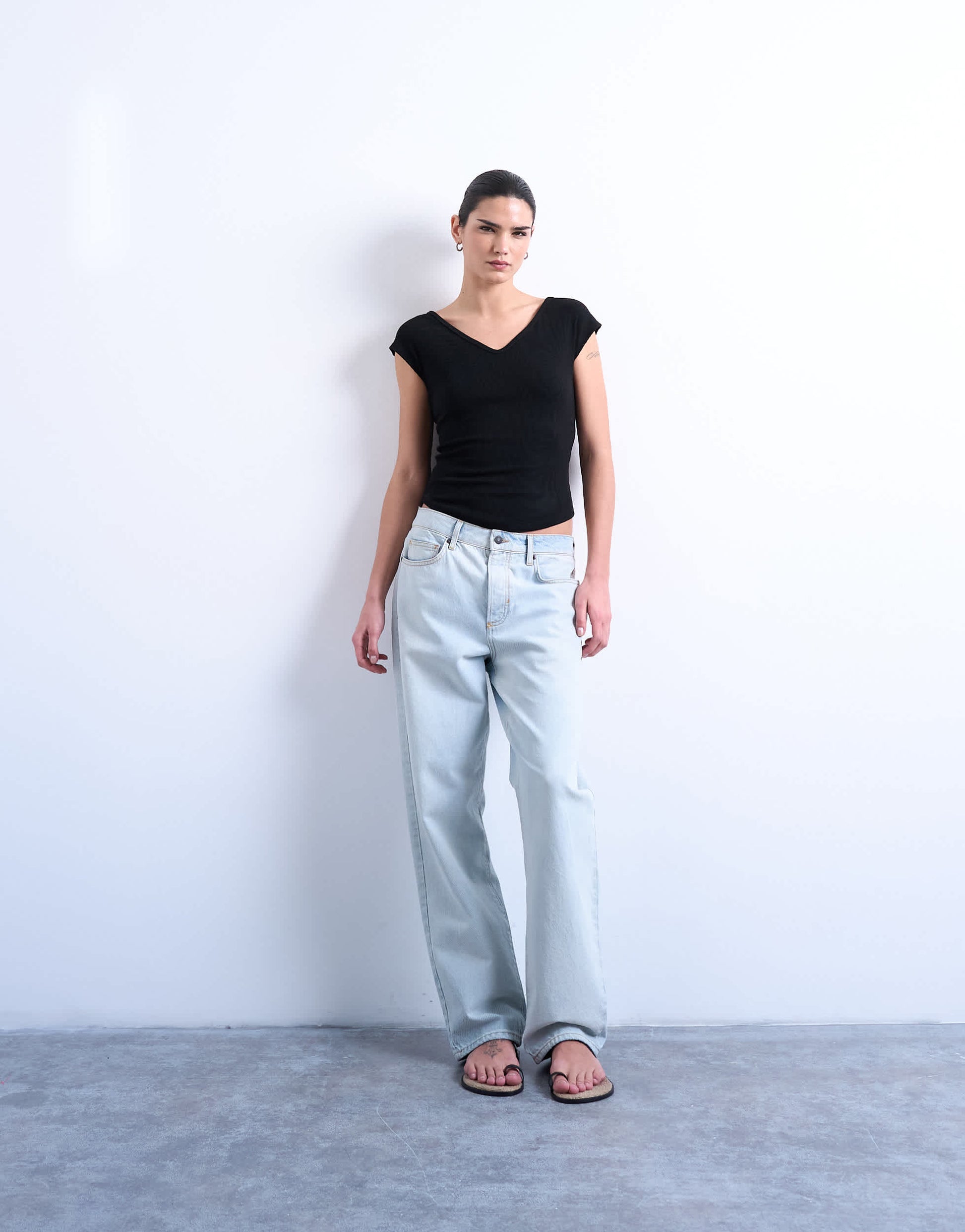 Oberteile von TopshopDieses Top aus dehnbarem Jersey mit Rippstrickbündchen ist in Schwarz erhältlich und besticht durch einen V-Ausschnitt, kurze Ärmel und einen V-Ausschnitt am Rücken. Der schmale Schnitt sorgt für eine elegante Silhouette.