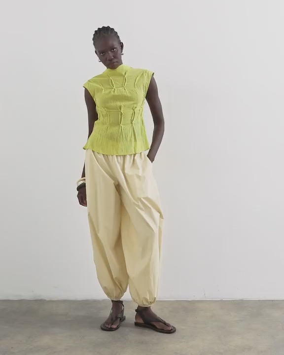 Oberteile von TopshopDieses Top ist aus einem gewebten Stoff mit geknitterter Struktur gefertigt. Es hat ein schlichtes Design, einen hohen Kragen, ist ärmellos, wird im Rücken mit einem Knopfverschluss in Schlüssellochform geschlossen und hat eine normale Passform.