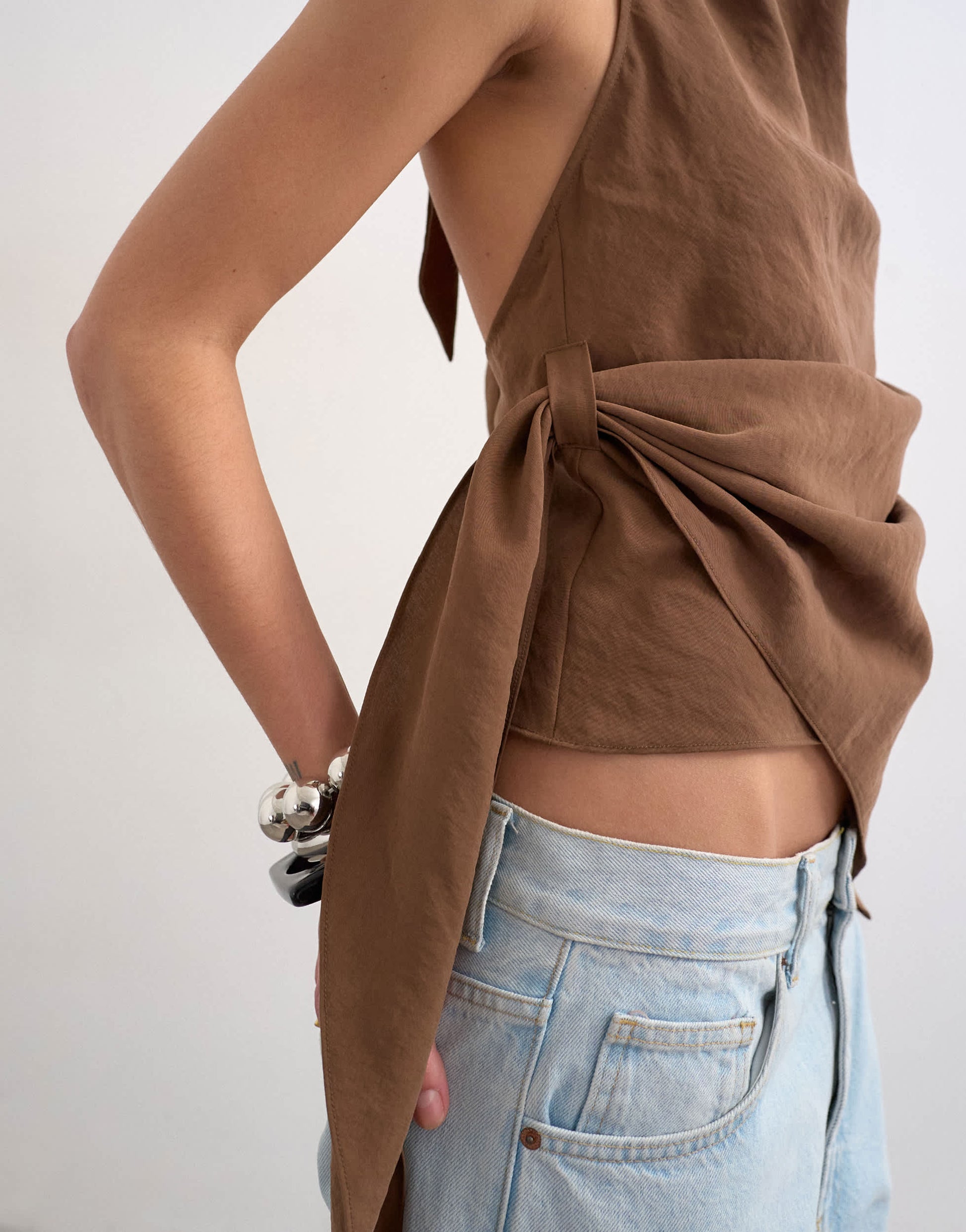 Oberteile von TopshopDieses Top ist aus einem superweichen Webstoff gefertigt. Es hat einen Neckholder-Ausschnitt, drapierte Details, einen Bindebandverschluss im Rücken und eine normale Passform.