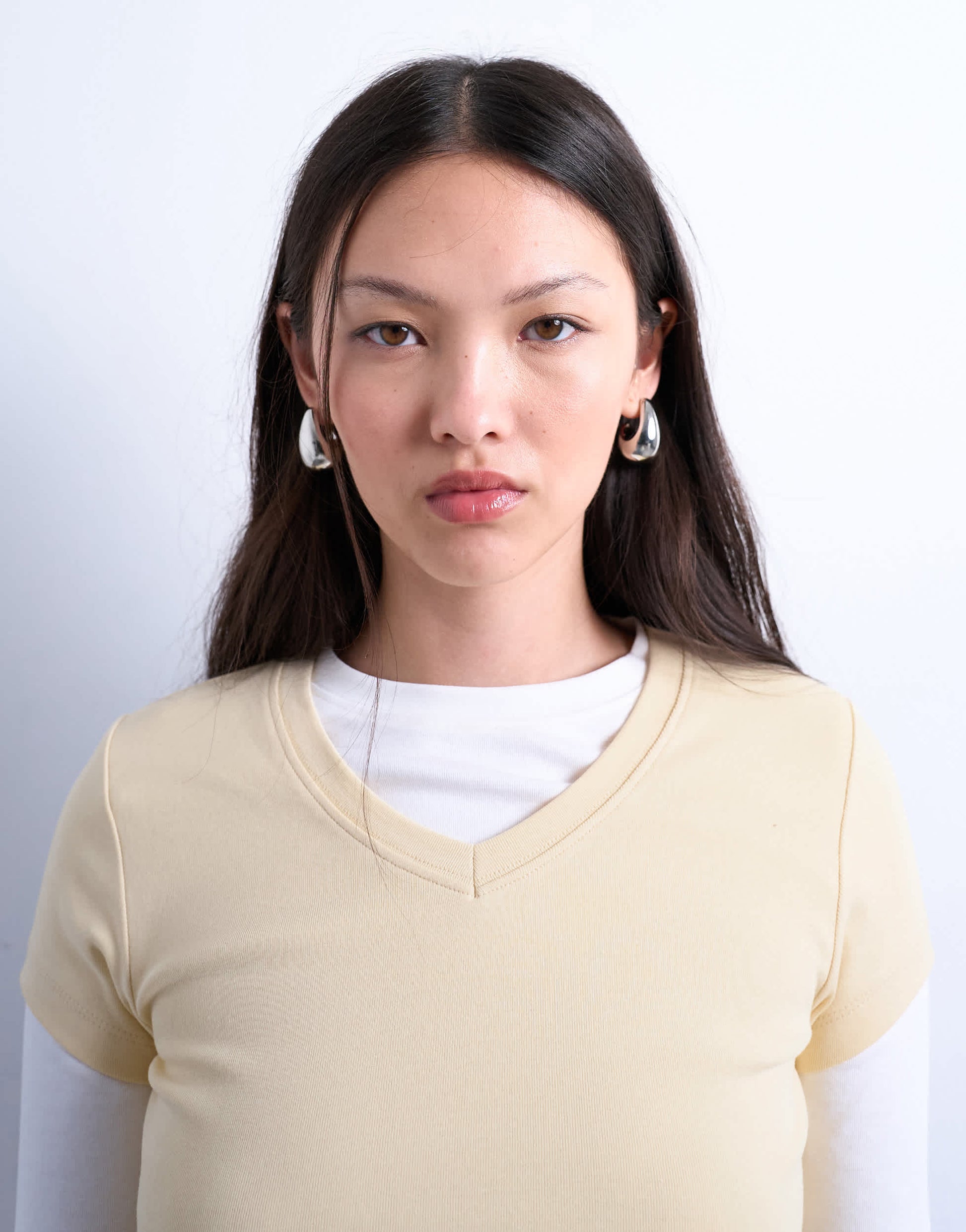 Oberteile von TopshopDieses Top aus weichem, dehnbarem Jersey in Ecru und Buttermilchgelb besticht durch seinen Lagenlook: Ein langärmeliges T-Shirt mit Rundhalsausschnitt liegt unter einem kurzärmeligen Oberteil mit V-Ausschnitt. Der schmale Schnitt macht es zur idealen Lösung für Ihre Layering-Bedürfnisse.