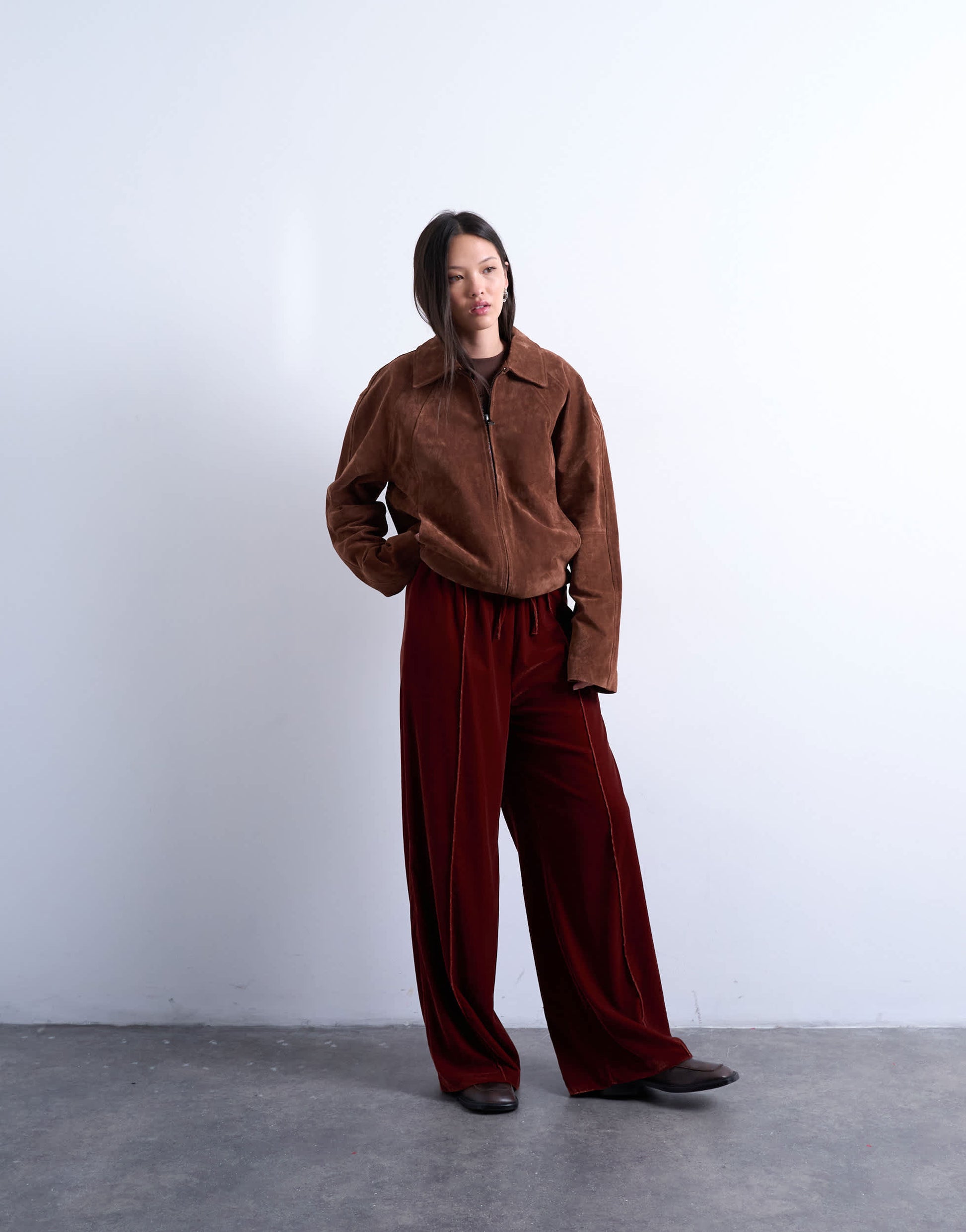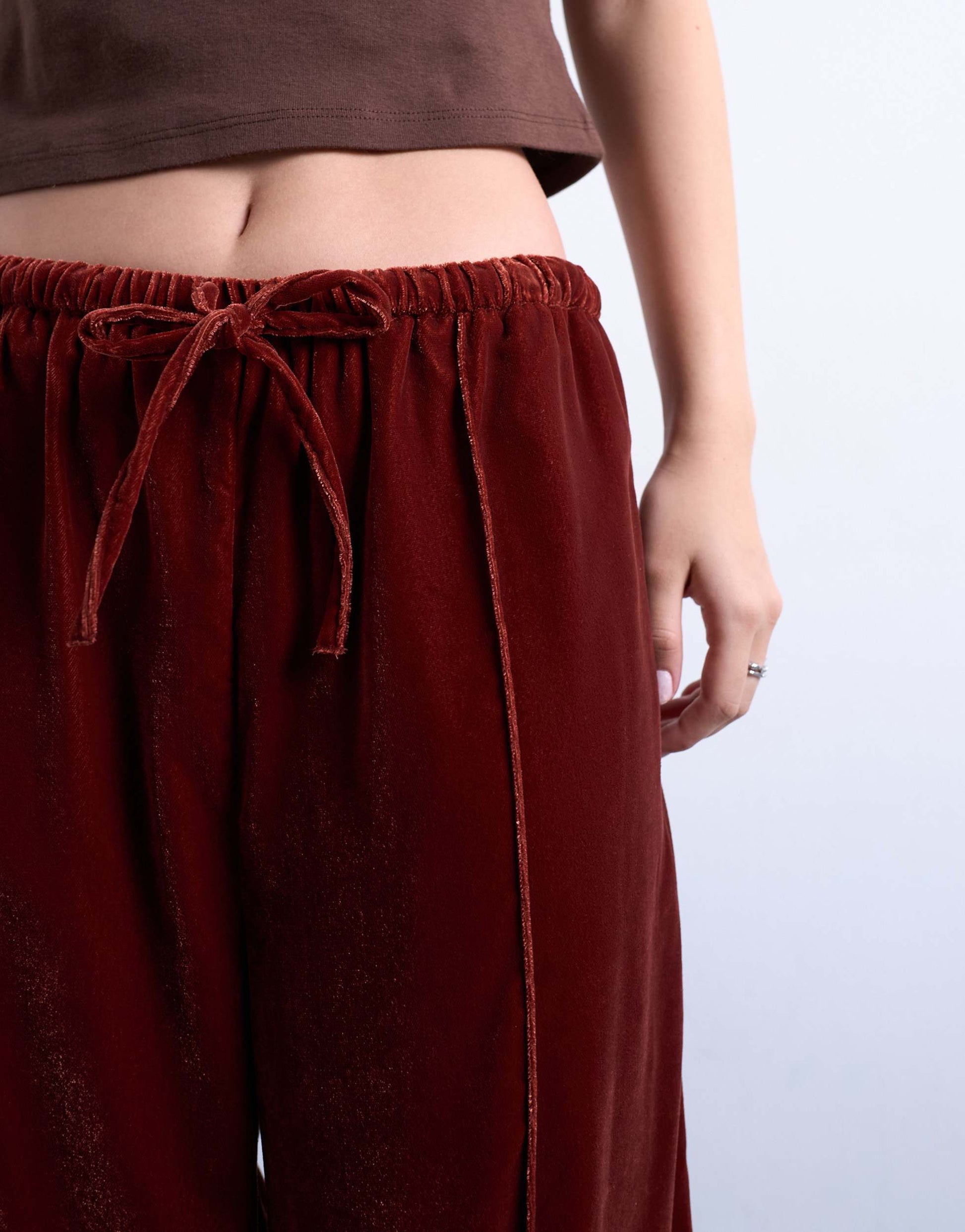 Jogginghose von TopshopDiese Hose ist aus weichem, plüschigem Samt gefertigt. Sie hat einen mittelhohen Bund, einen Kordelzug, Abnäher und ist weit geschnitten.