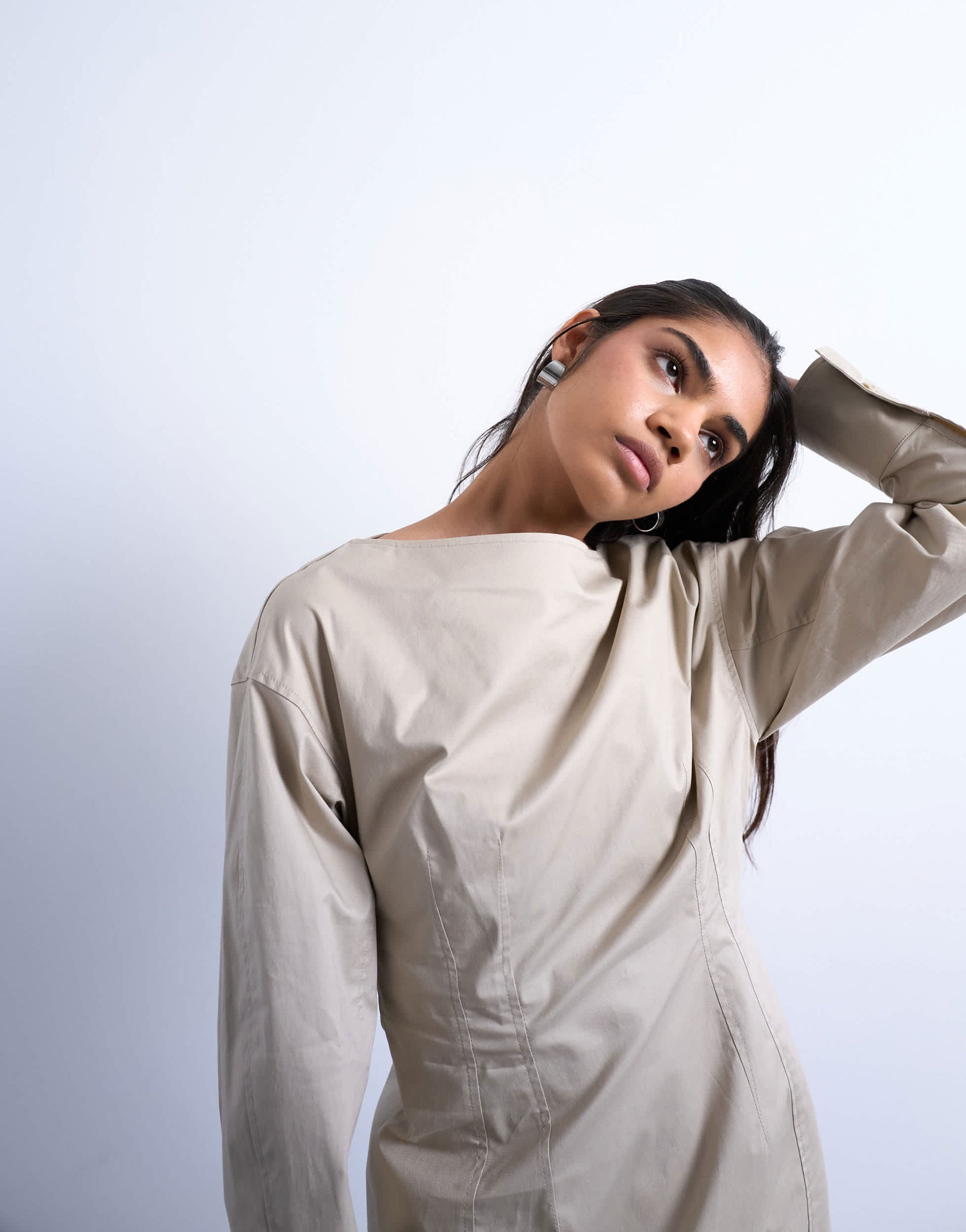 Kleider von TopshopDieses Kleid ist aus Webstoff gefertigt und besticht durch einen U-Boot-Ausschnitt, ovale Ärmel und Ziernähte. Es hat eine normale Passform.