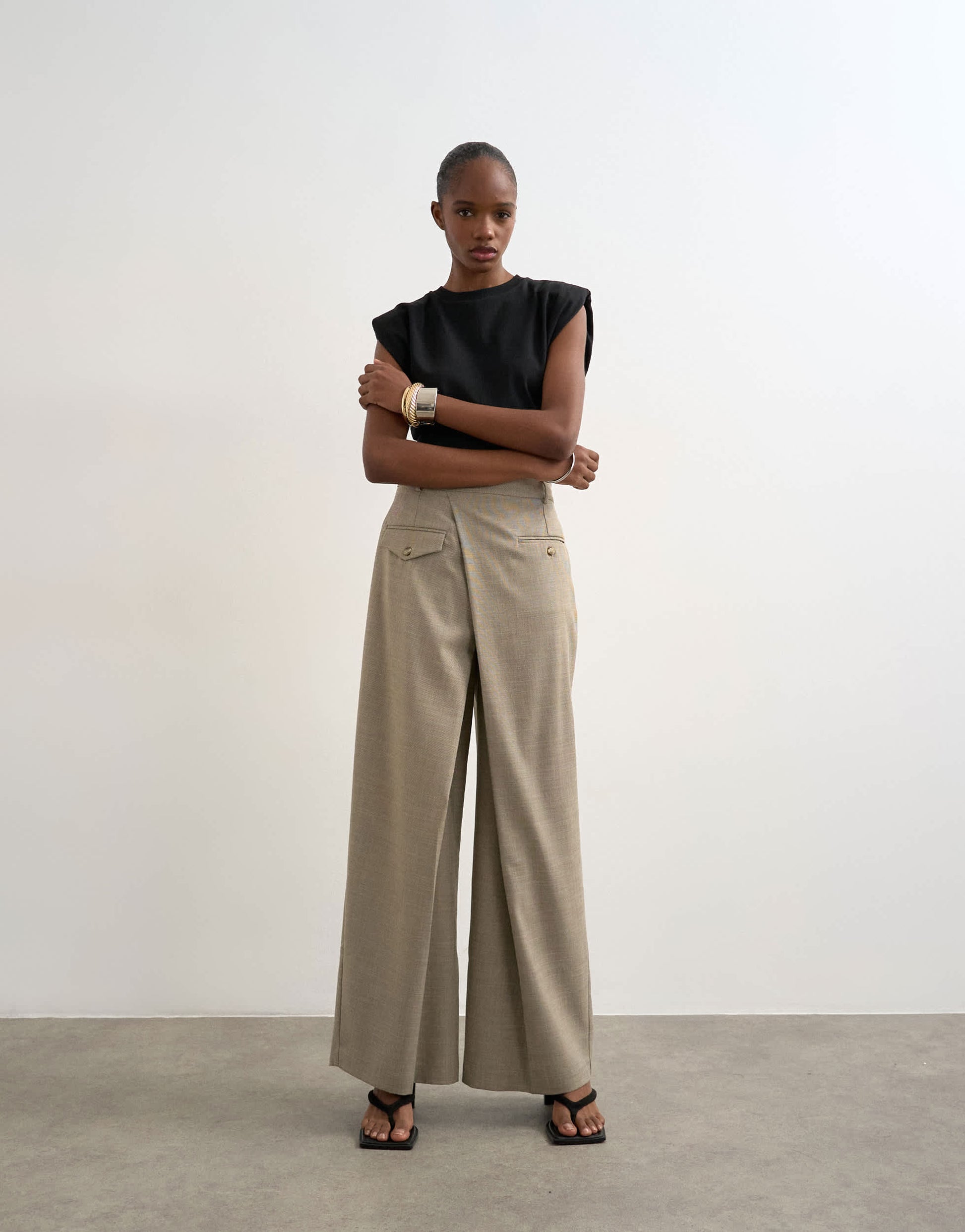 Topshop Wickeloberteil über maßgeschneiderter Hose in Stein