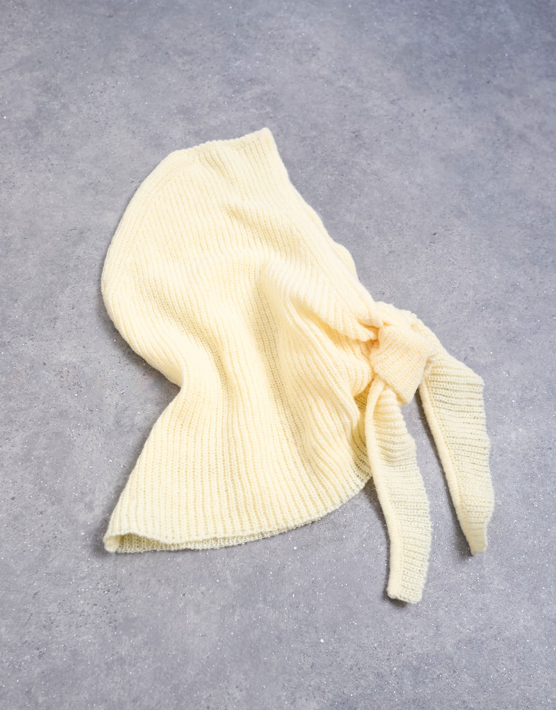 Conçue pour garder votre tête et votre cou au chaud, cette écharpe est confectionnée dans un tricot côtelé doux et se noue sous le menton.